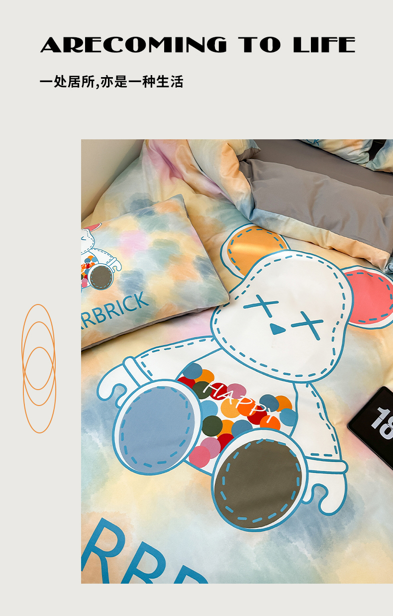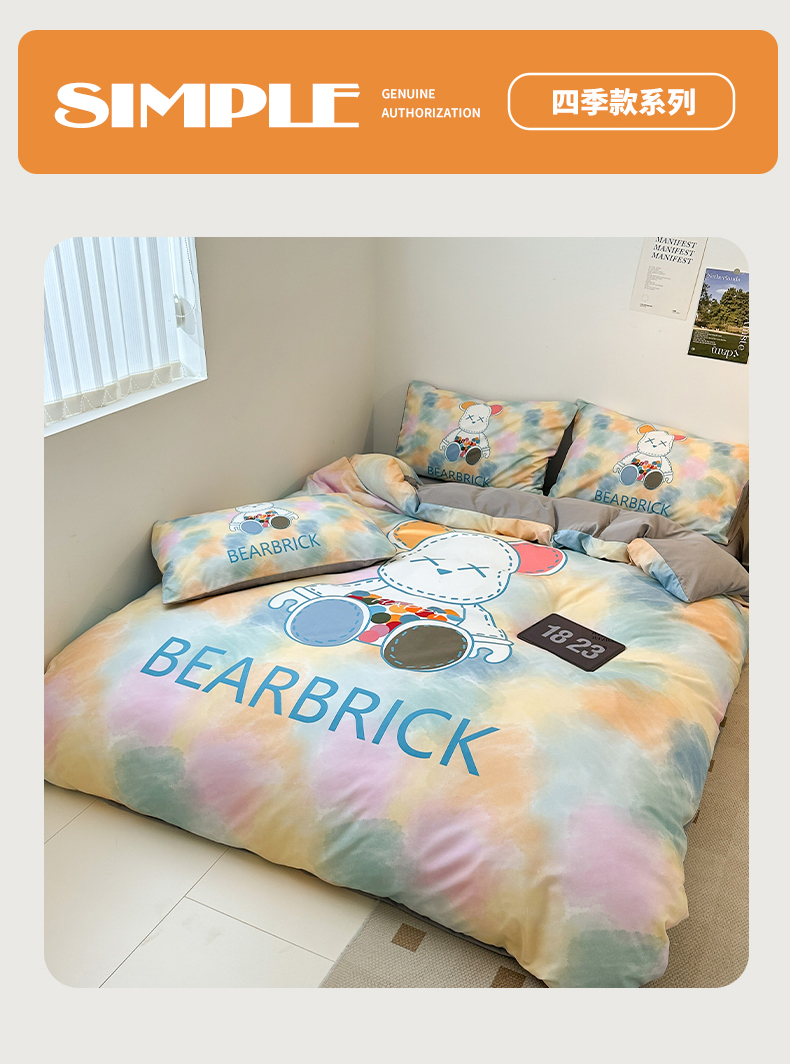 (总)色鬼布艺高端家居主号 2025秋冬新款网红款水洗棉四季款四件套,豹纹熊-粉,豹纹熊-绿,彩虹兔,格子熊,公仔蓝,梦幻粉,梦幻蓝,棋盘格公仔,太阳花粉,天使熊-粉,天使熊-咖,小熊头,熊头白,熊头橙,熊头咖,熊仔白