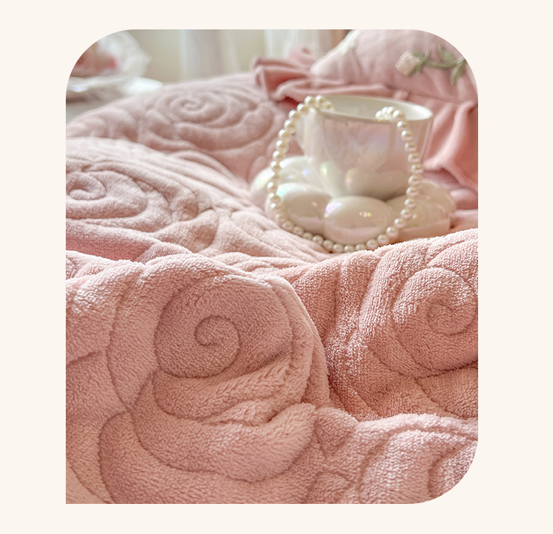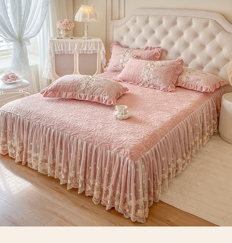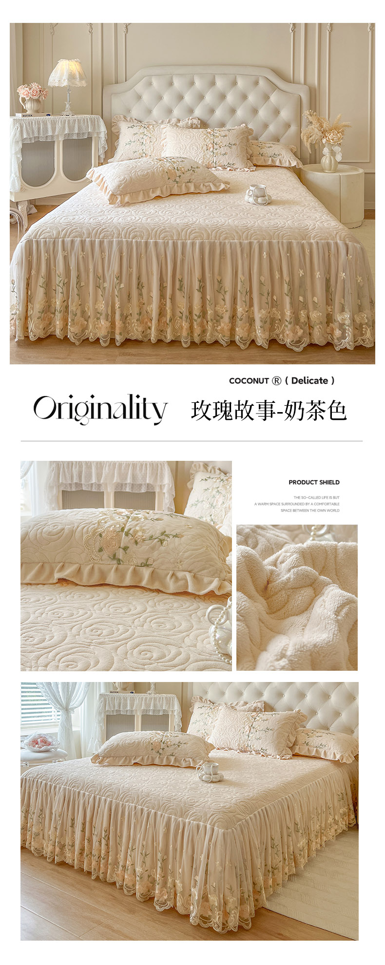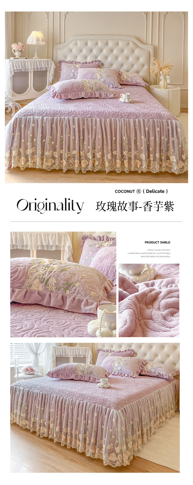 恋尚 2025新款柔软牛奶绒保暖蕾丝床裙单品-玫瑰故事(控价150) 玫瑰故事-蜜桃粉