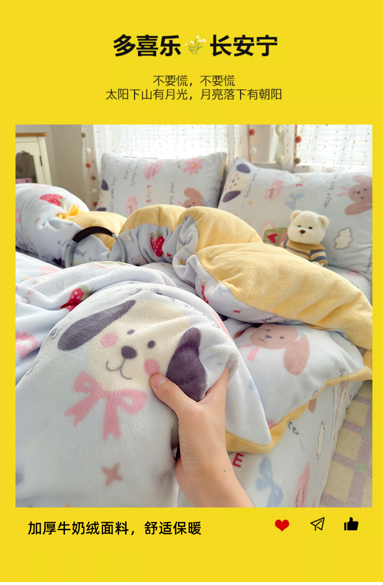 当前位置: 91家纺网 > 商品网购 > 床品套件 > 四件套 > 牛奶绒四件套 > 沐芷 2025 高克重加厚A类牛奶绒四件套珊瑚绒卡通简约三件套 【绒】趣味课堂