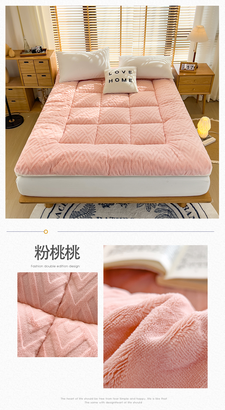 • 91家纺网 家纺一手货源 找家纺 (总)蓝冰家纺 2025新款雕花牛奶绒羊羔绒床垫,宾利兰,粉桃桃,落日橙,绅士灰