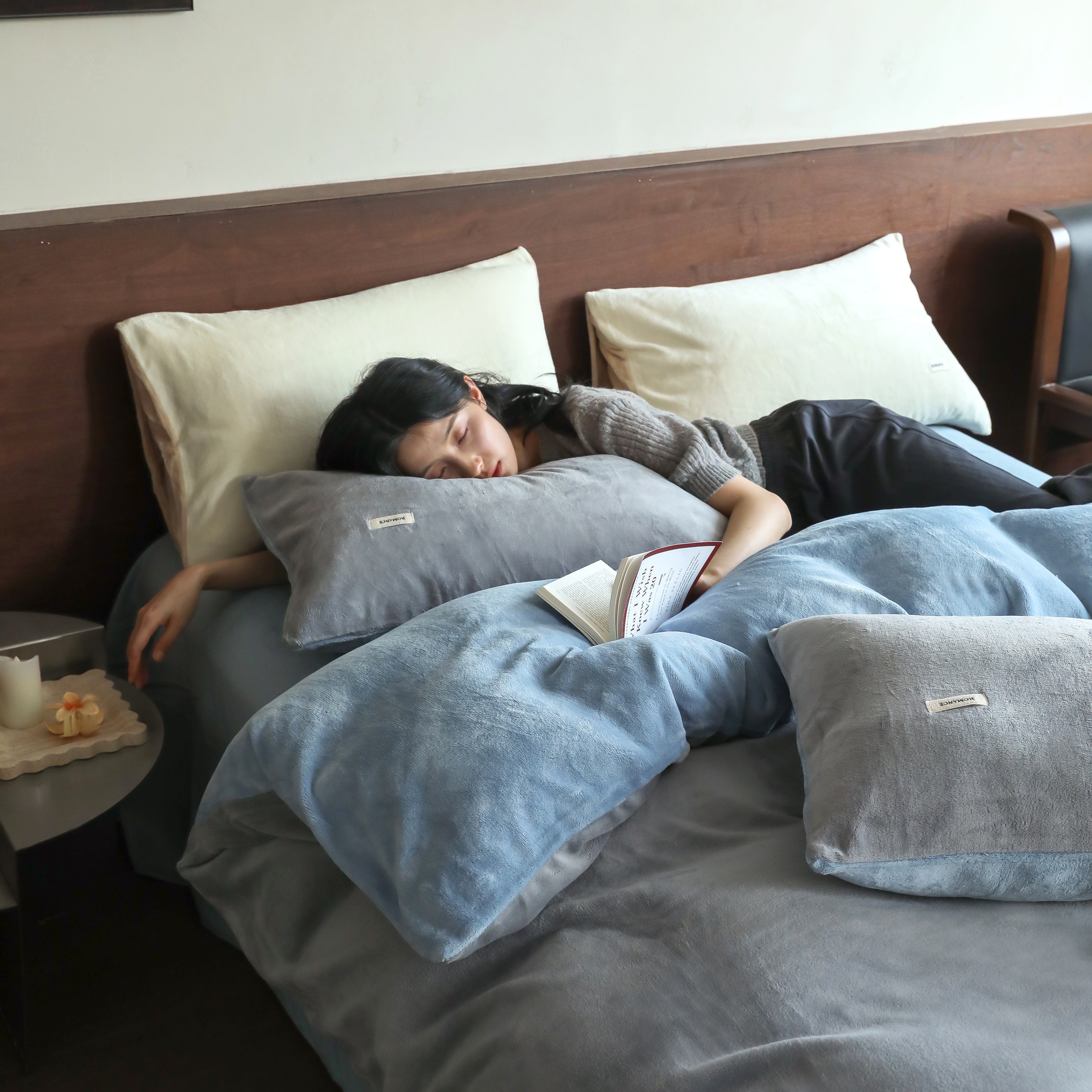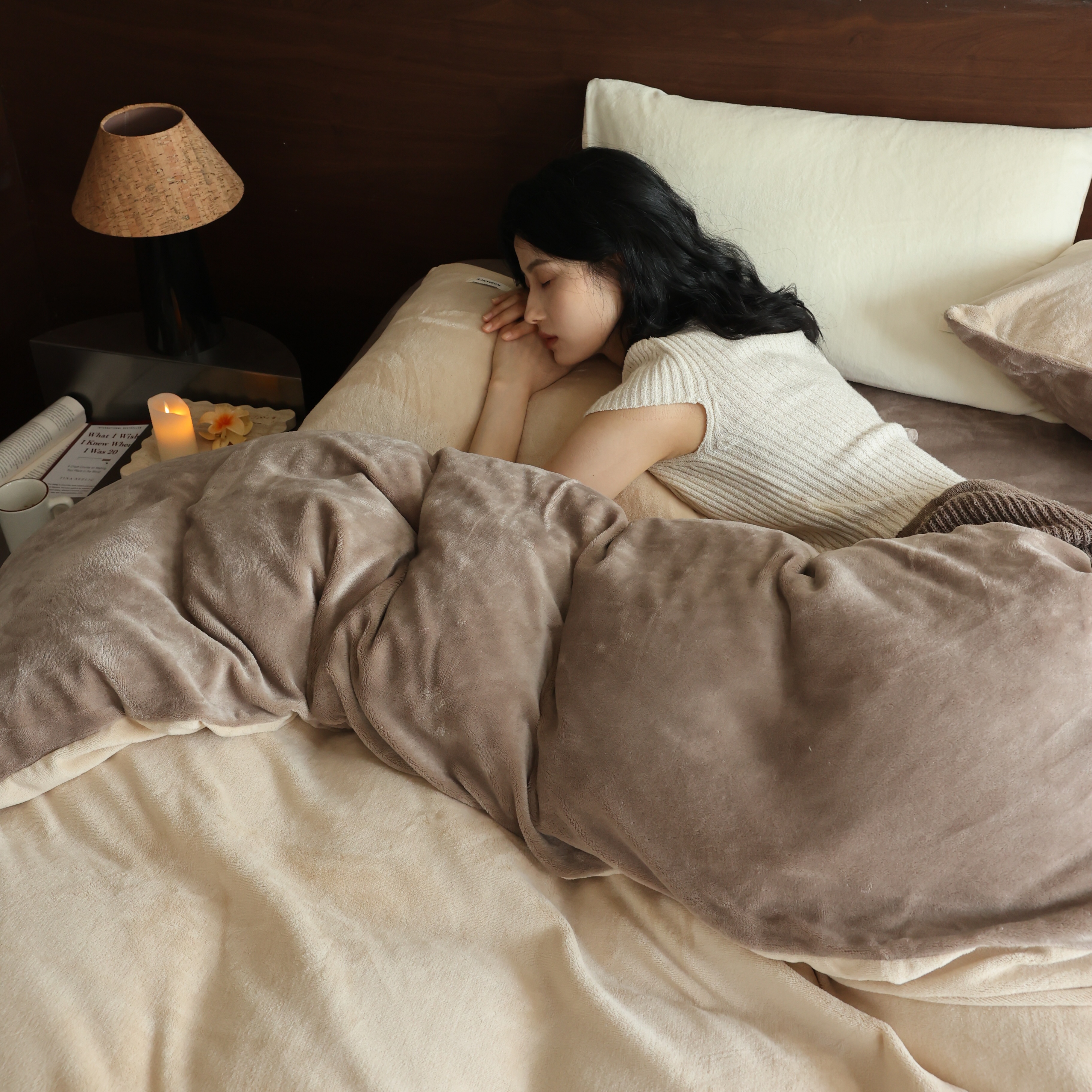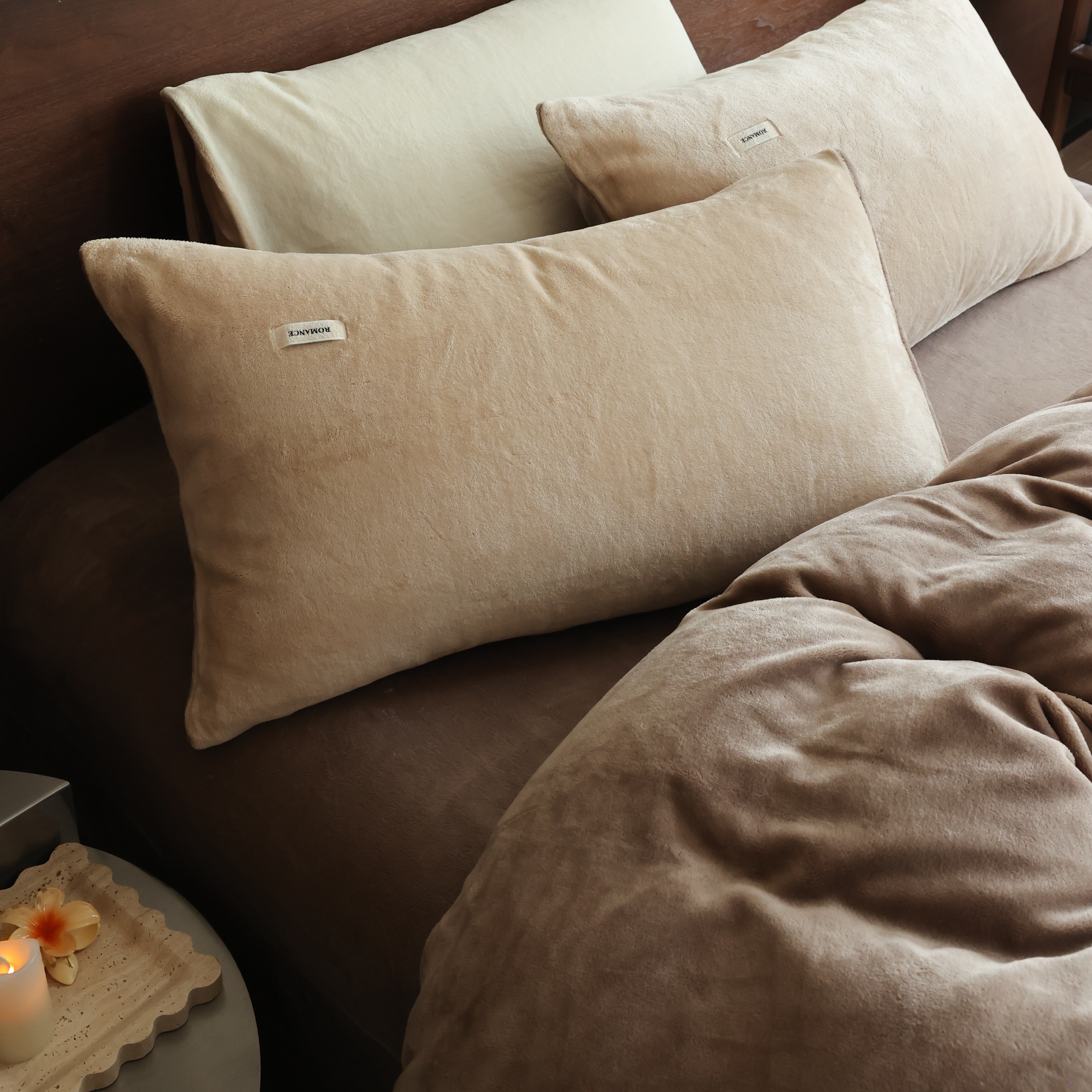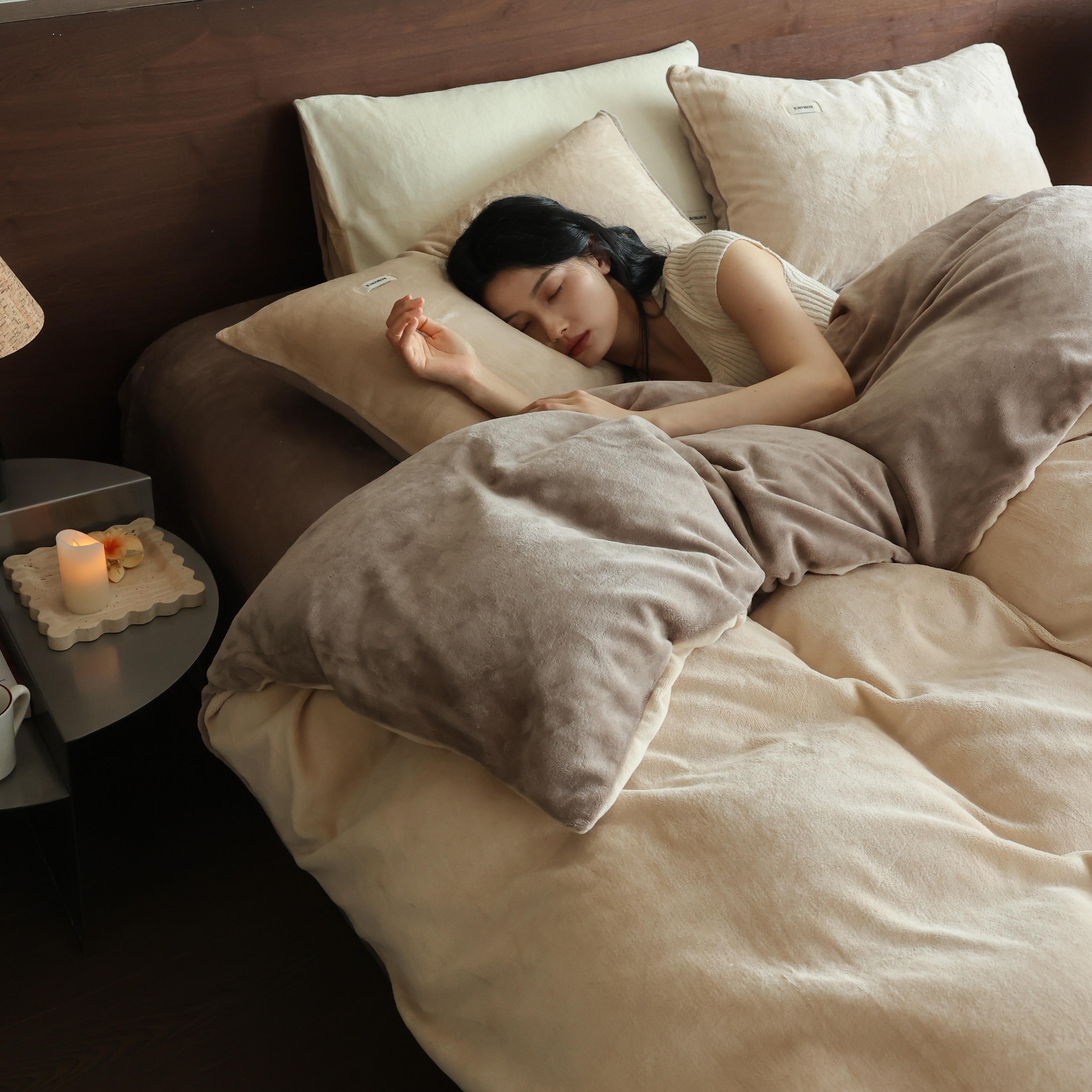 商品名称:(总)时光里 2025新款230克纯色简约双拼牛奶绒四件套套件