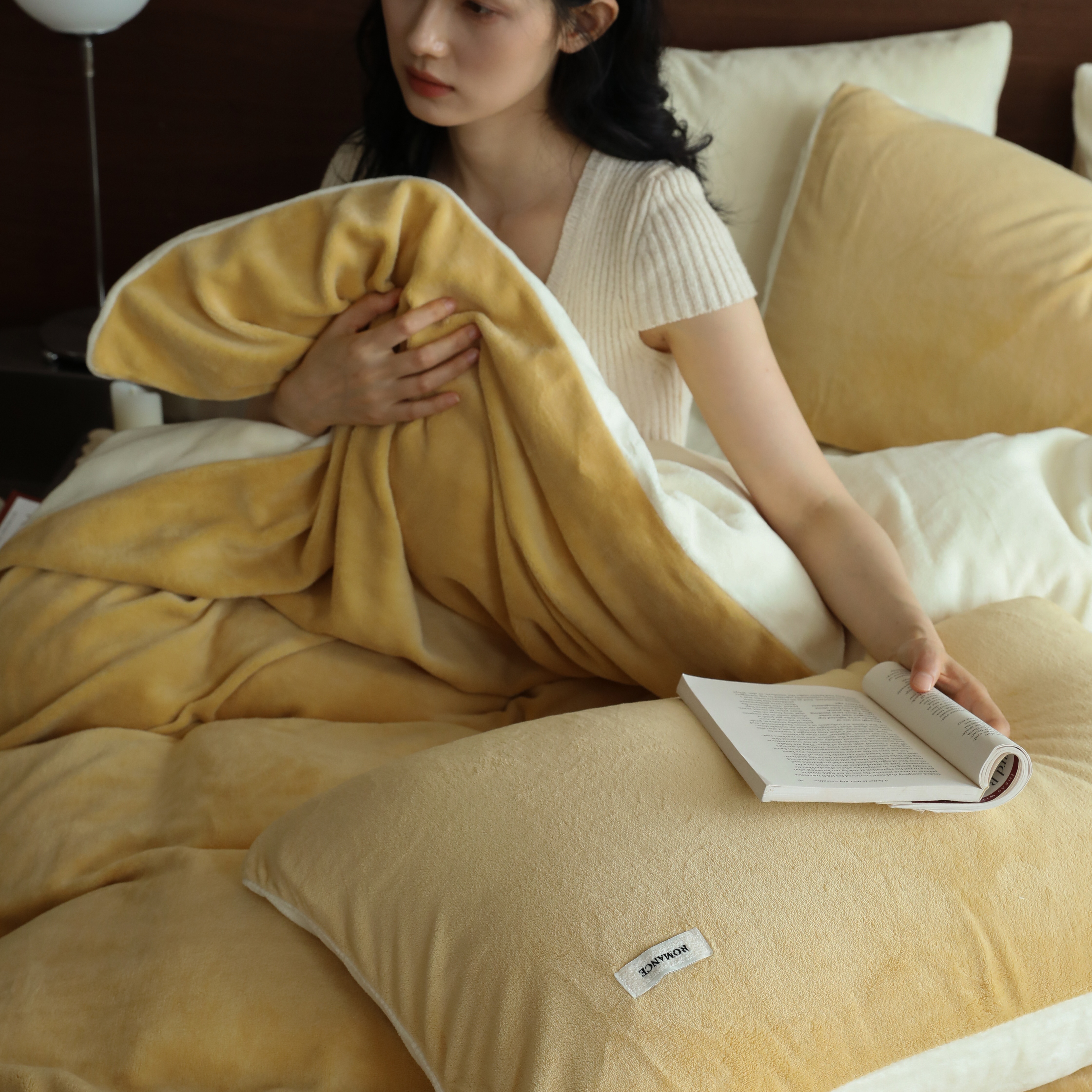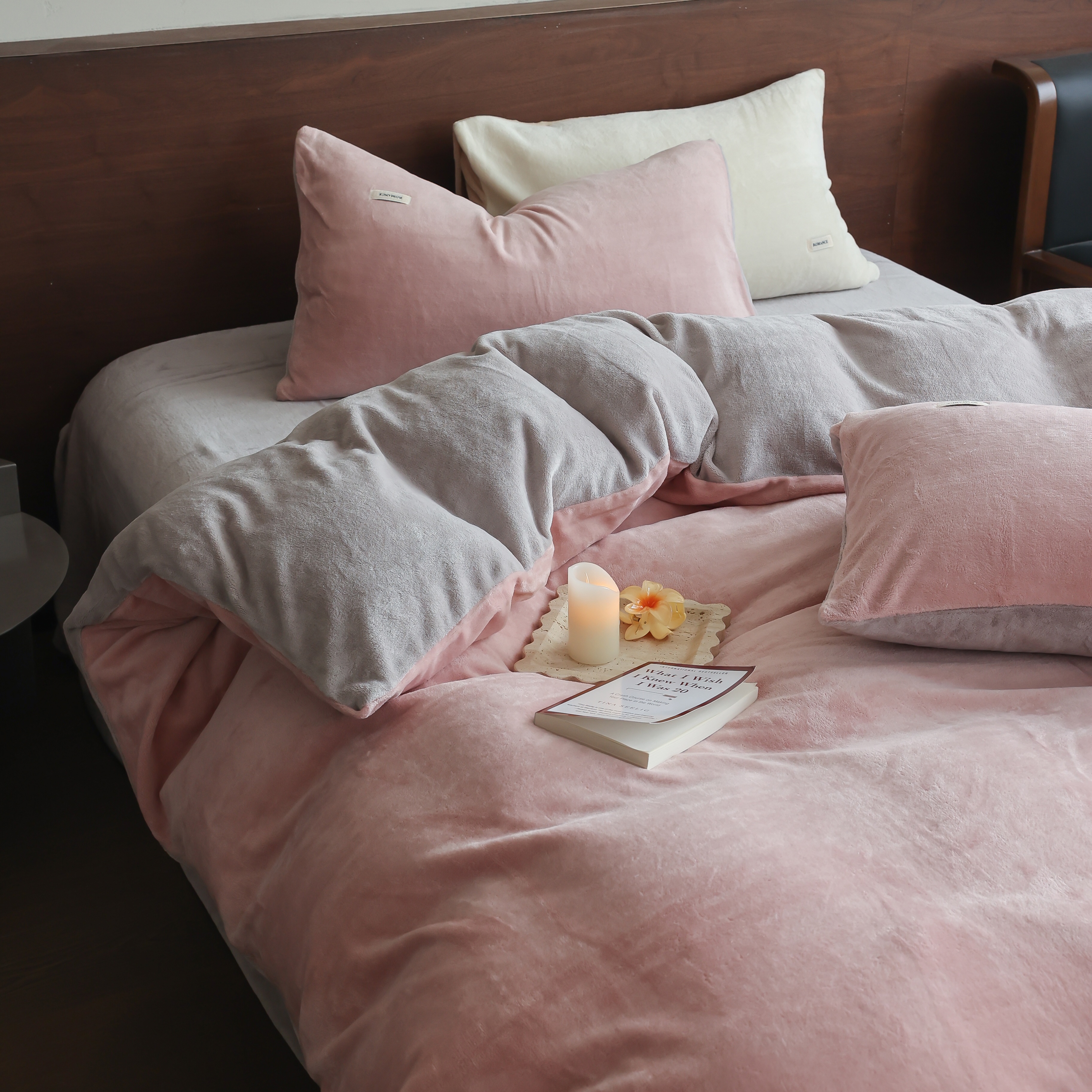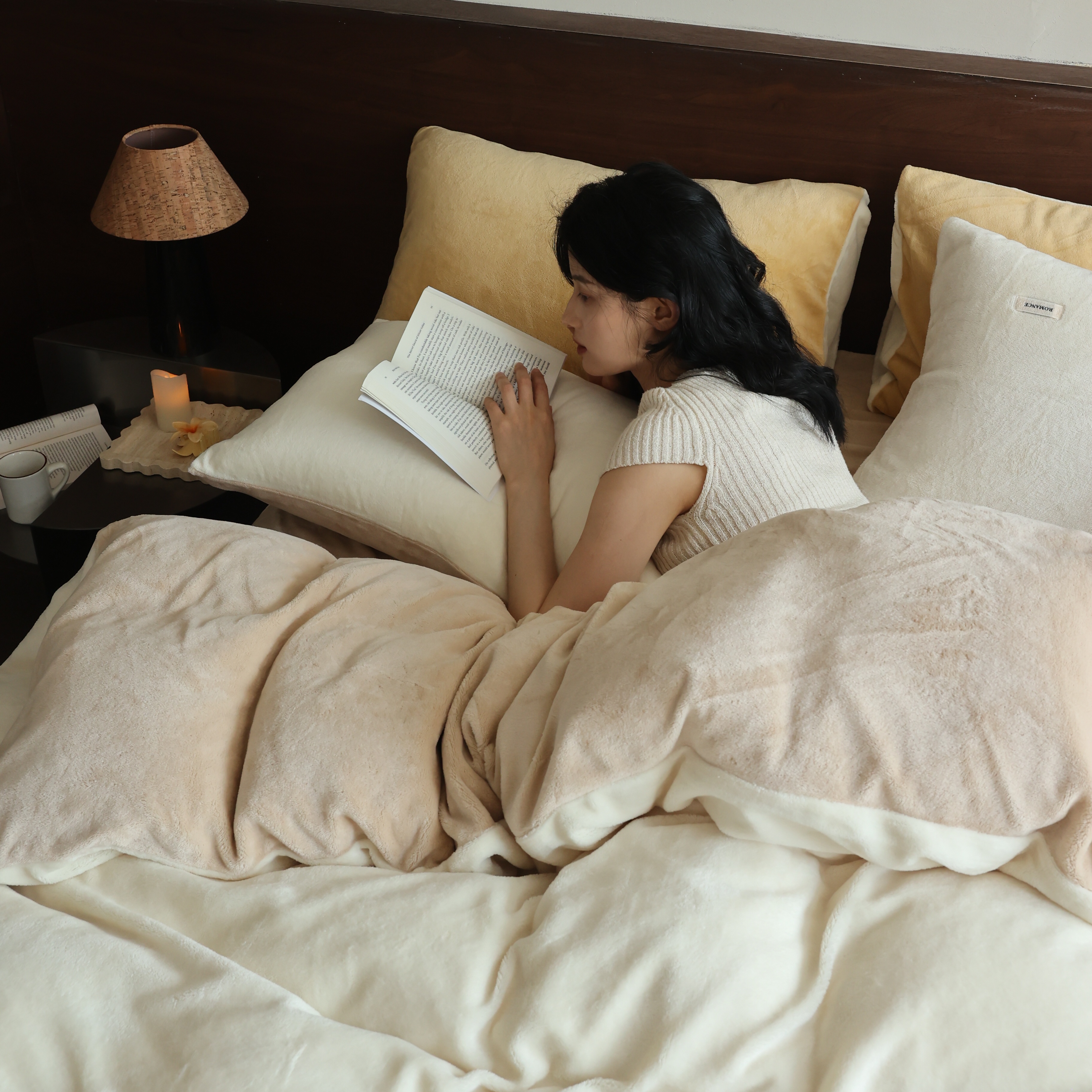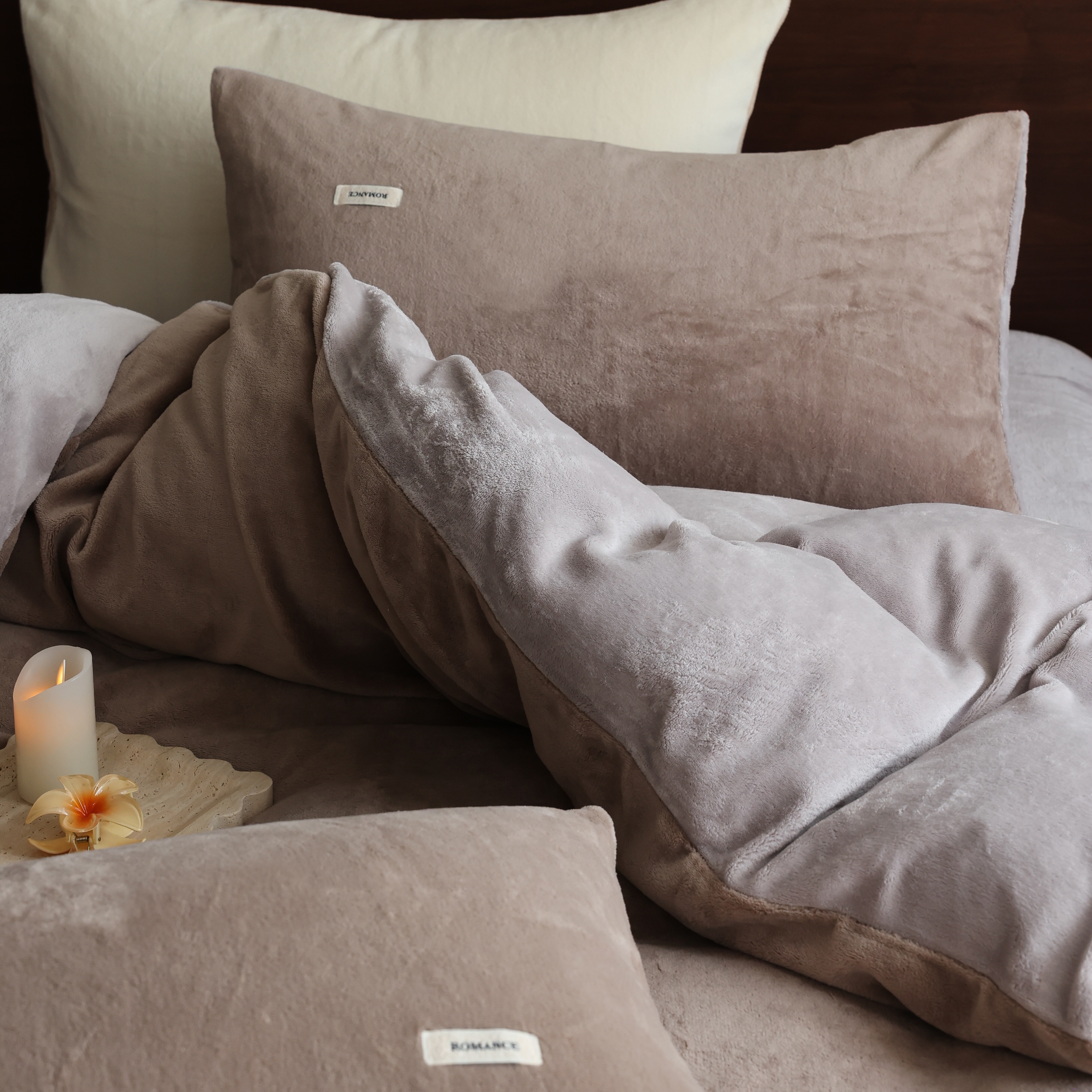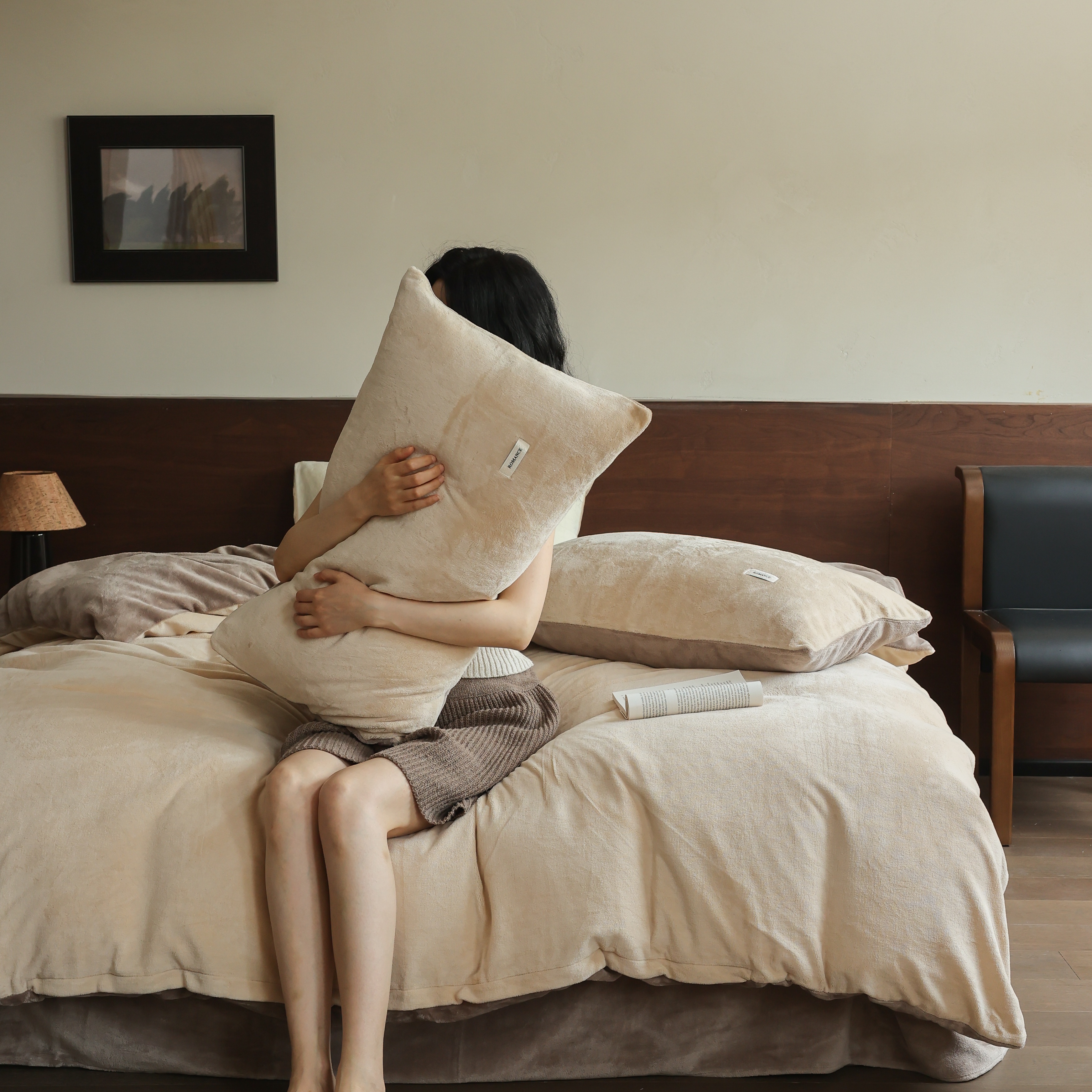 商品名称:(总)时光里 2025新款230克纯色简约双拼牛奶绒四件套套件