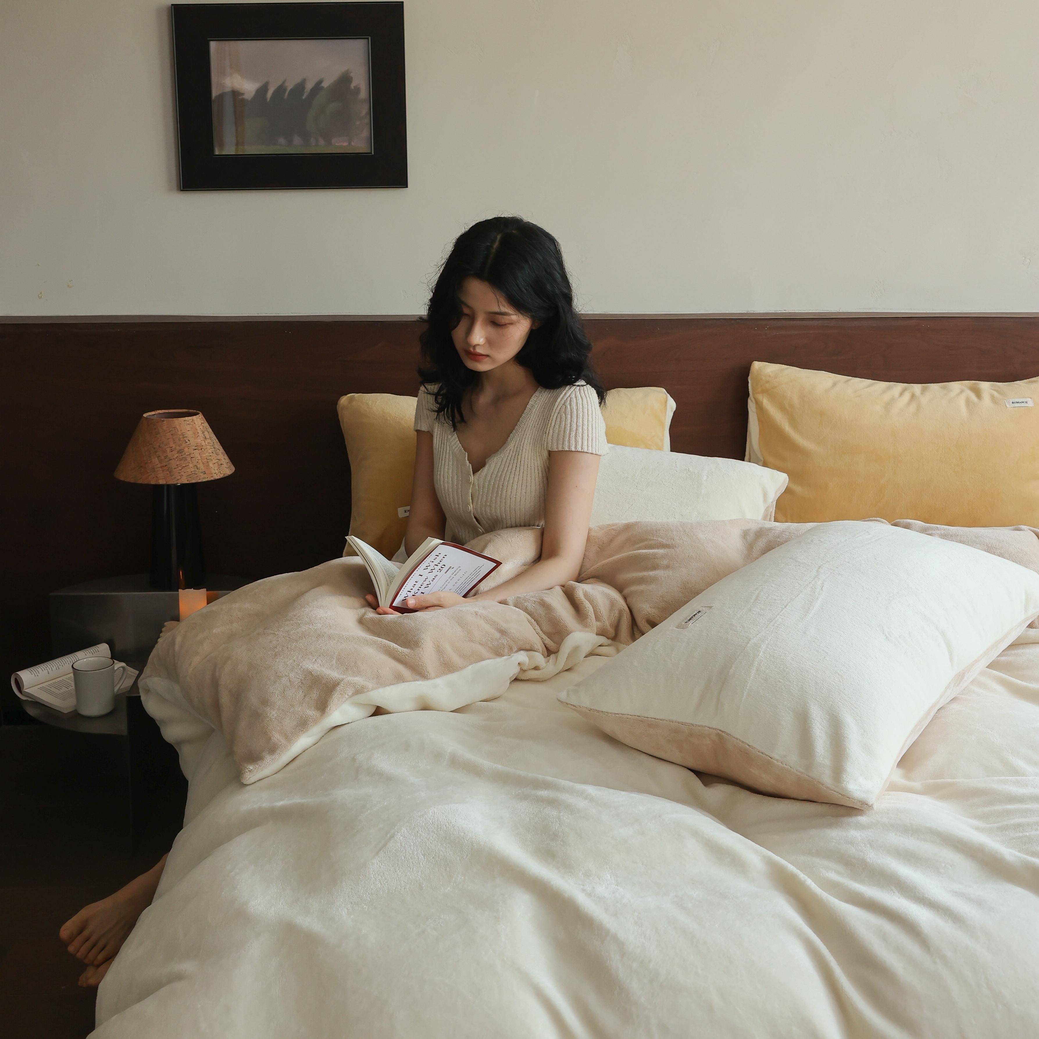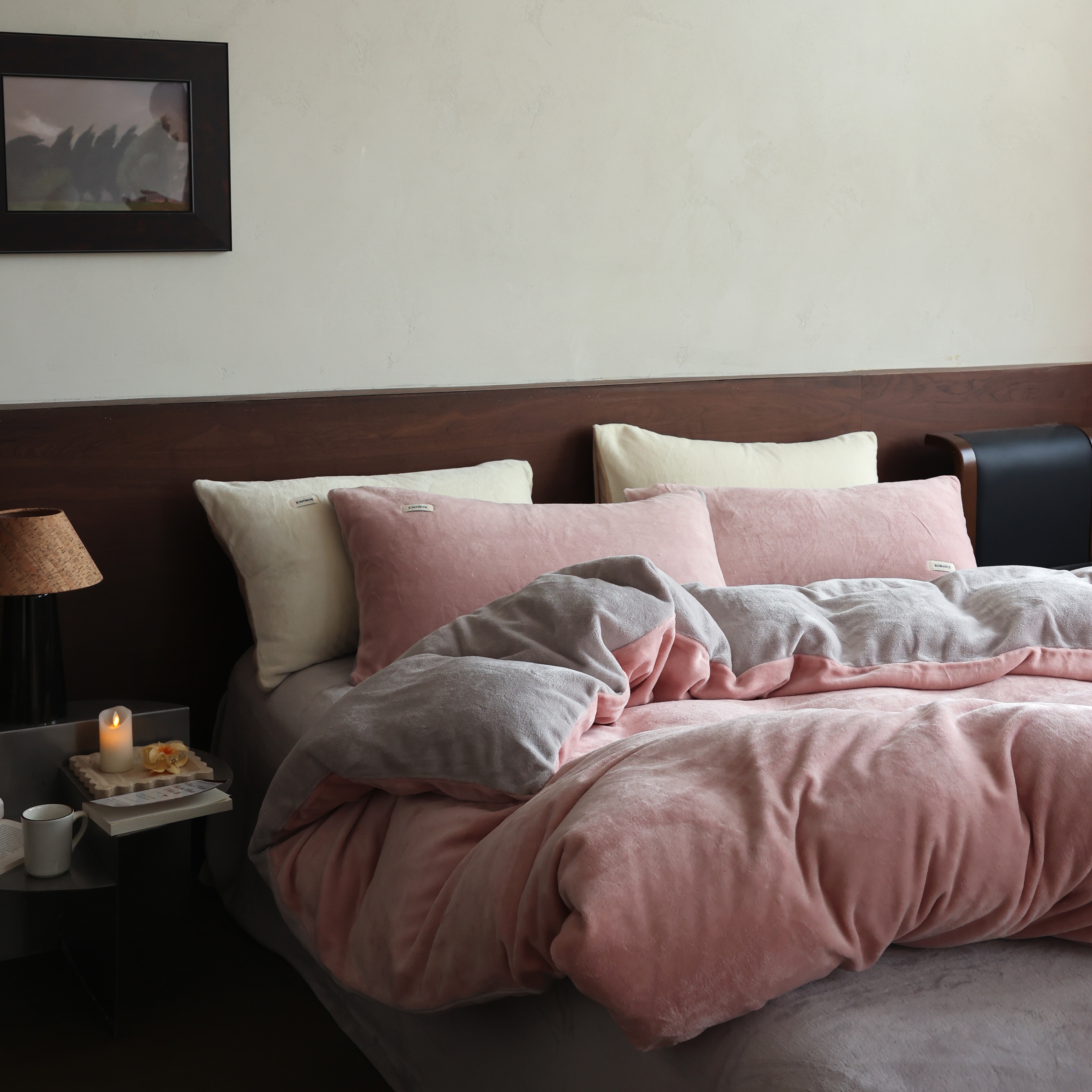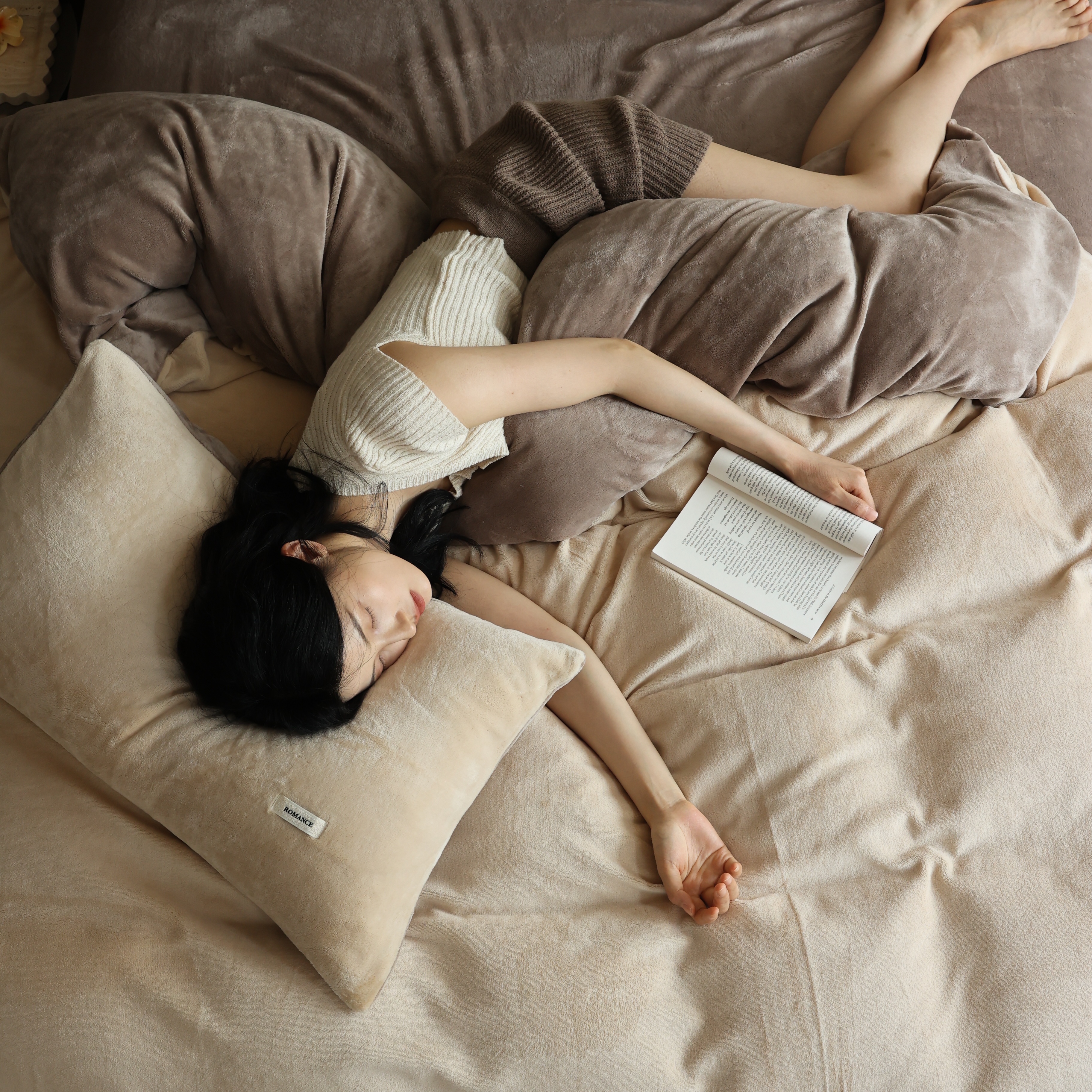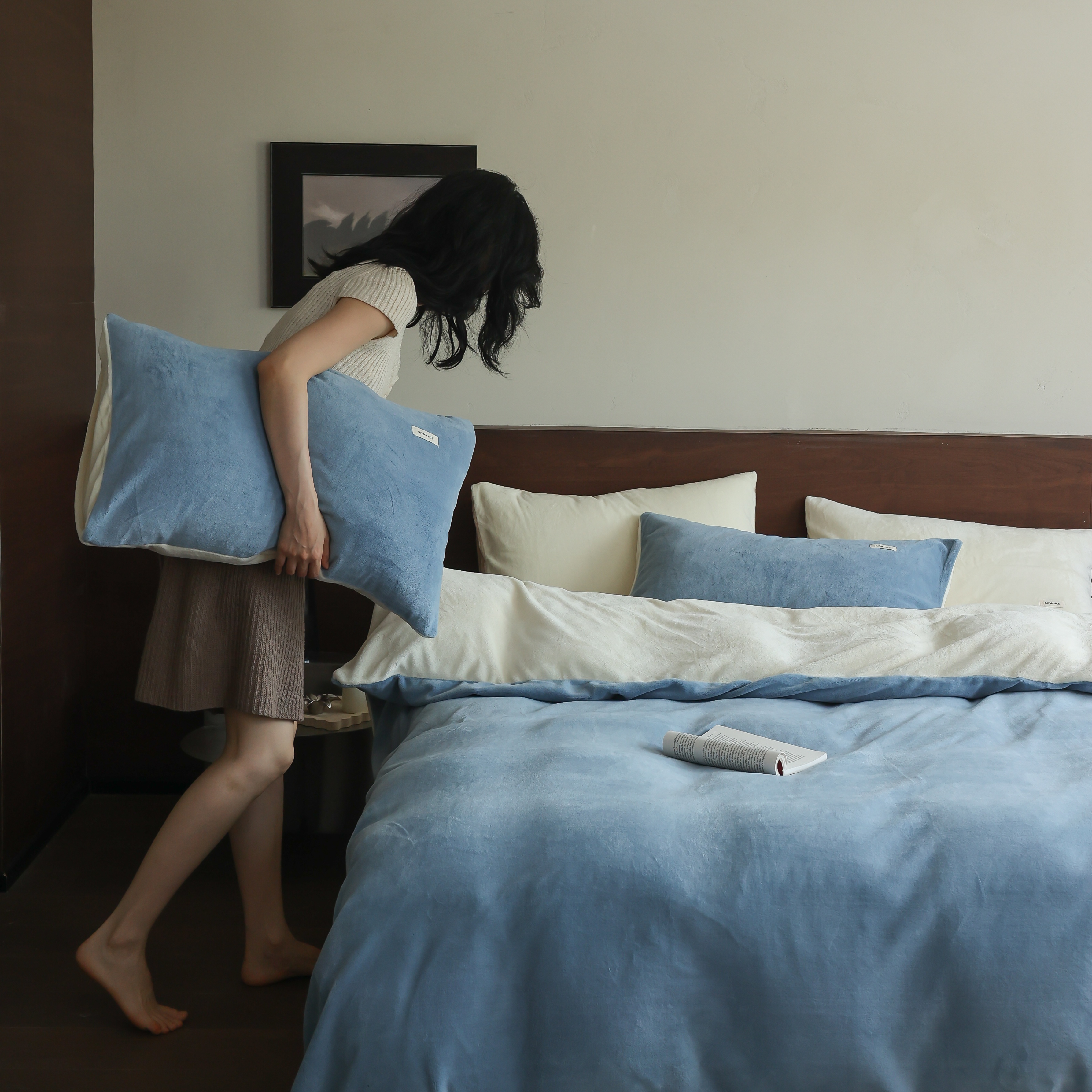 商品名称:(总)时光里 2025新款230克纯色简约双拼牛奶绒四件套套件