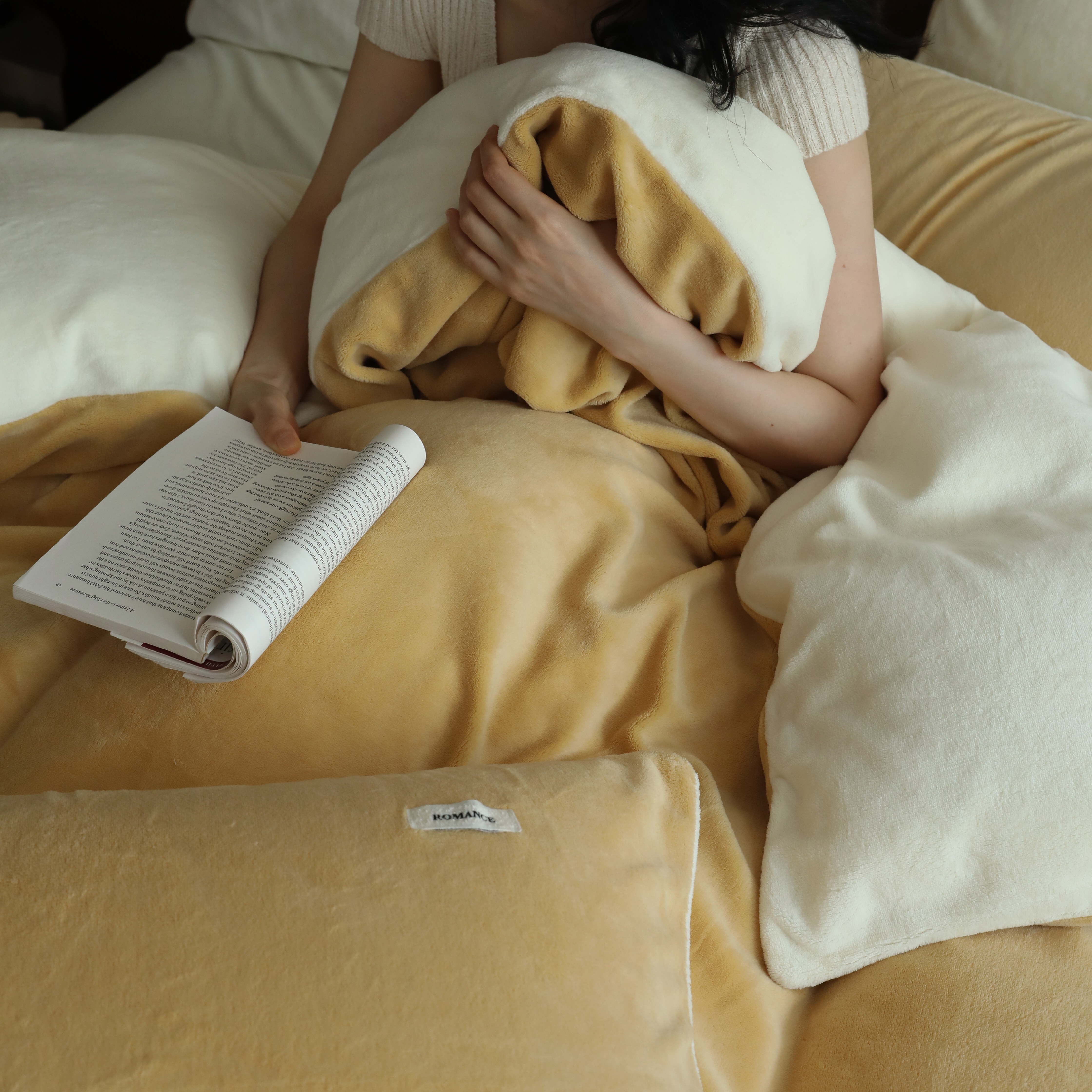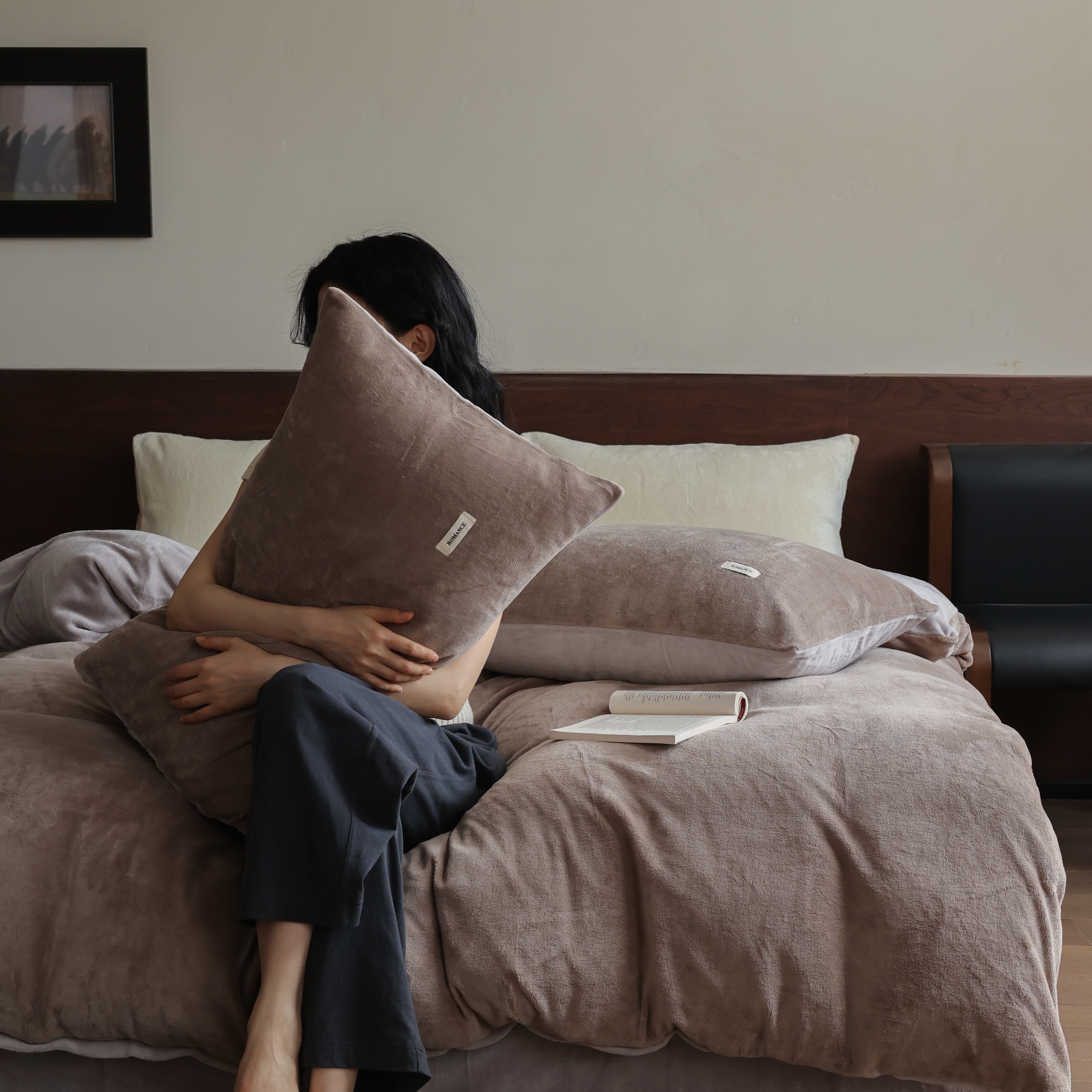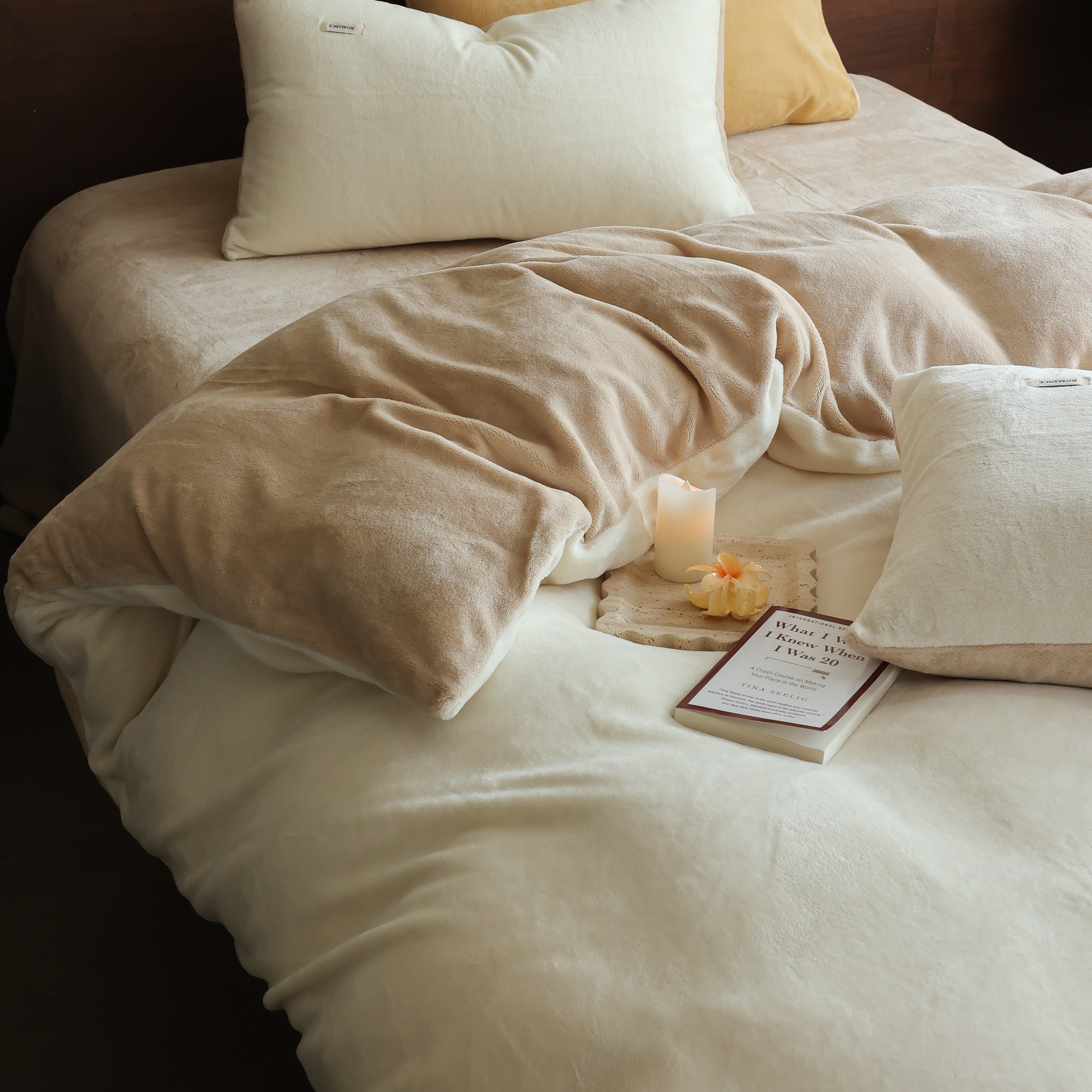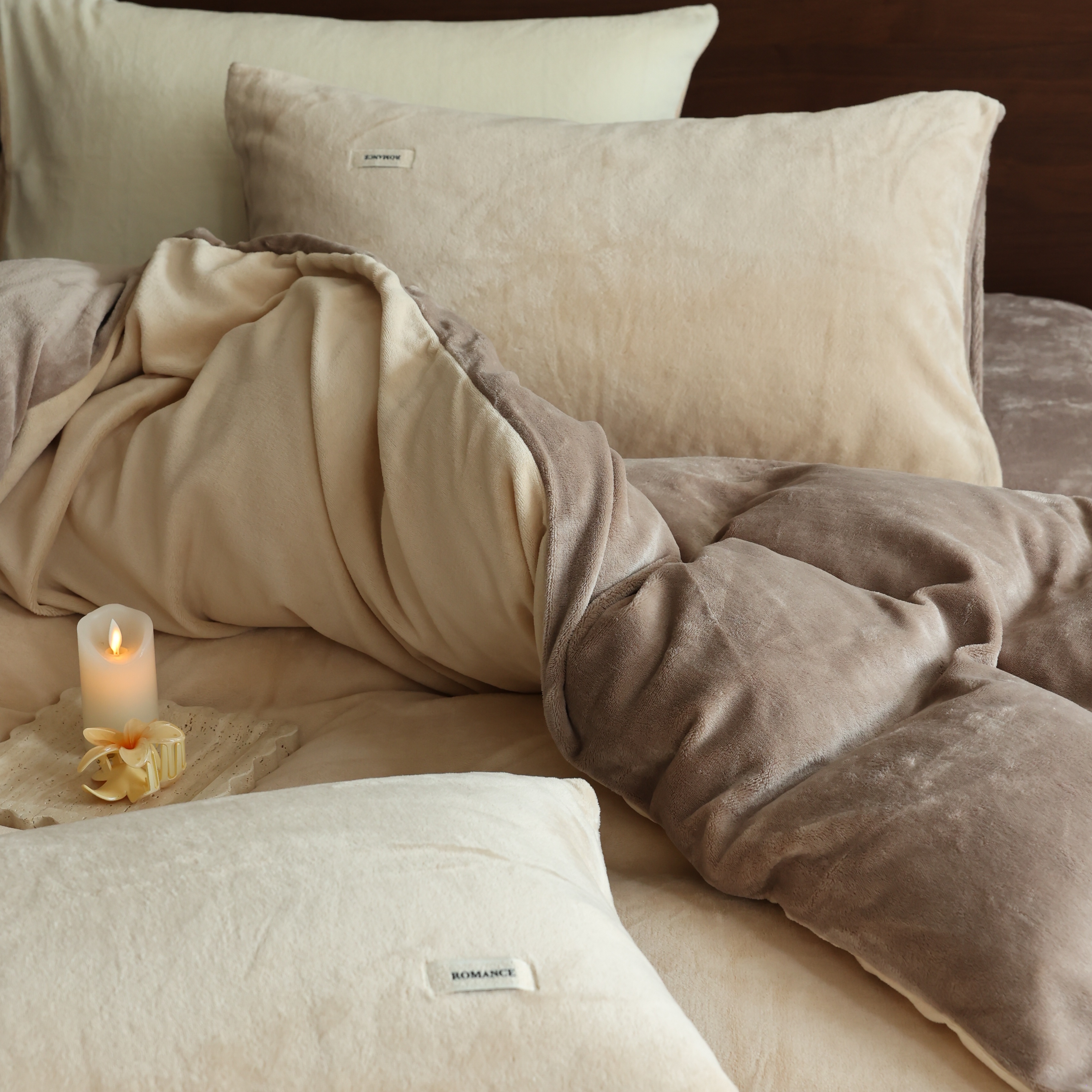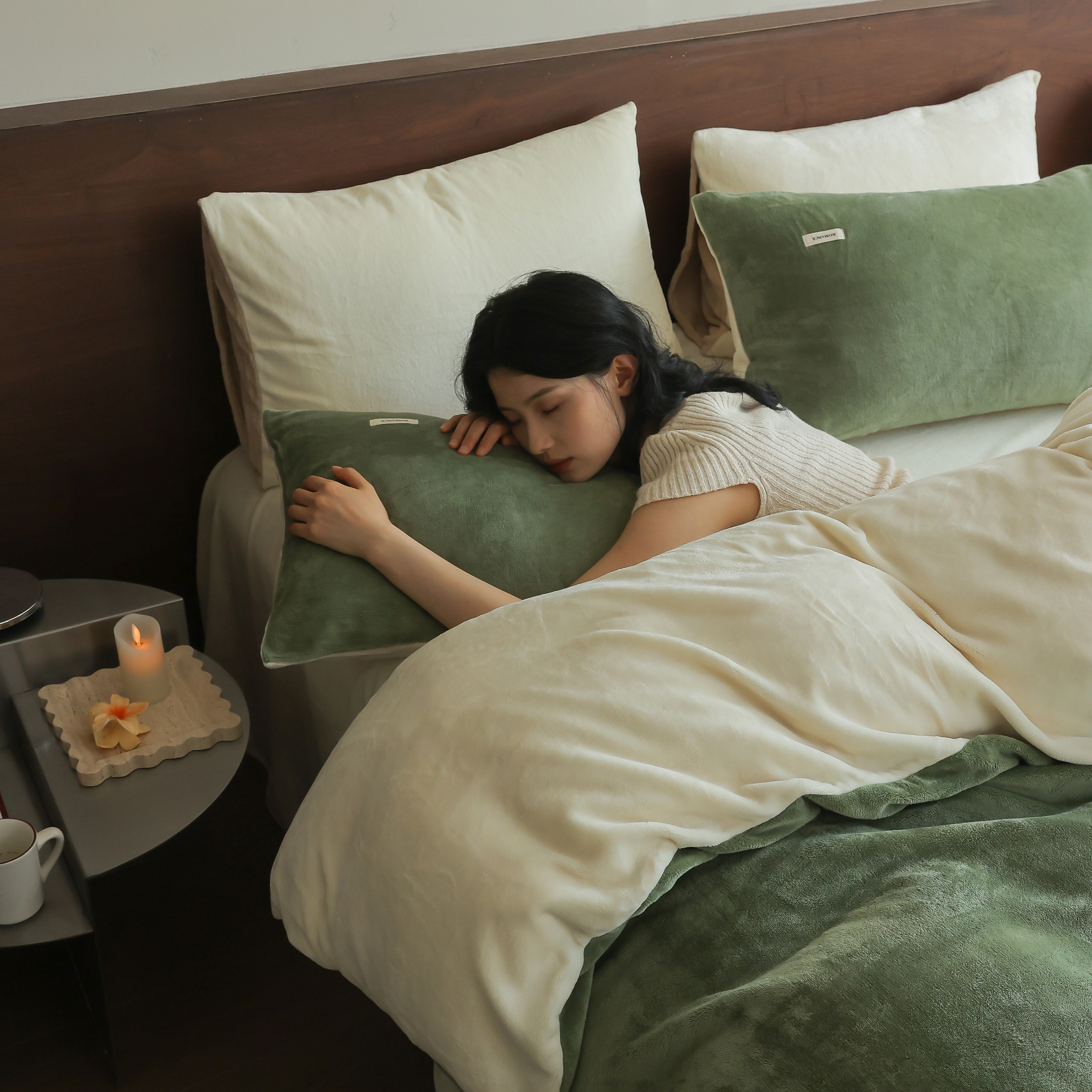 商品名称:(总)时光里 2025新款230克纯色简约双拼牛奶绒四件套套件