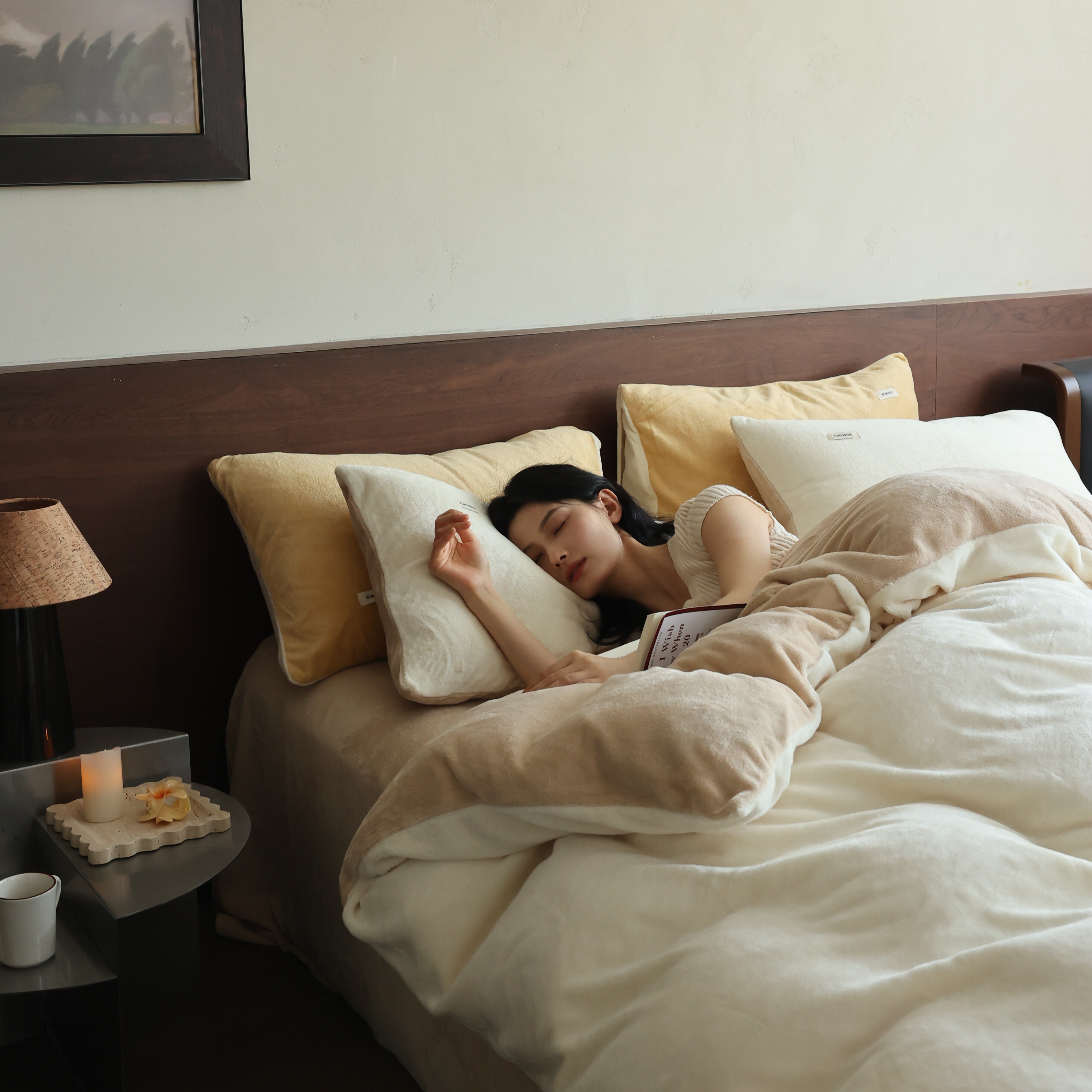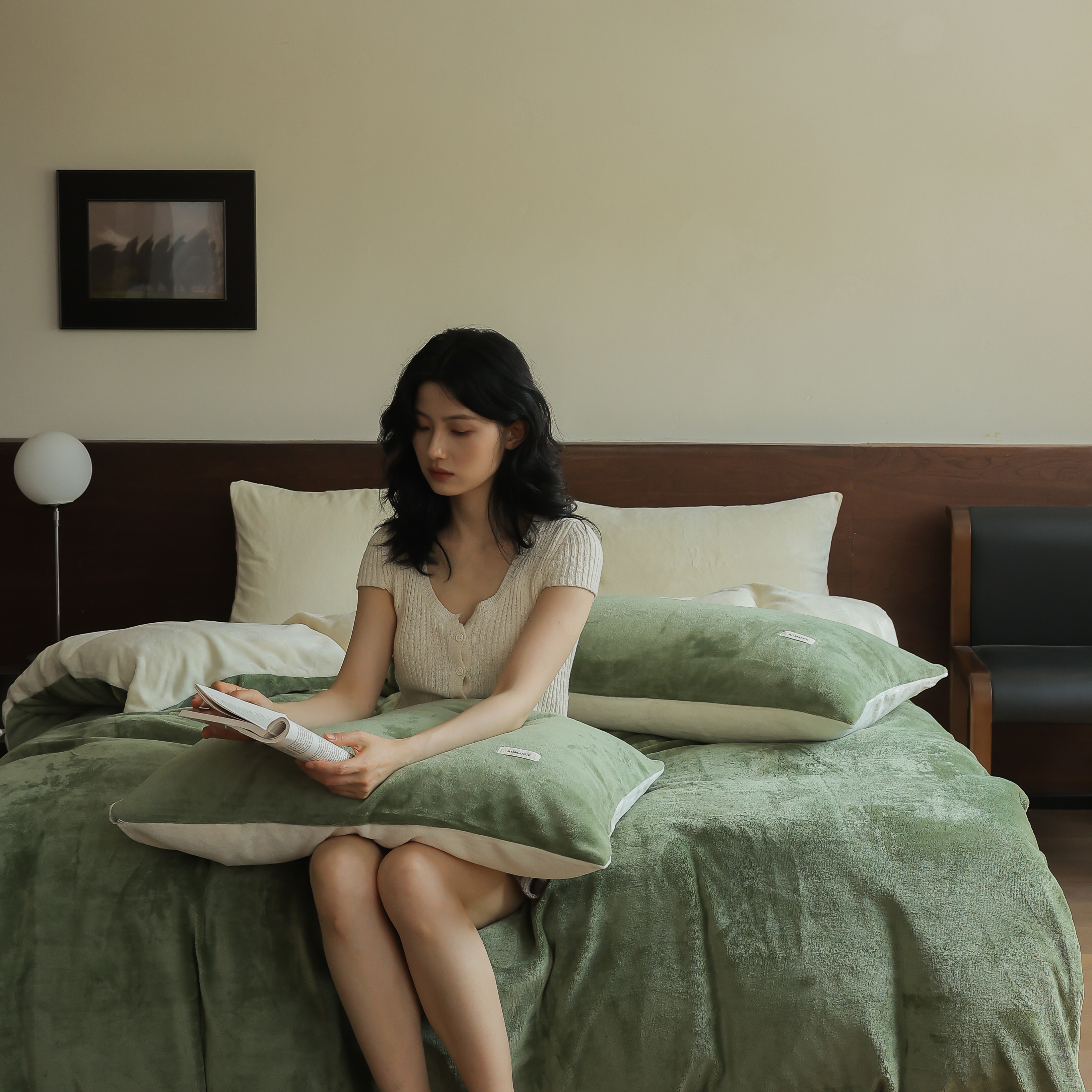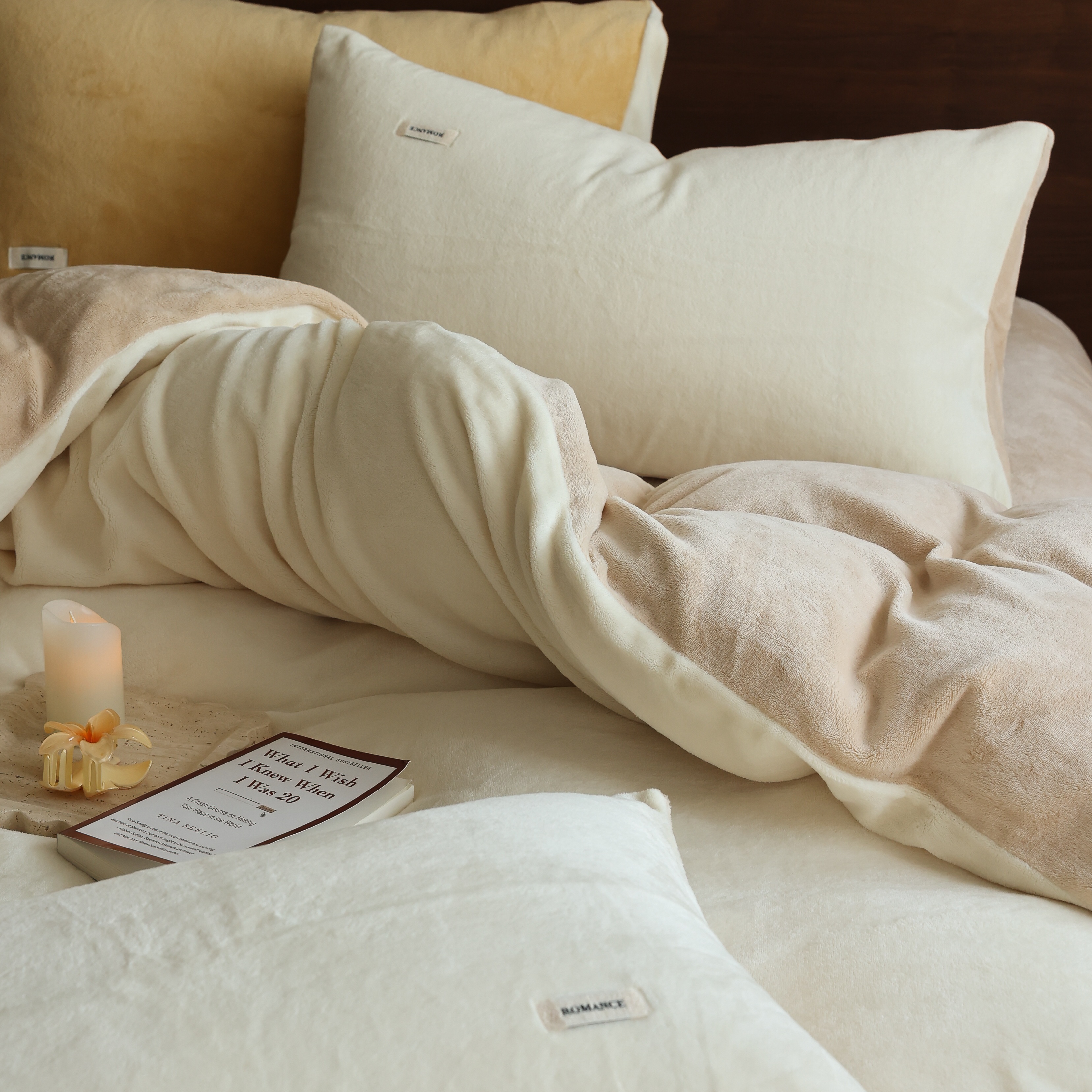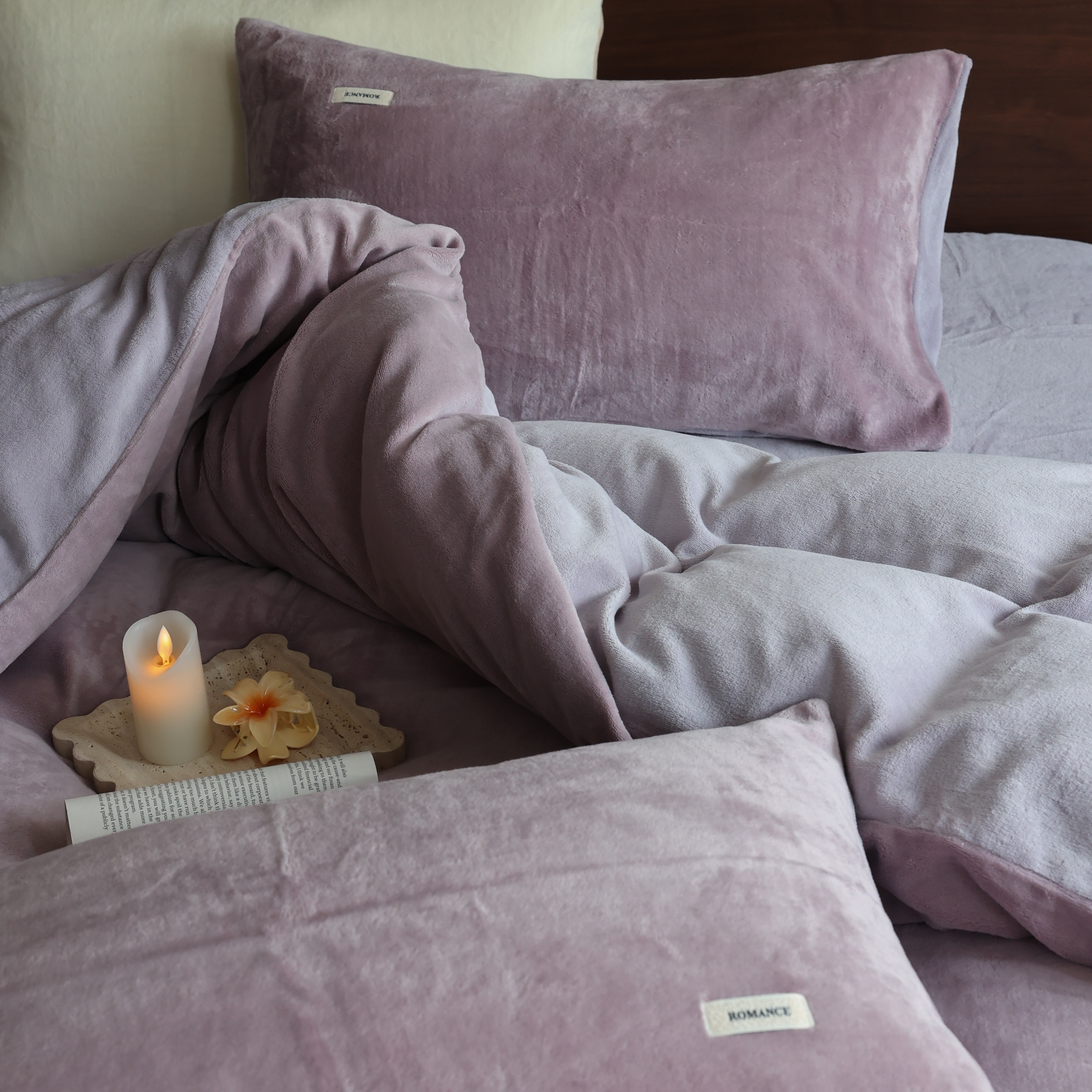 商品名称:(总)时光里 2025新款230克纯色简约双拼牛奶绒四件套套件
