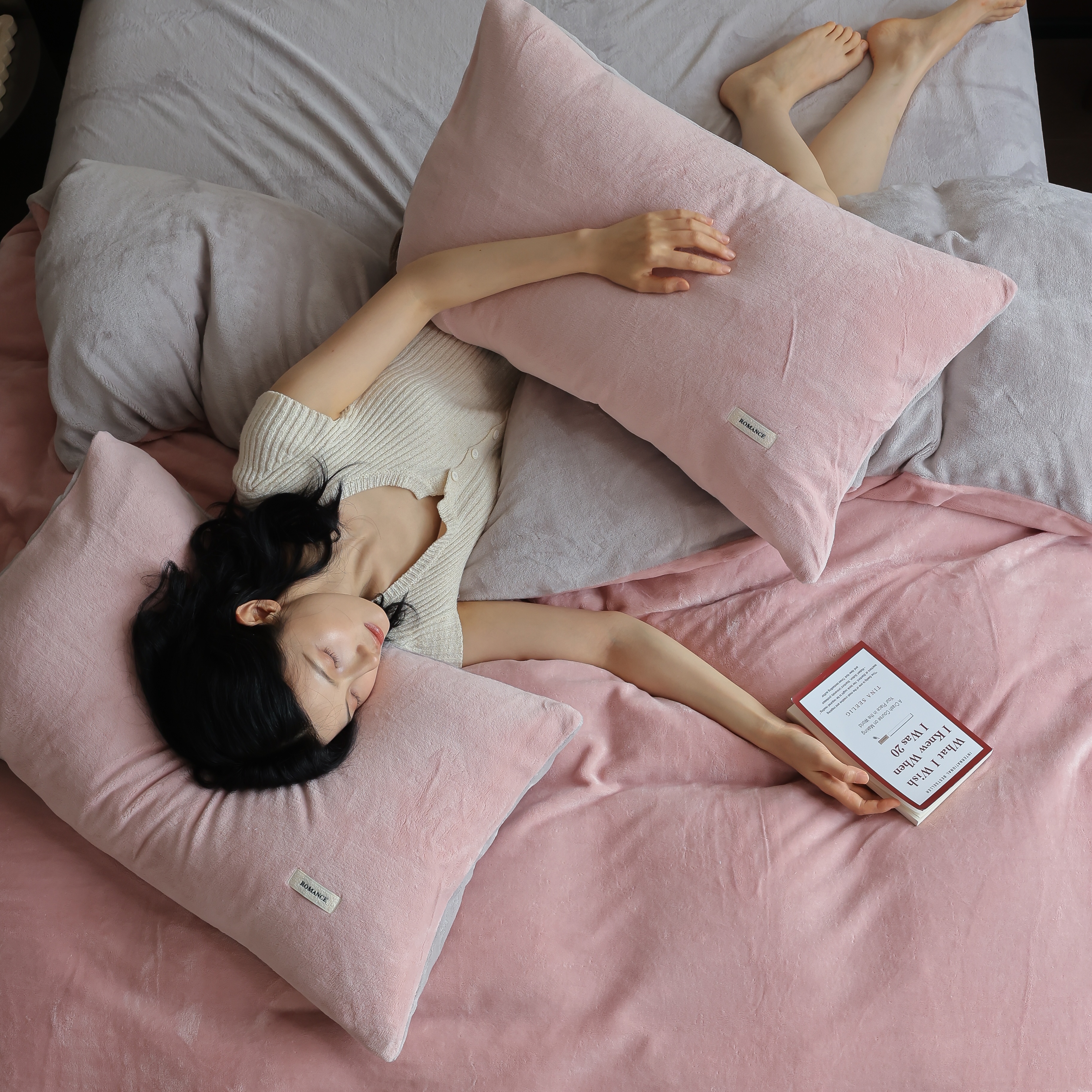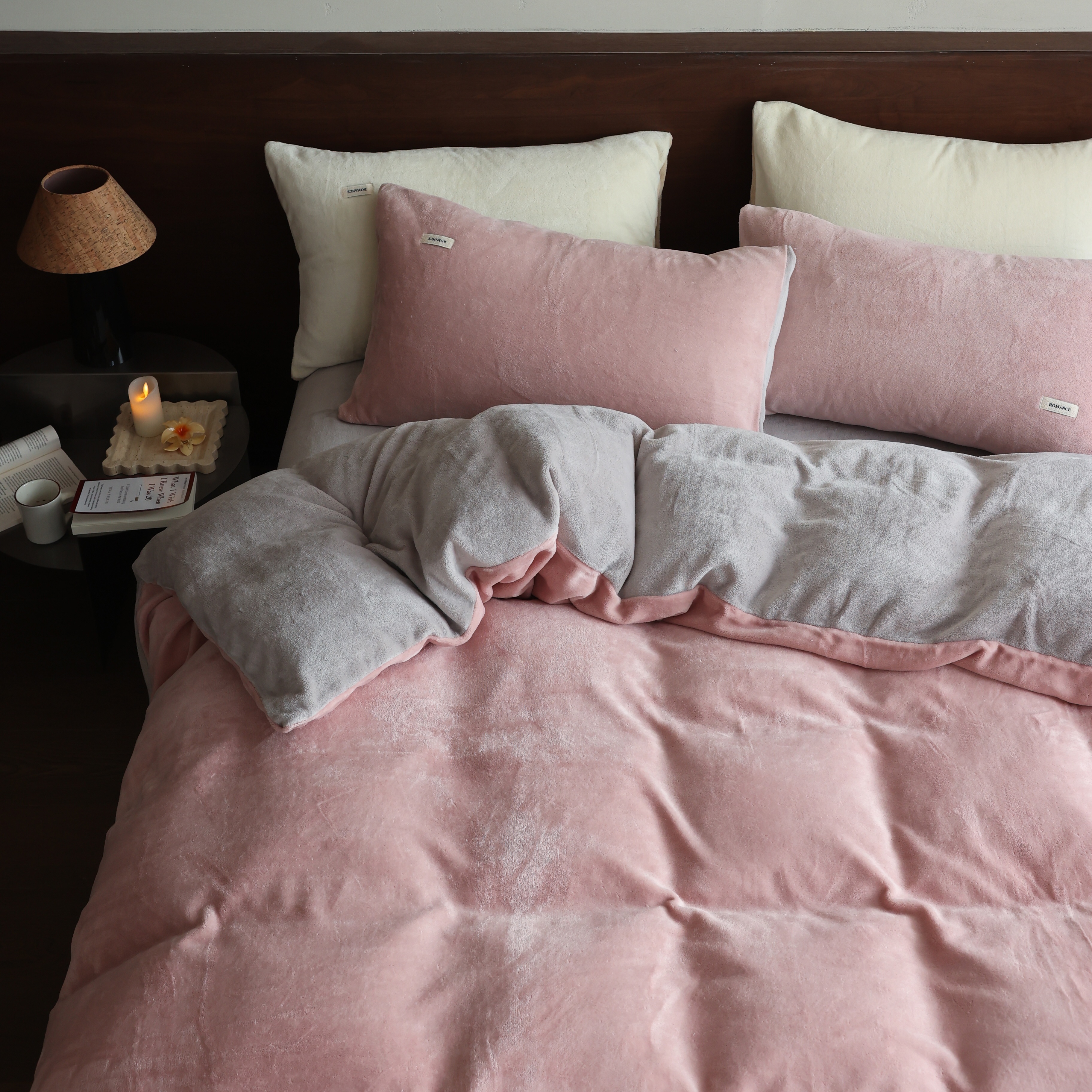 (总)时光里 2025新款230克纯色简约双拼牛奶绒四件套套件