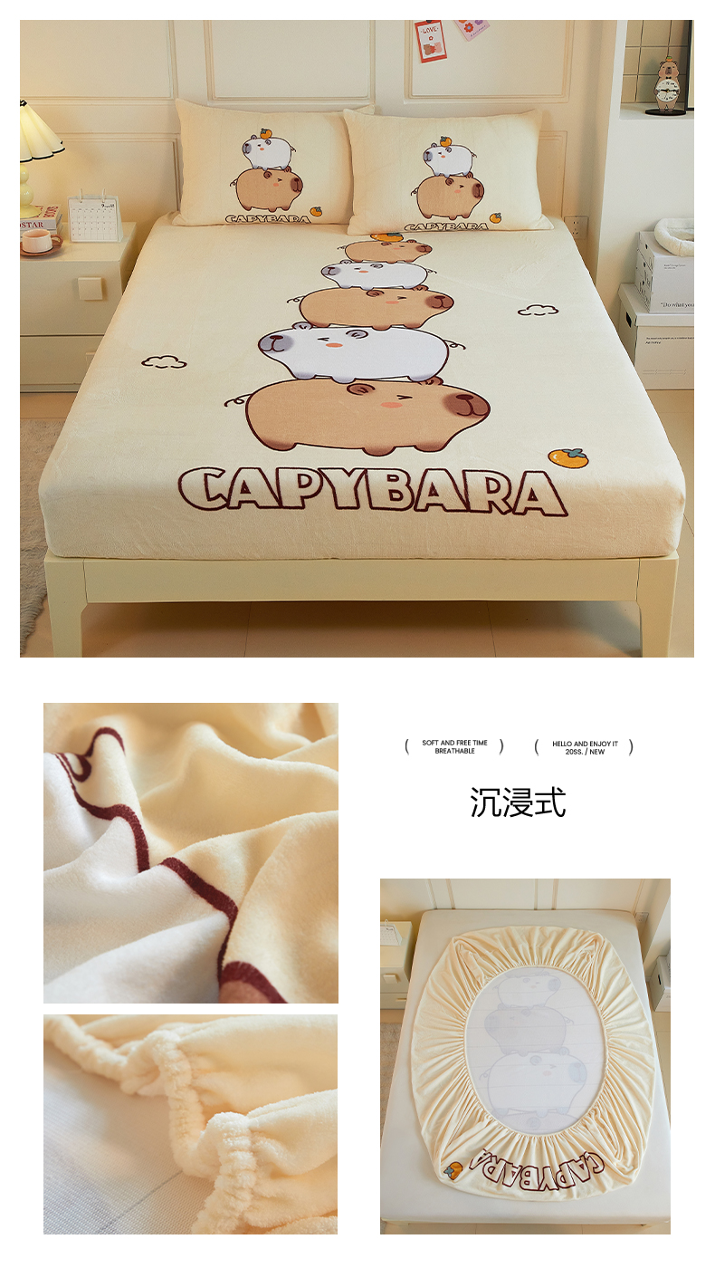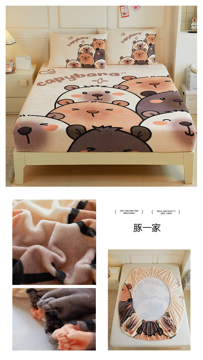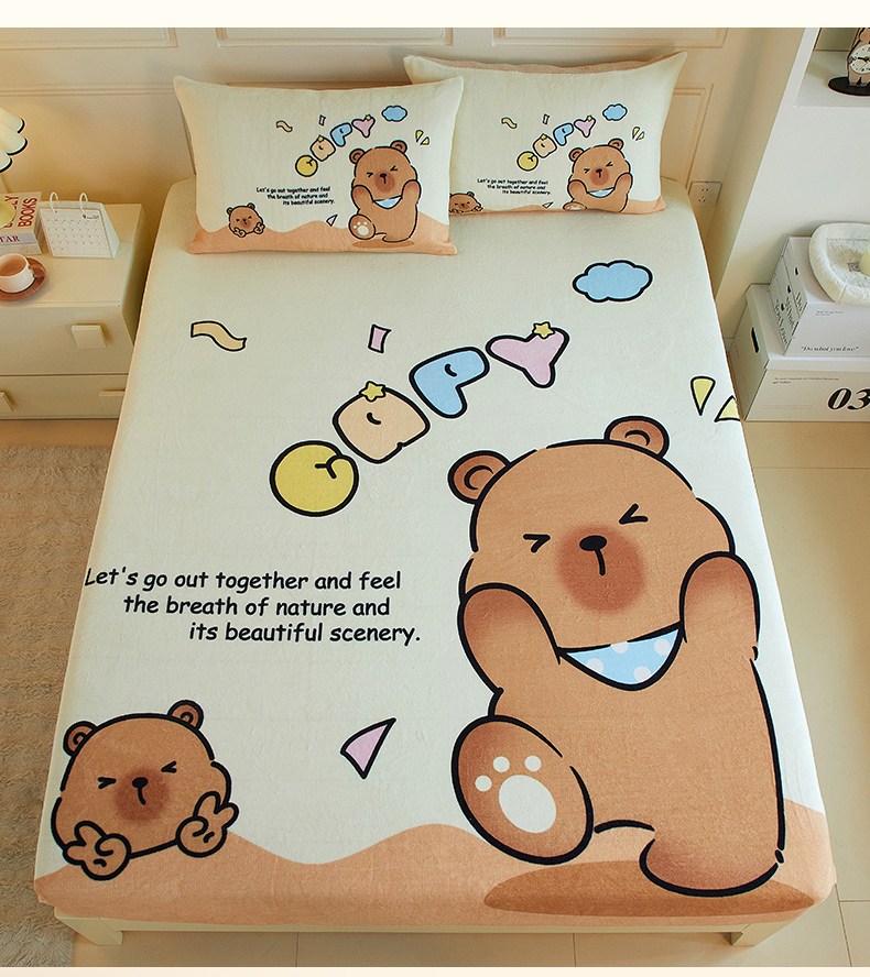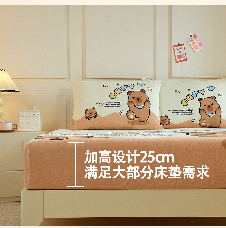 蘭菲家纺 2025新款保暖舒适卡皮巴拉牛奶绒系列单品床笠 熊巴拉