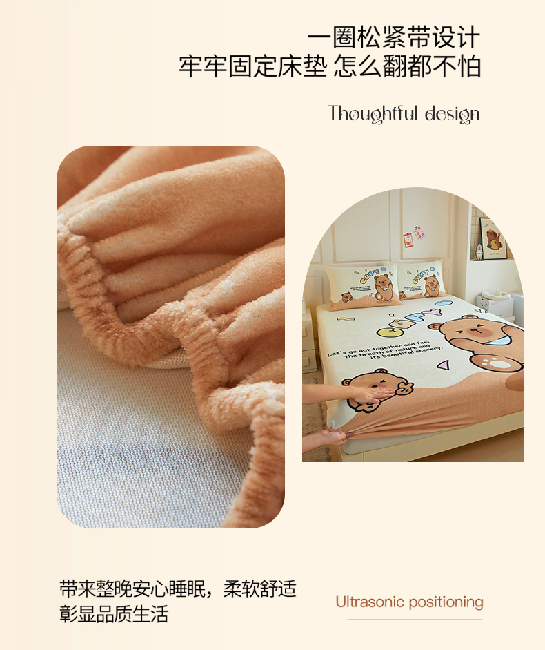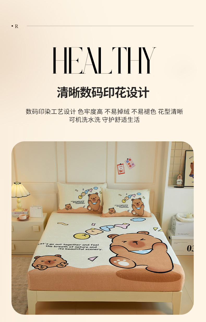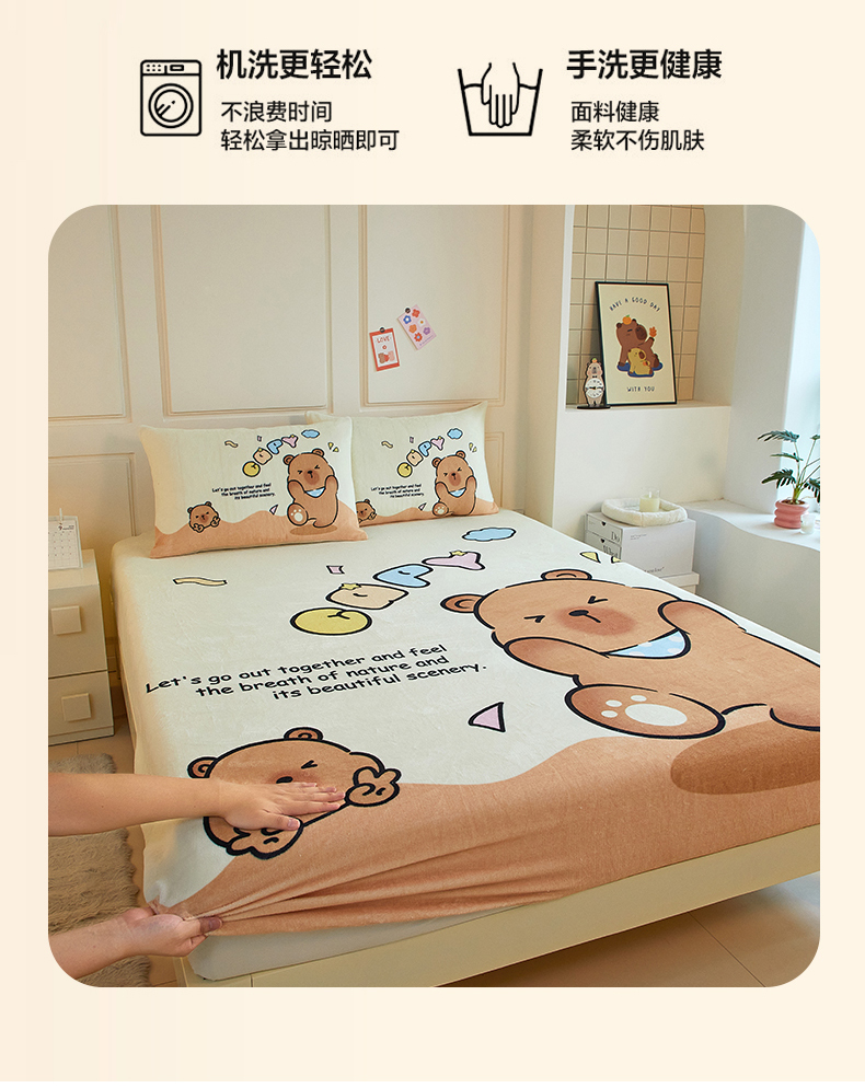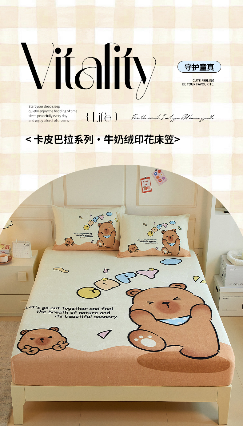 蘭菲家纺 2025新款保暖舒适卡皮巴拉牛奶绒系列单品床笠 熊巴拉