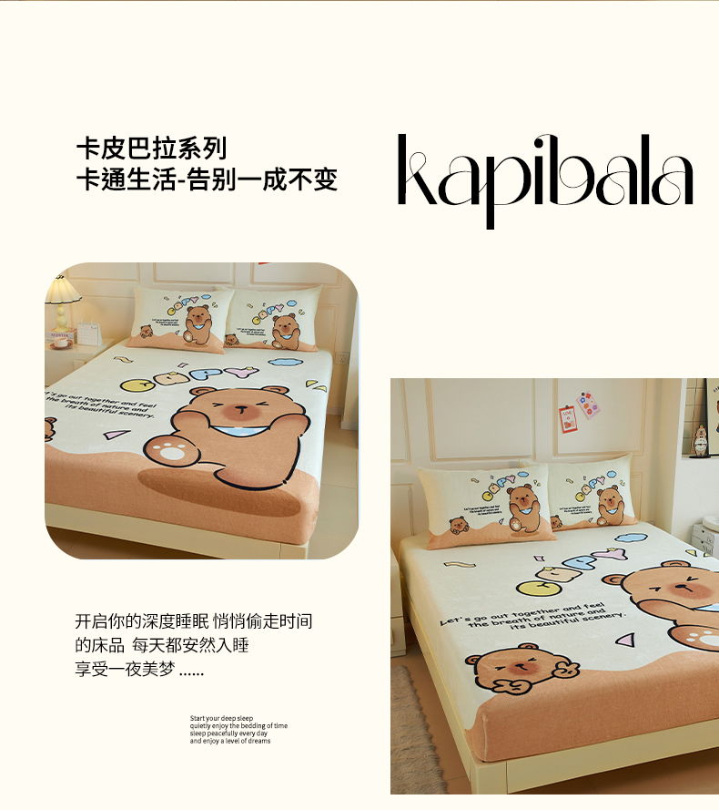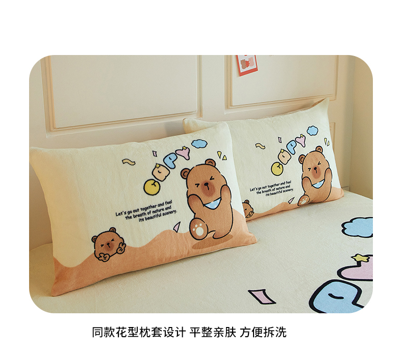 商品名称:蘭菲家纺 2025新款保暖舒适卡皮巴拉牛奶绒系列单品床笠 熊巴拉