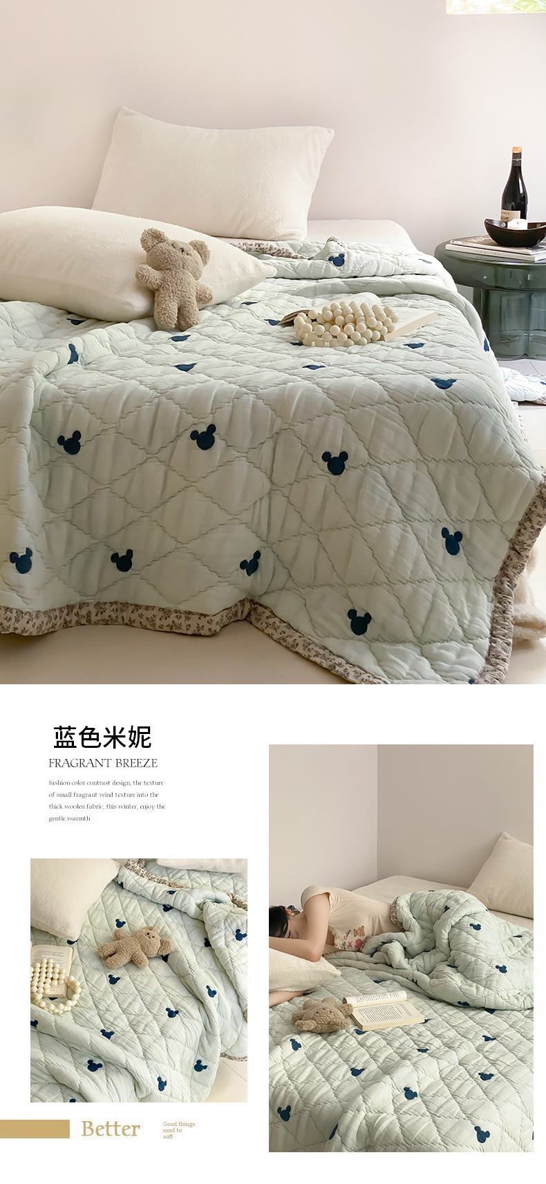 商品名称:麻依 2025新款韩国泡芙被十层全棉纱布被子被芯 蓝色米奇
