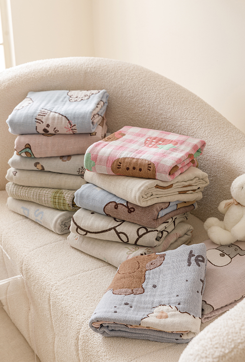 (总)麻依 2025新款四层全棉纱布毯盖毯毛巾被子被芯,白小兔,布偶熊,格子熊,考拉宝宝,咩咩羊,平安果,软萌小狗,甜点熊,甜甜圈,小猫崽,熊仔,总动员,KT日记