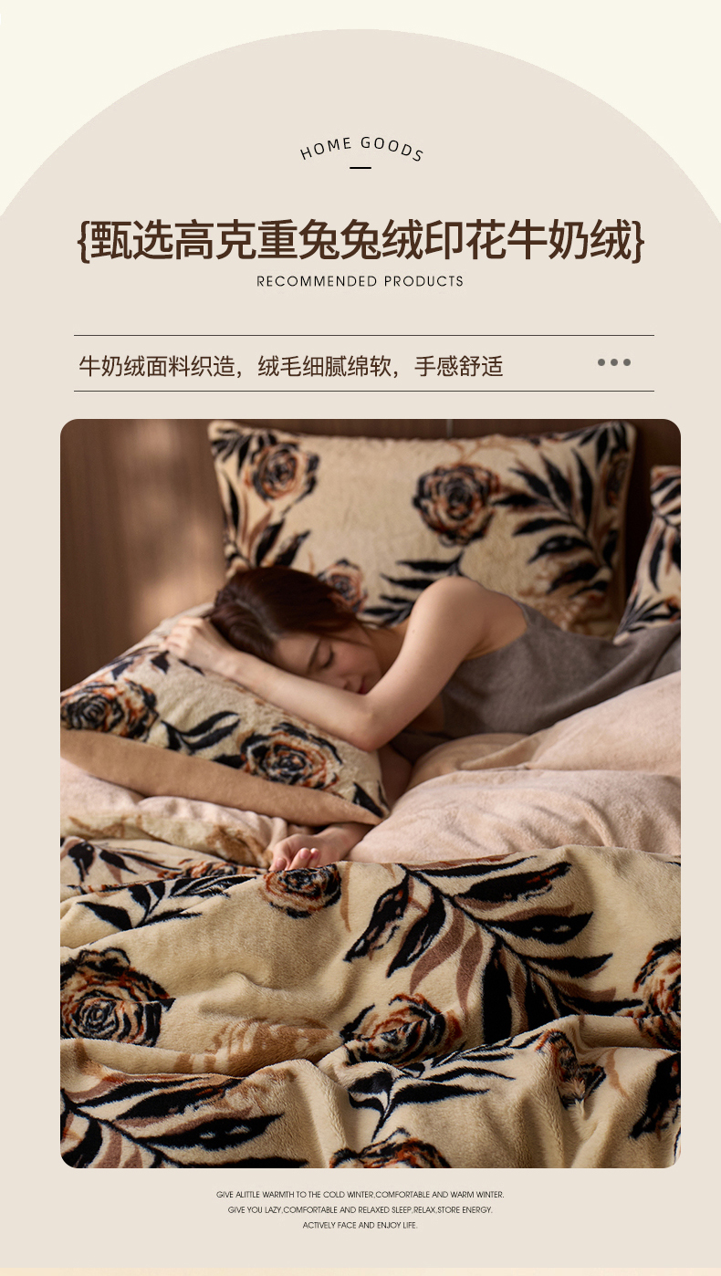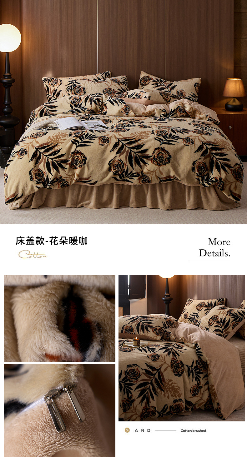 当前位置: 91家纺网 > 商品网购 > 床品套件 > 四件套 > 牛奶绒四件套 > 眠博士 2025新款加厚兔兔绒印花牛奶绒床盖四件套 床盖款-花朵暖咖