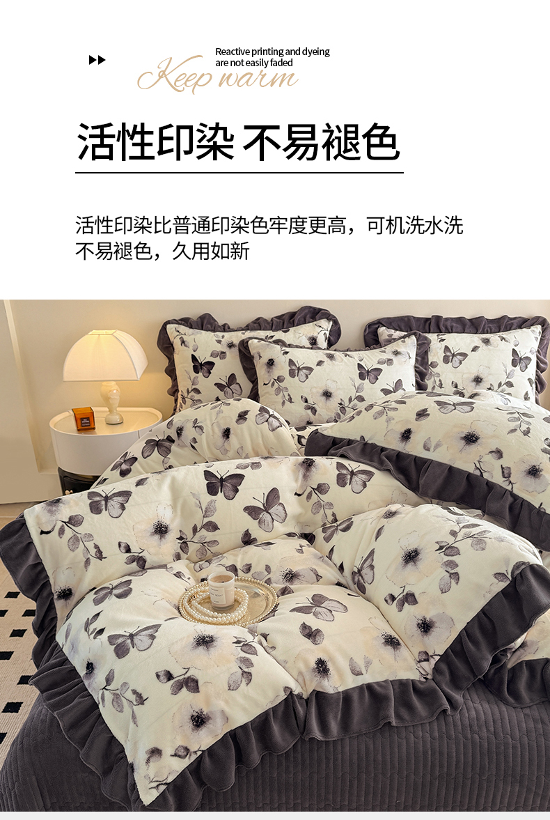当前位置: 91家纺网 > 商品网购 > 床品套件 > 四件套 > 牛奶绒四件套 > 慕晨 2025新款花边牛奶绒床盖四件套 叶知秋
