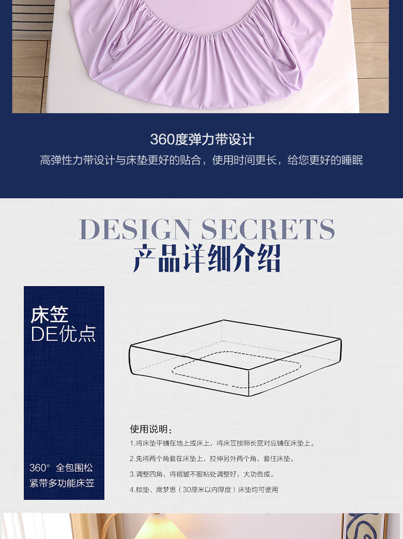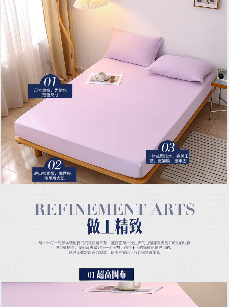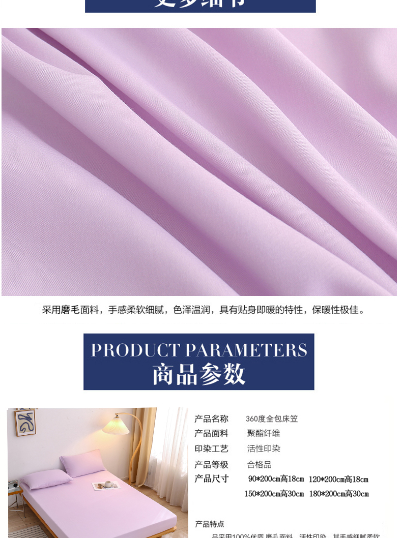 商品名称:啊雅家居 2025(外贸)新款简约单人床笠双人床笠水洗磨毛床笠跨境电商 紫色