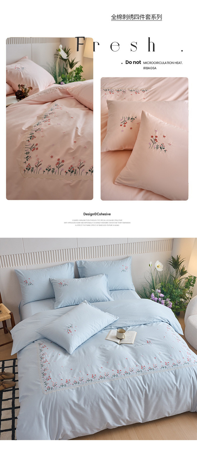 商品名称:悦然毛巾被 2025新款全棉纯棉斜纹毛巾绣四件套 花样年华轻奢灰