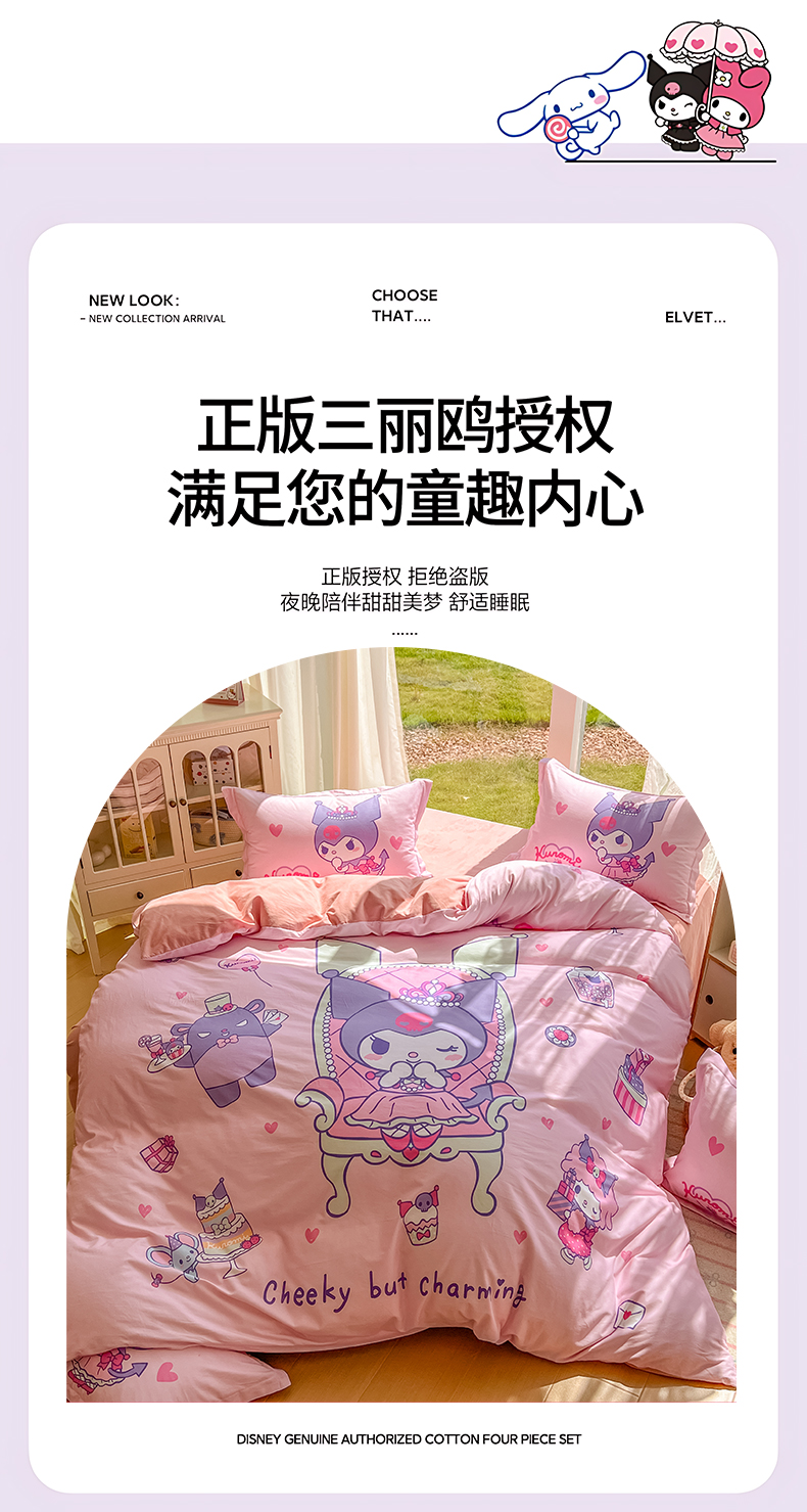 (总)浩诚 2026新款专版三丽鸥hellokitty库洛米正版授权大版全棉纯棉四件套,爱心甜点,比心库洛米,草莓KT,打工美乐蒂,飞行员,花花美乐蒂,花园派对,浪漫美乐蒂,美美KT,三丽鸥家族,甜甜库洛米,甜心宝贝,甜心库洛米,条纹玉桂狗,晚安库洛米,旋转玉桂狗,音乐KT,樱桃库洛米,云朵天使,云朵玉桂狗