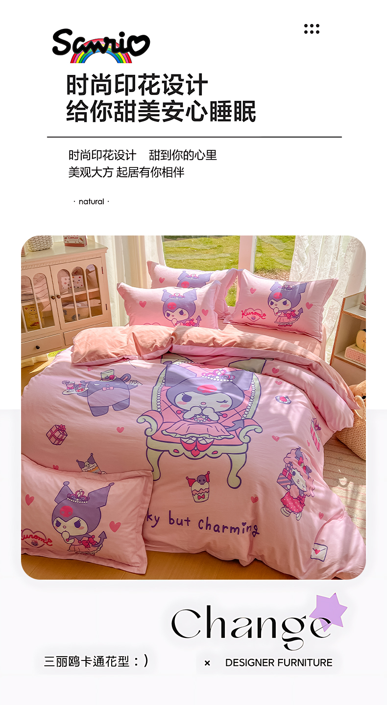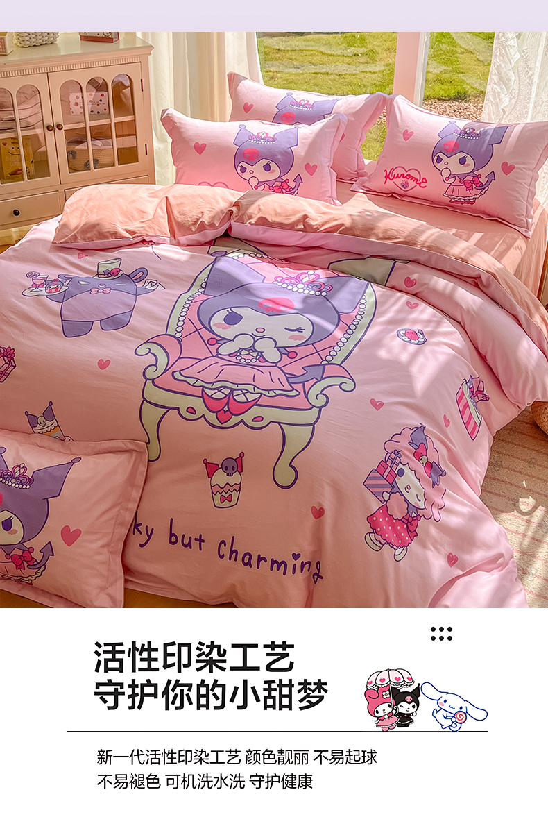 浩诚 2025新款三丽鸥专版全棉磨毛纯棉四件套 女王库洛米