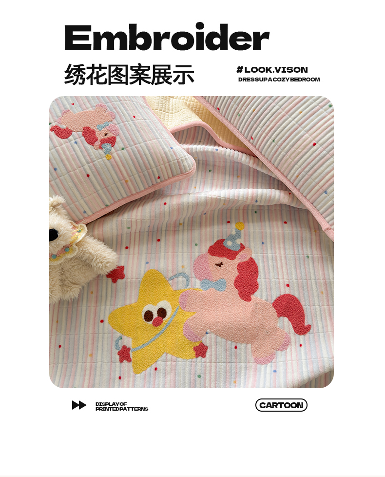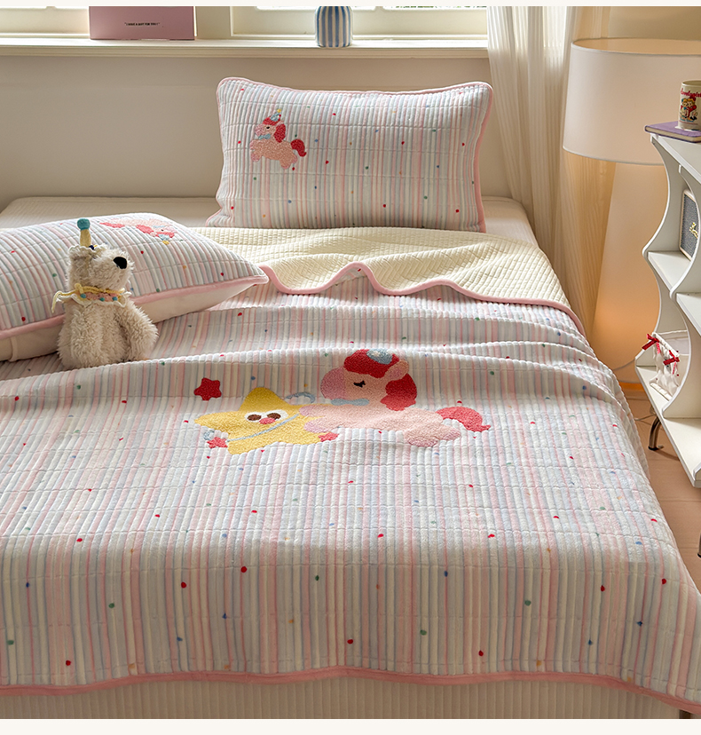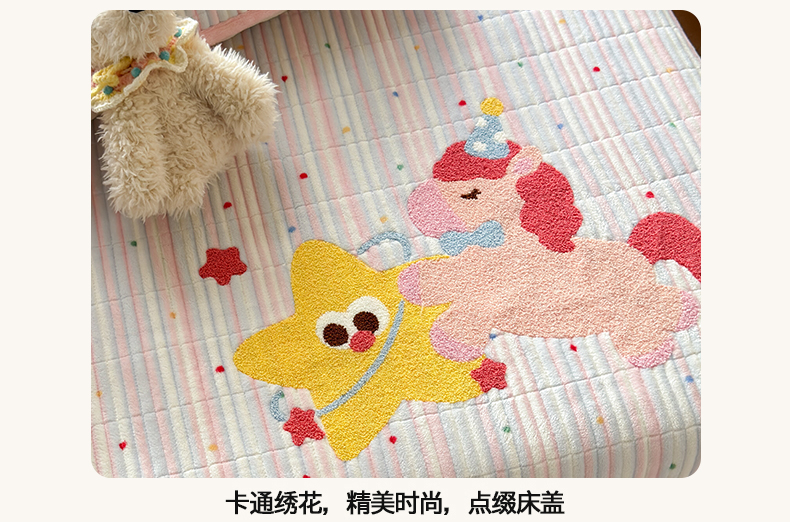 商品名称:寐居家纺 2025新款A类牛奶绒毛巾绣床盖 甜心小骑