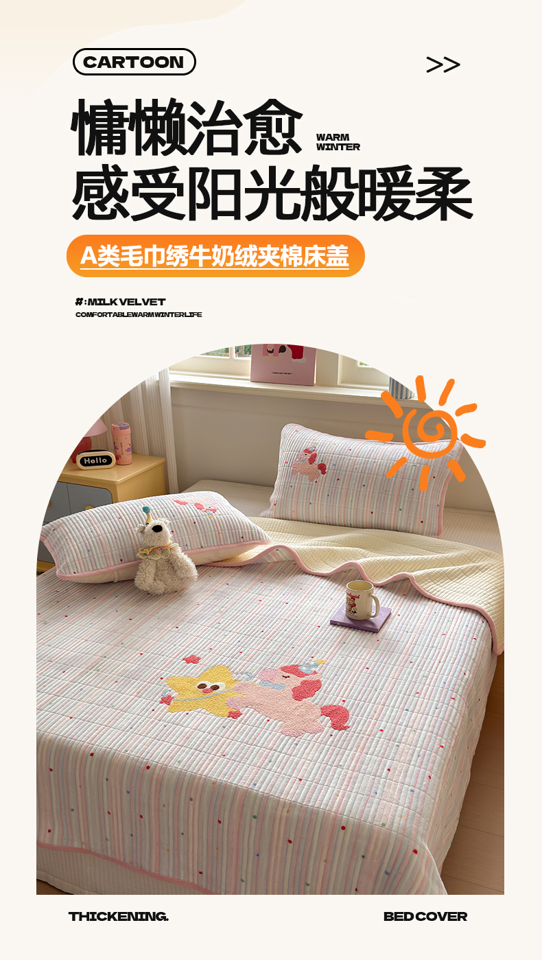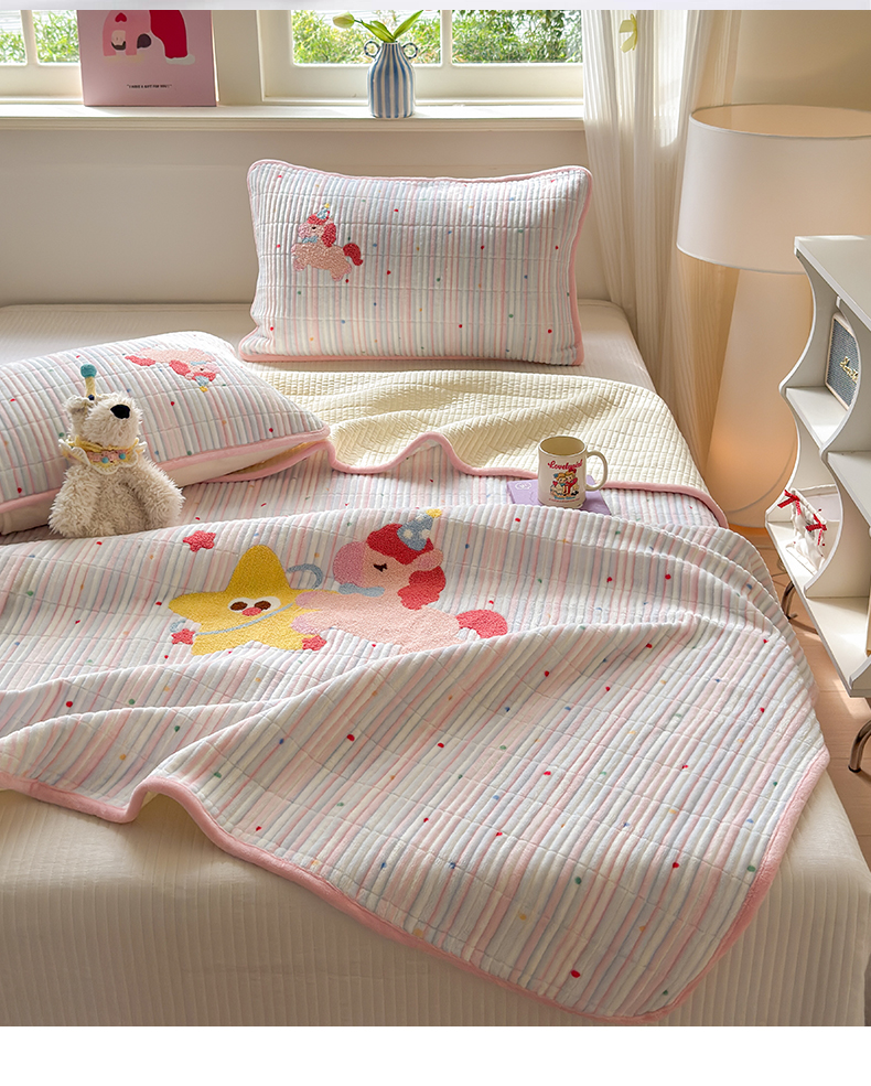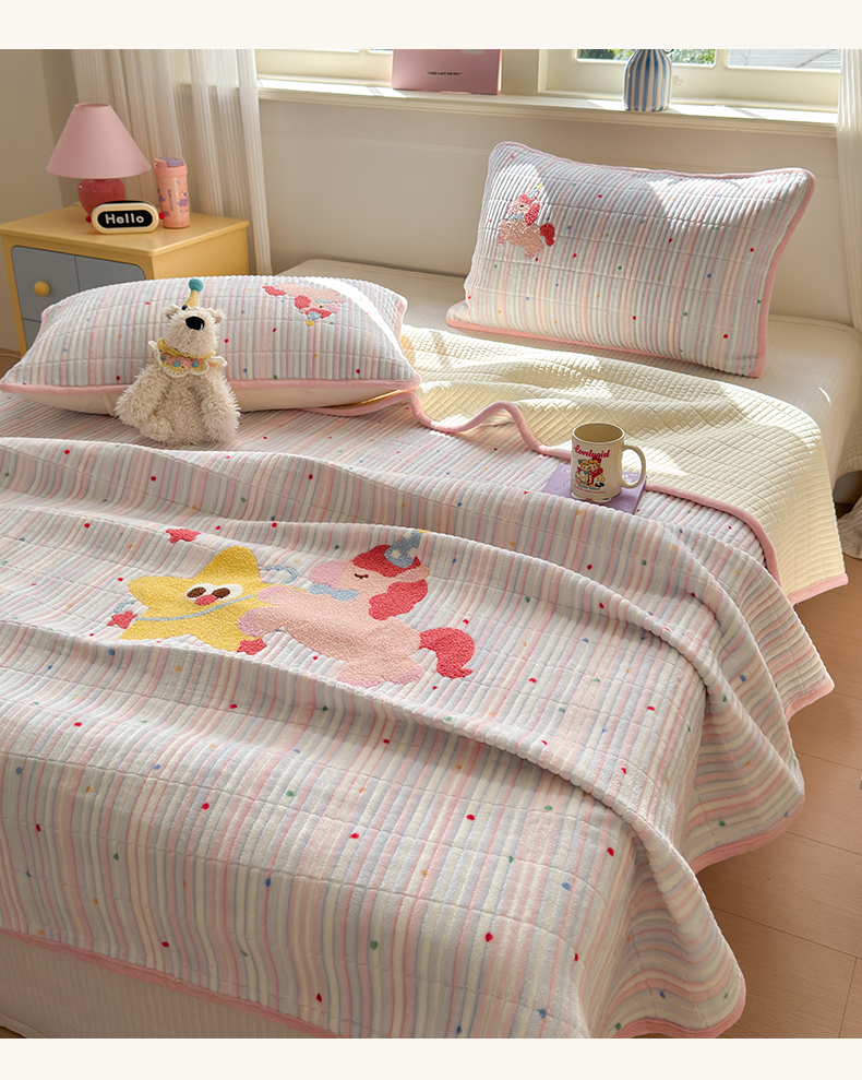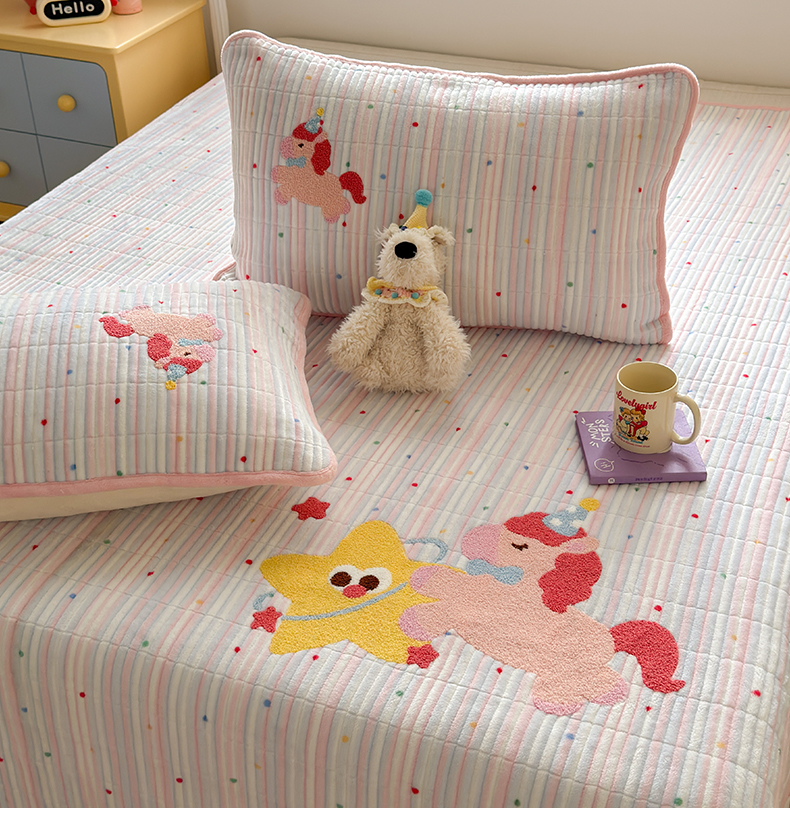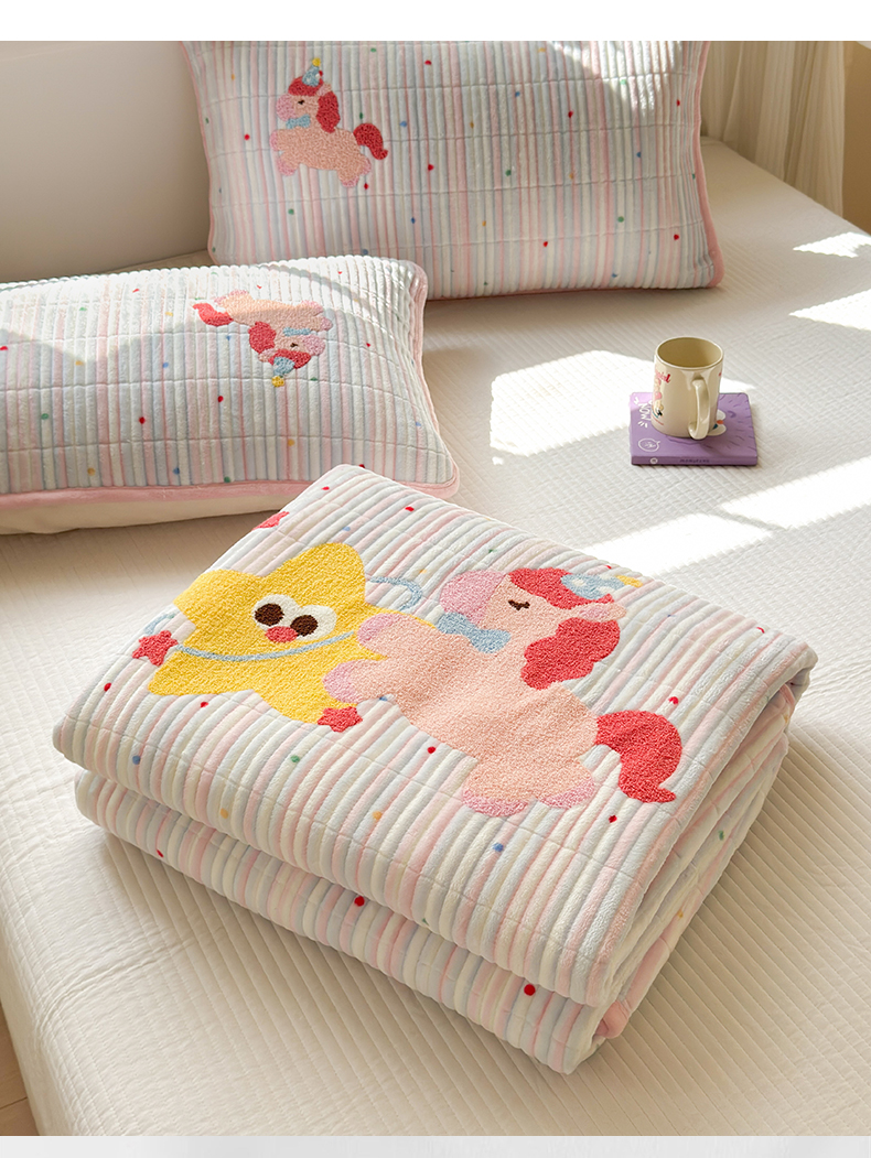 寐居家纺 2025新款A类牛奶绒毛巾绣床盖 甜心小骑
