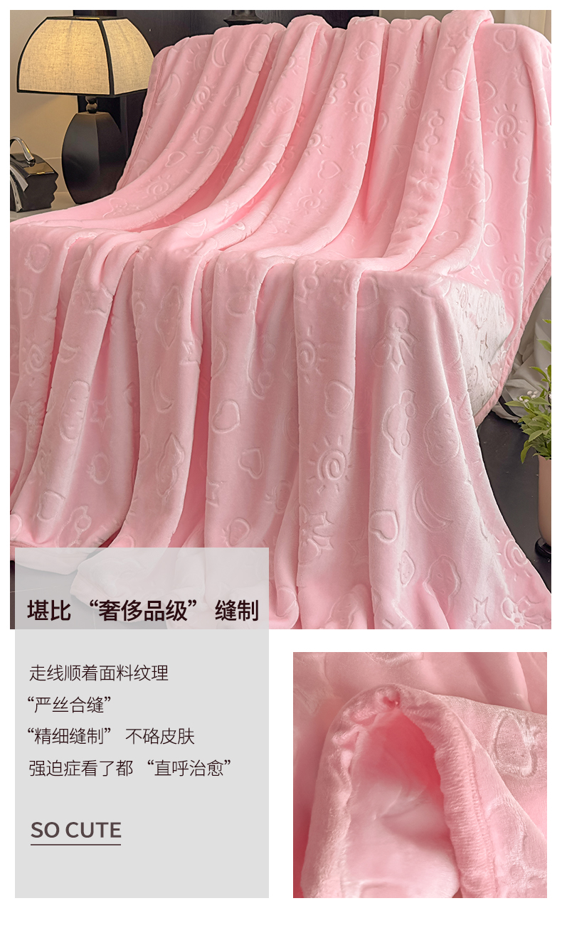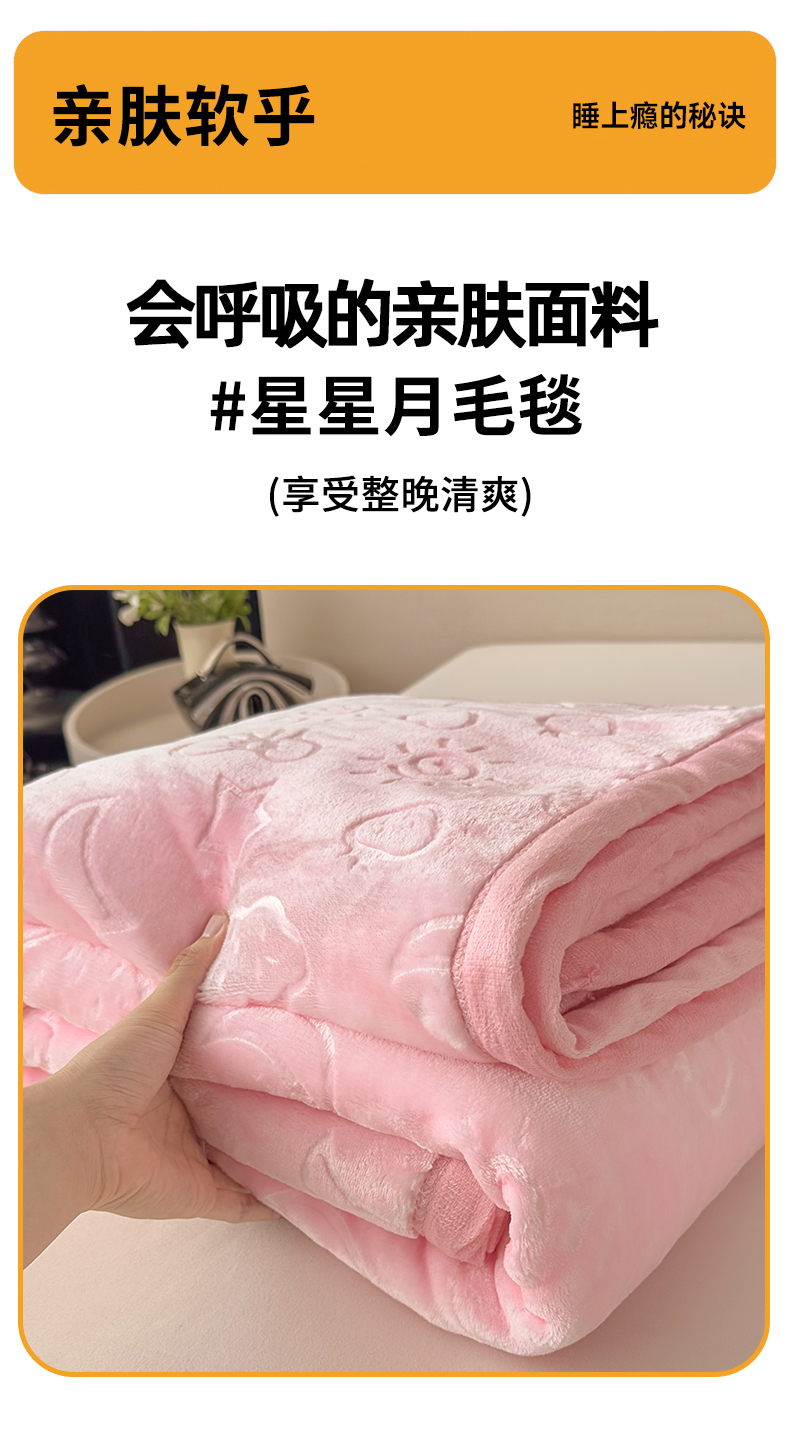 商品名称:悦织湾家纺 2025新款加厚星星月岁云毯轻奢时尚毛毯盖毯四季毯被子跨境外贸出口直播热销款 星星月岁云毯悠悠粉