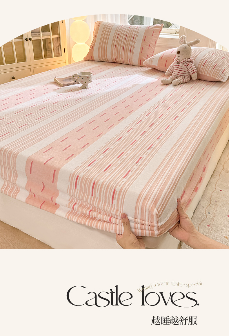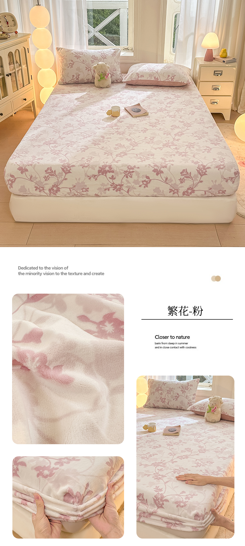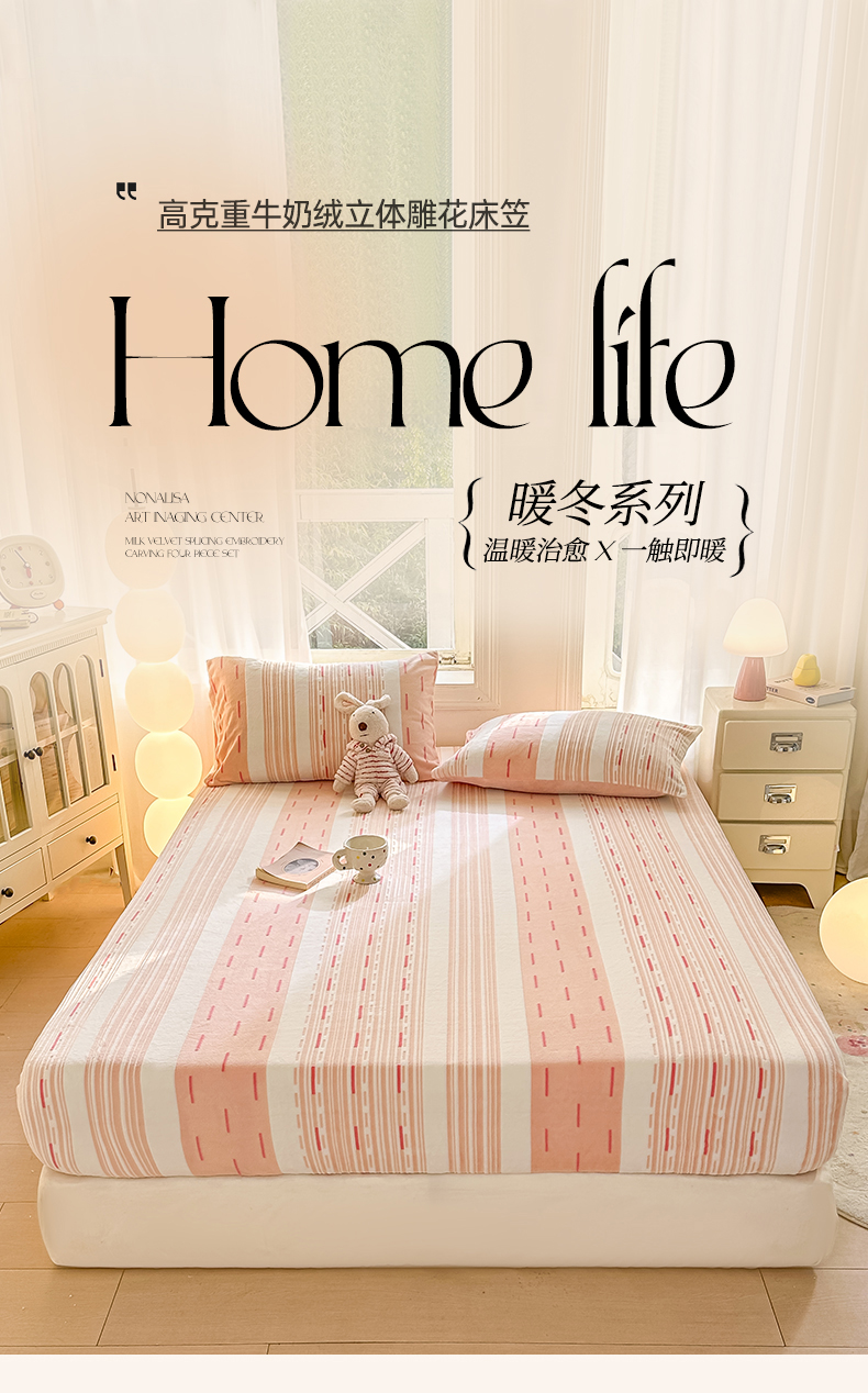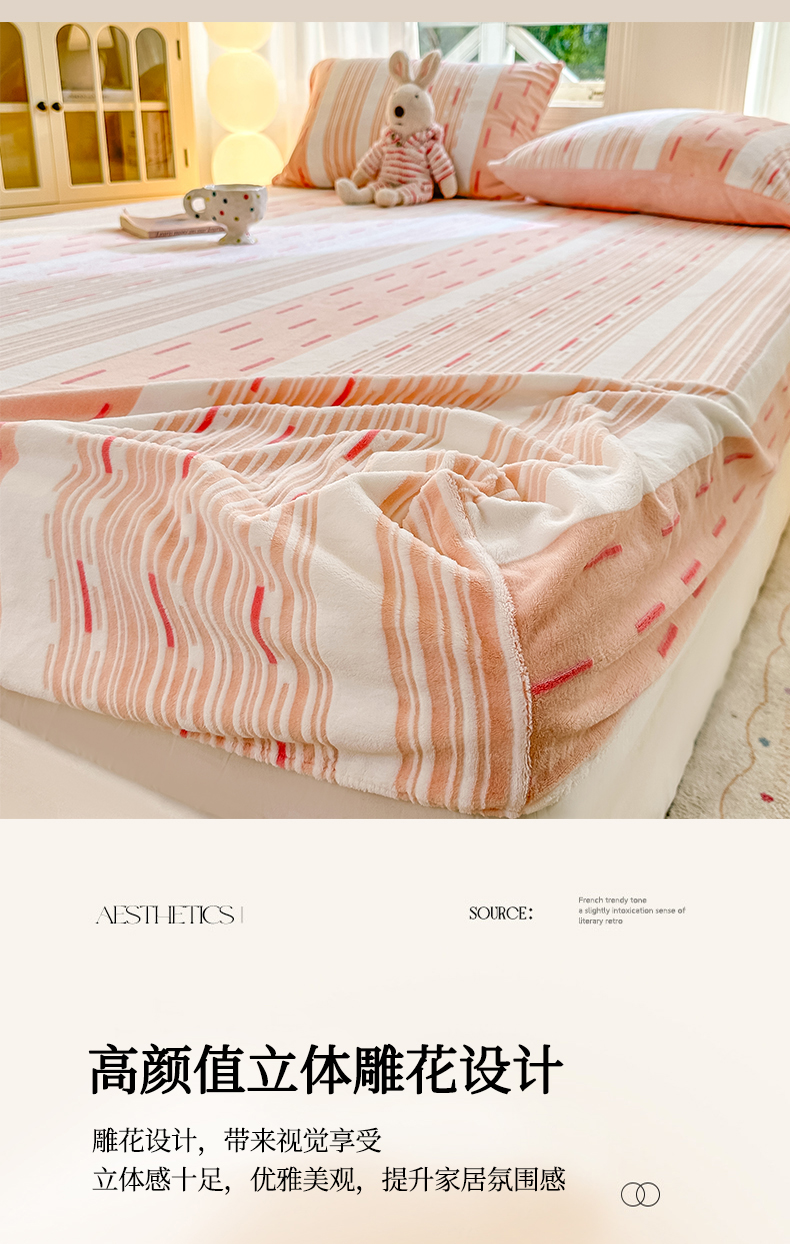 • 91家纺网 家纺一手货源 找家纺 灰鲸 2025新款立体雕花牛奶绒床笠 速写-粉