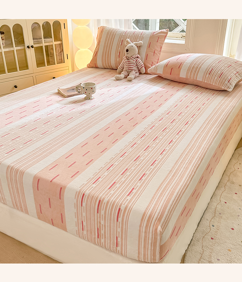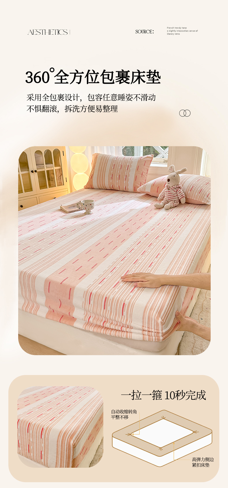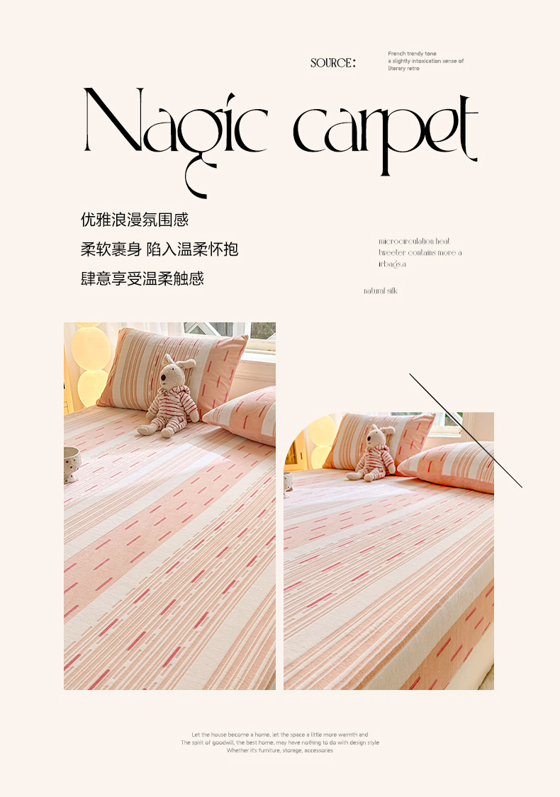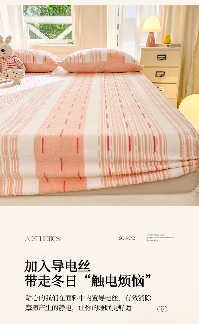 • 91家纺网 家纺一手货源 找家纺 灰鲸 2025新款立体雕花牛奶绒床笠 速写-粉