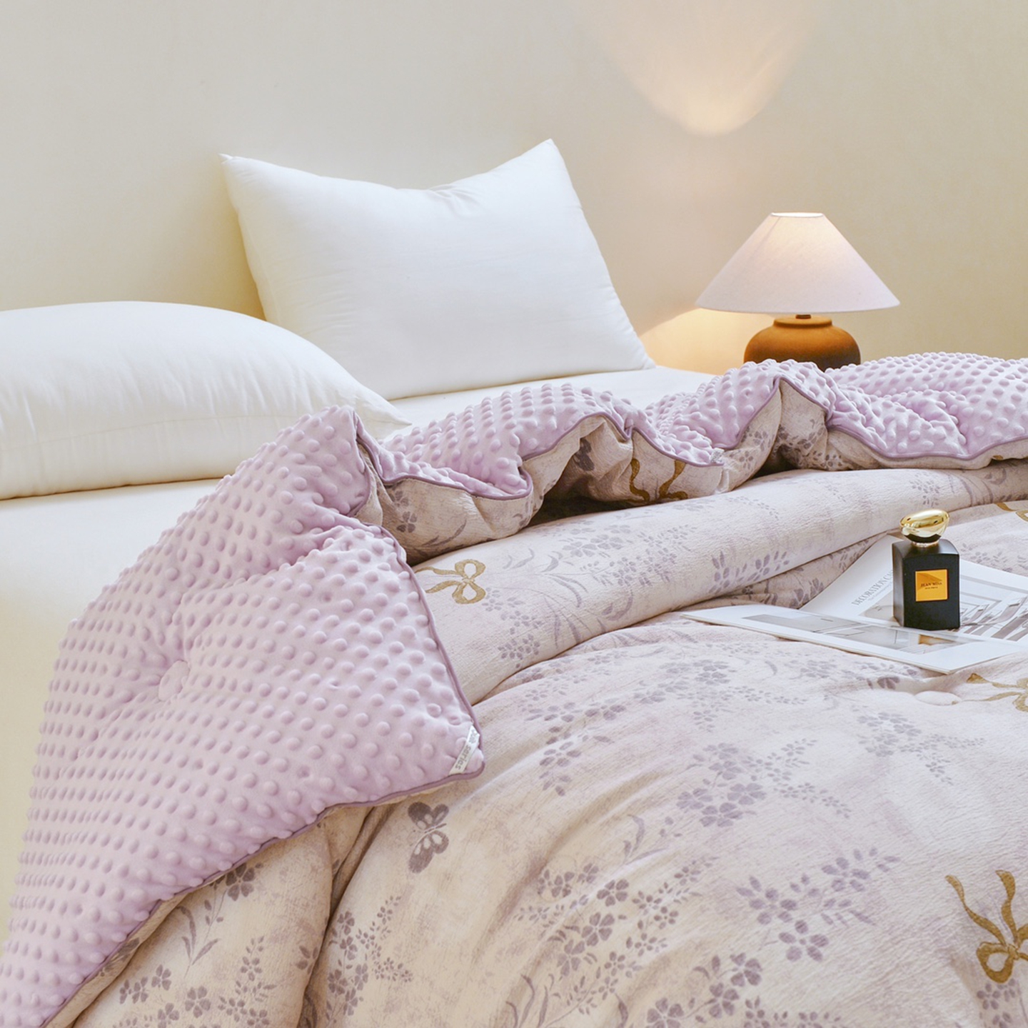 • 91家纺网 家纺一手货源 找家纺 玖琳家纺 2025新款特价双层纱豆豆被全尺寸 花姿豆沙