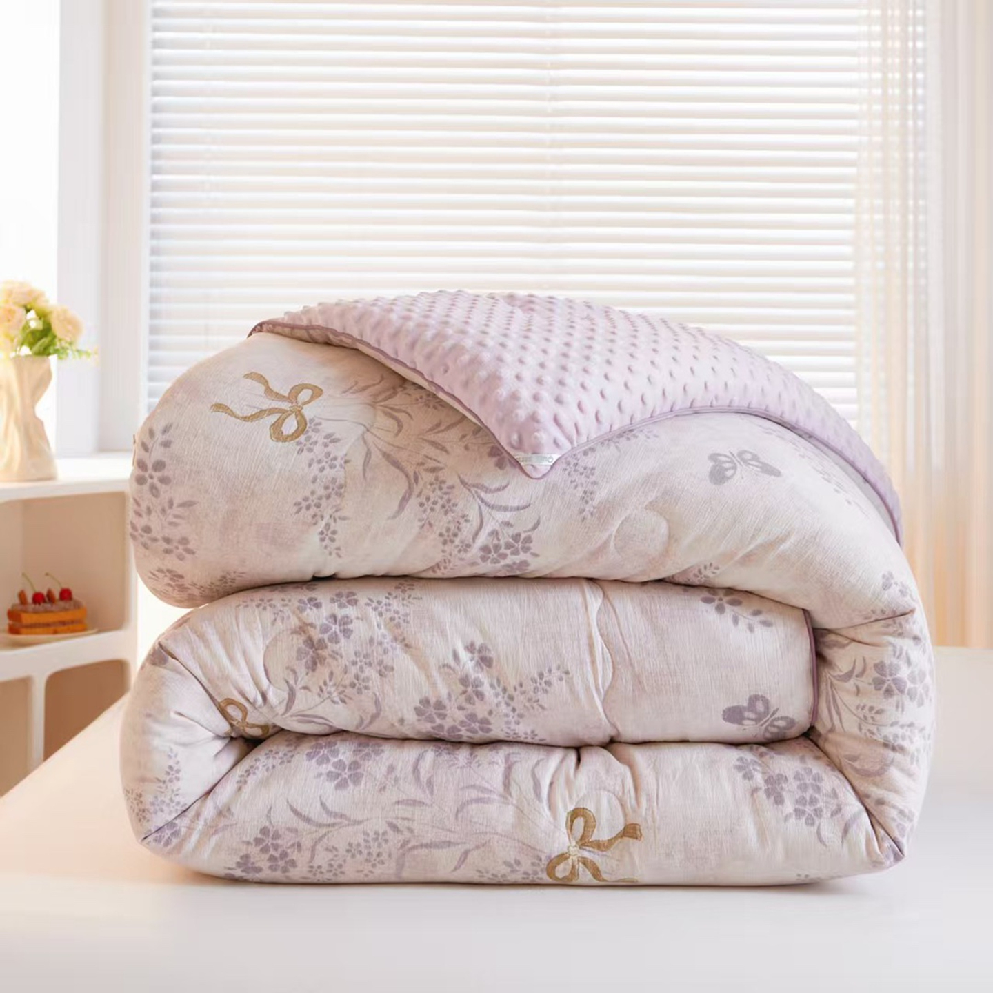 玖琳家纺 2025新款特价双层纱豆豆被全尺寸 花姿豆沙