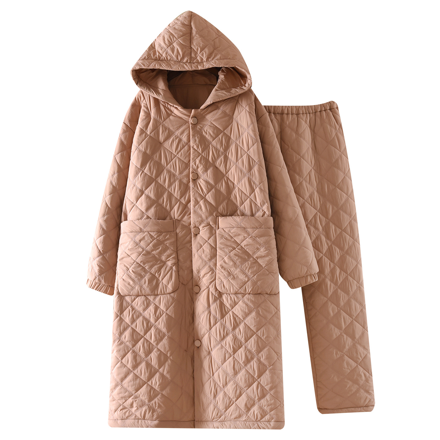 商品名称:洛兰沙家居馆 2025新款只代发新款防风防水情侣夹棉睡衣男冬季女三层加厚保暖冬天家居服睡袍套装 橘色