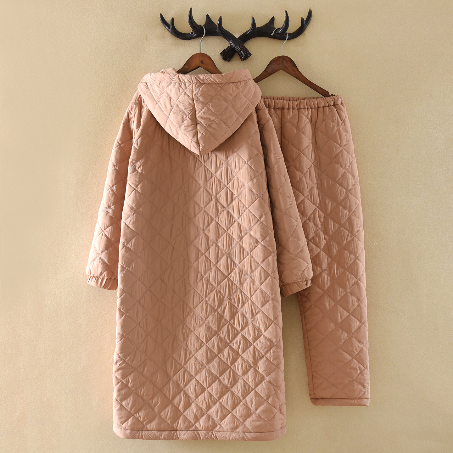 (总)洛兰沙家居馆 2024秋冬新款清新睡衣女三层夹棉玉兔绒加厚保暖两件套女士可外穿加绒家居服,粉色,黄色