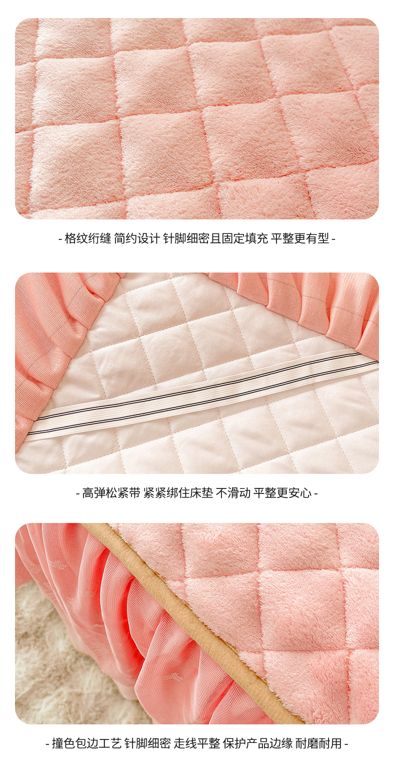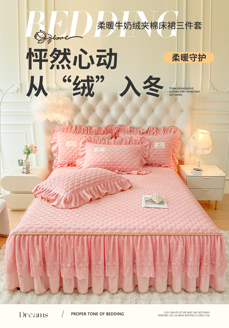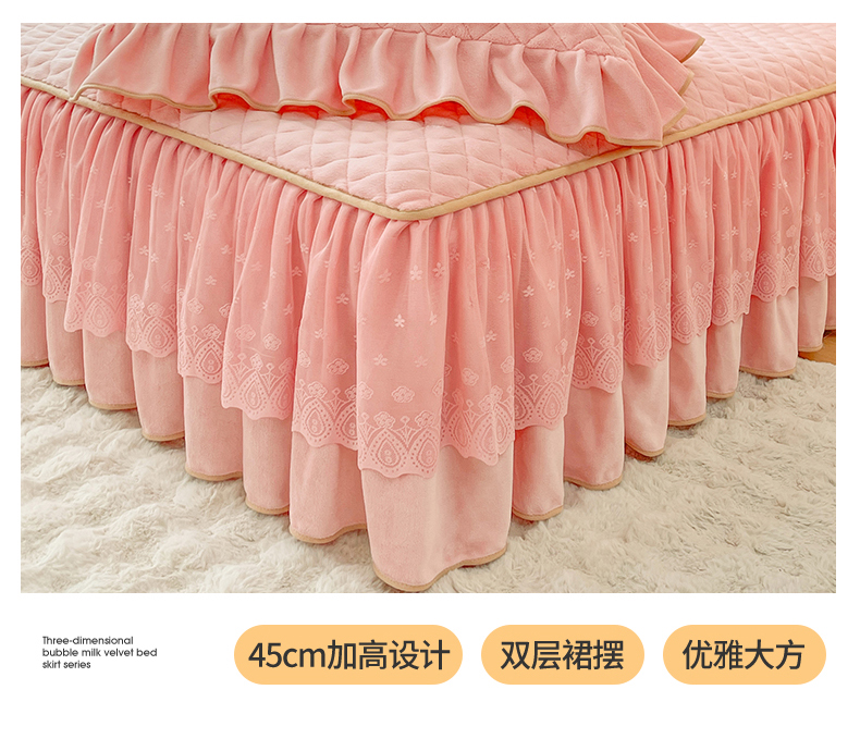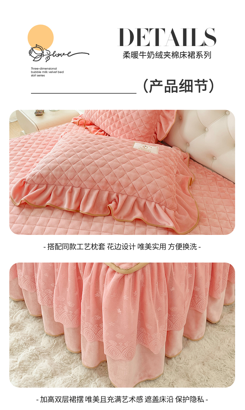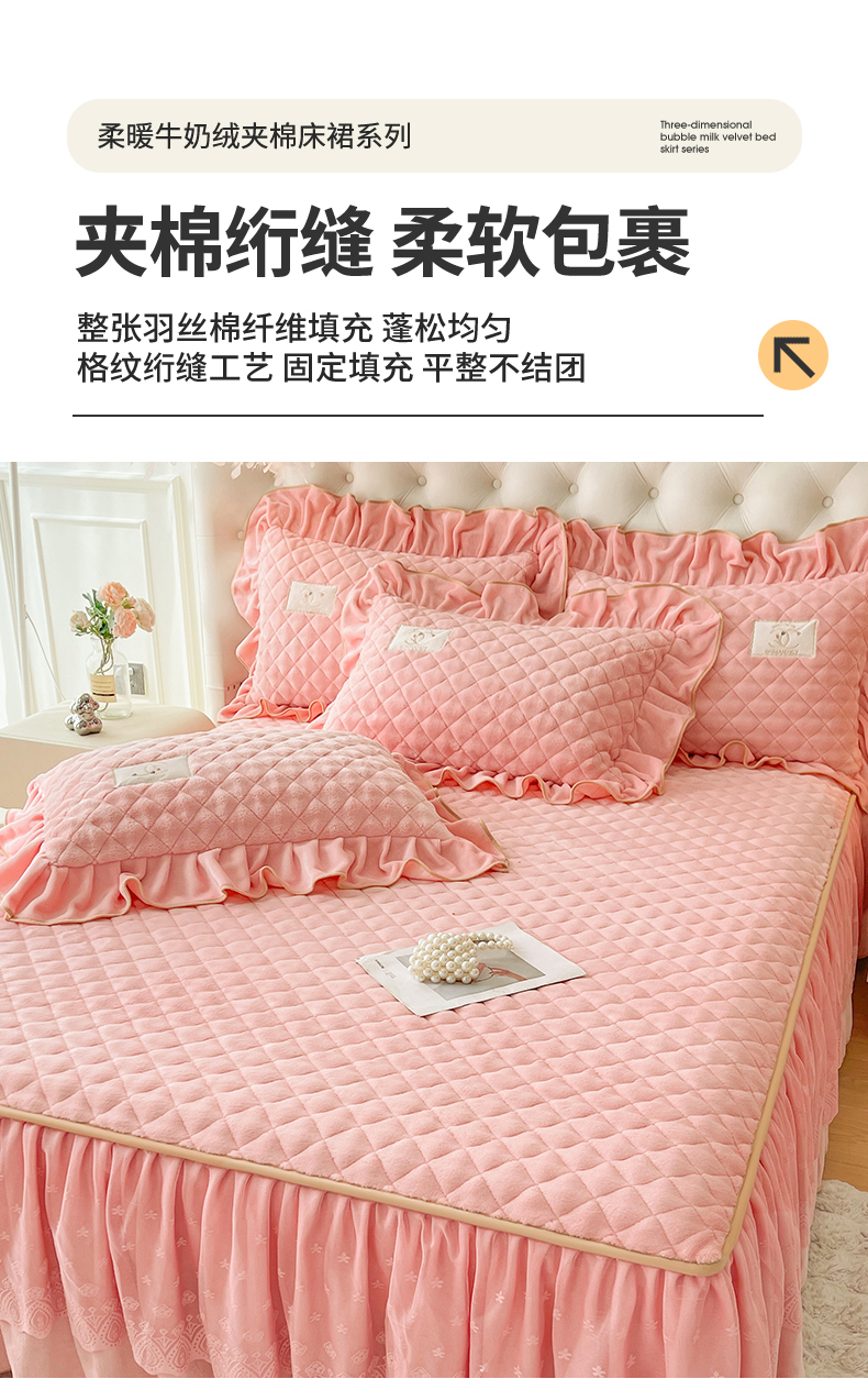 商品名称:情恒家纺 2025新款立体泡泡牛奶绒夹棉床裙三件套系列-浅语光年 浅语光年-香粉