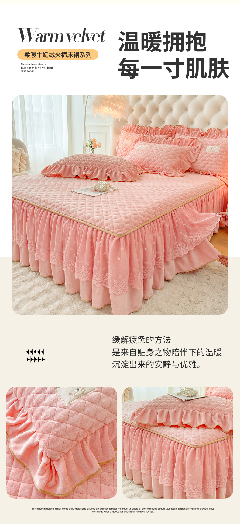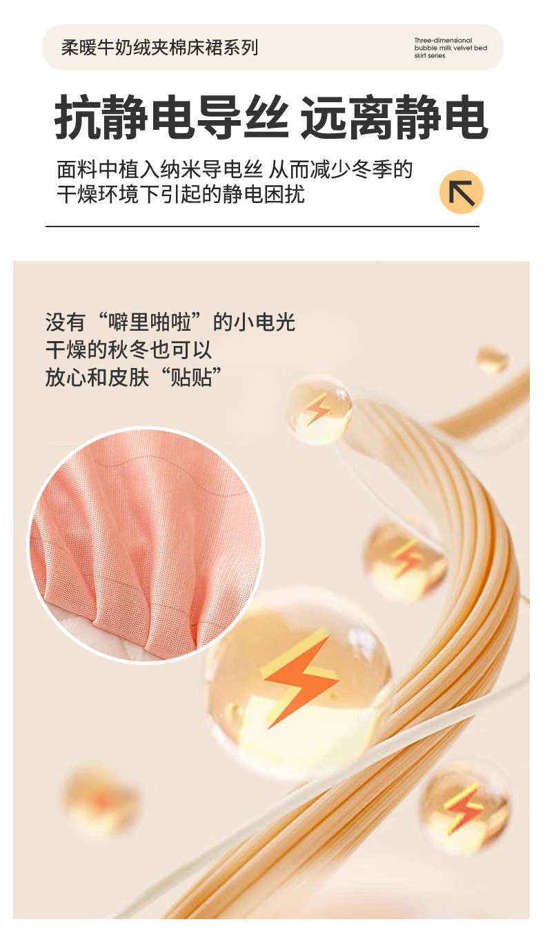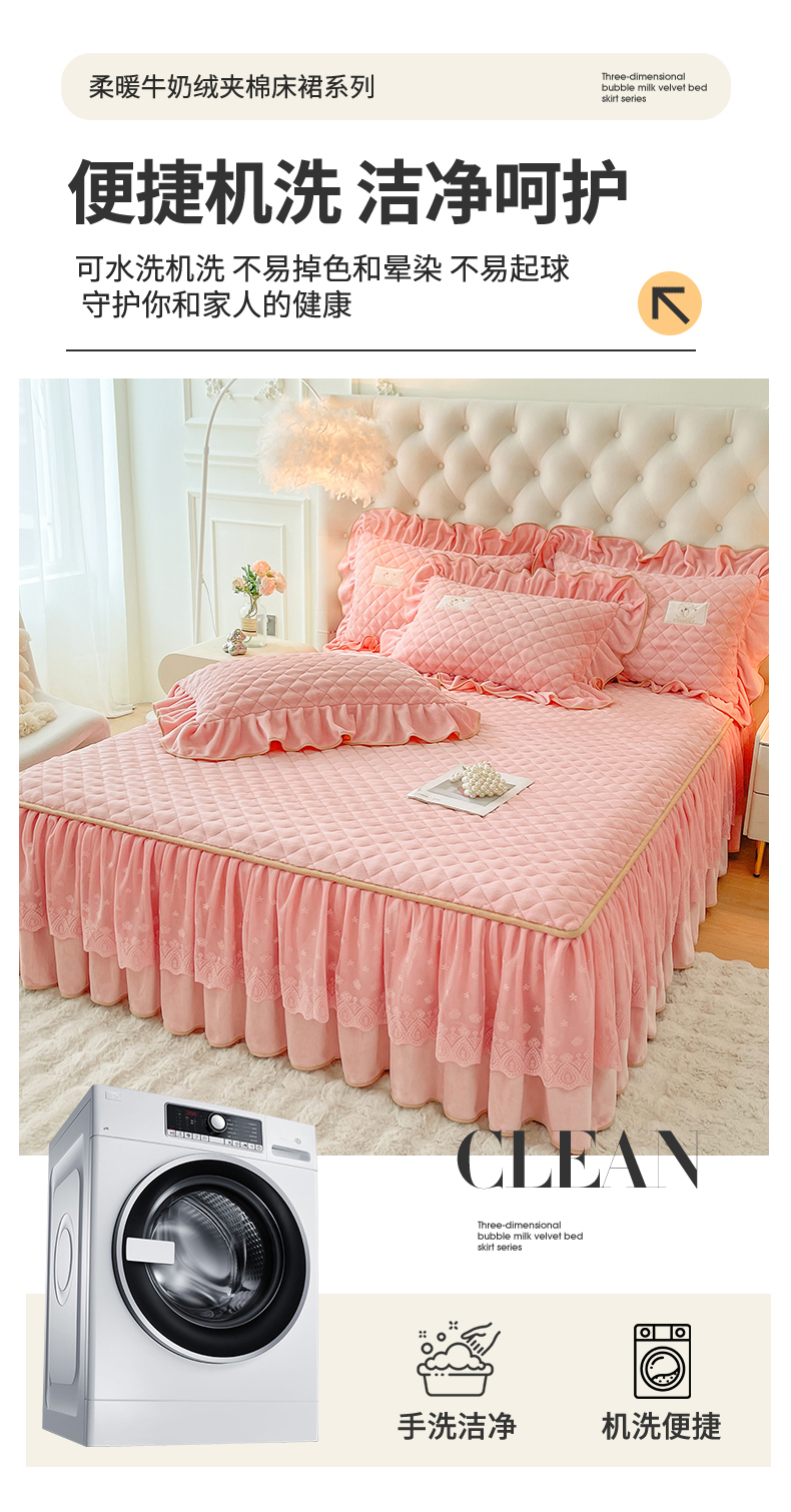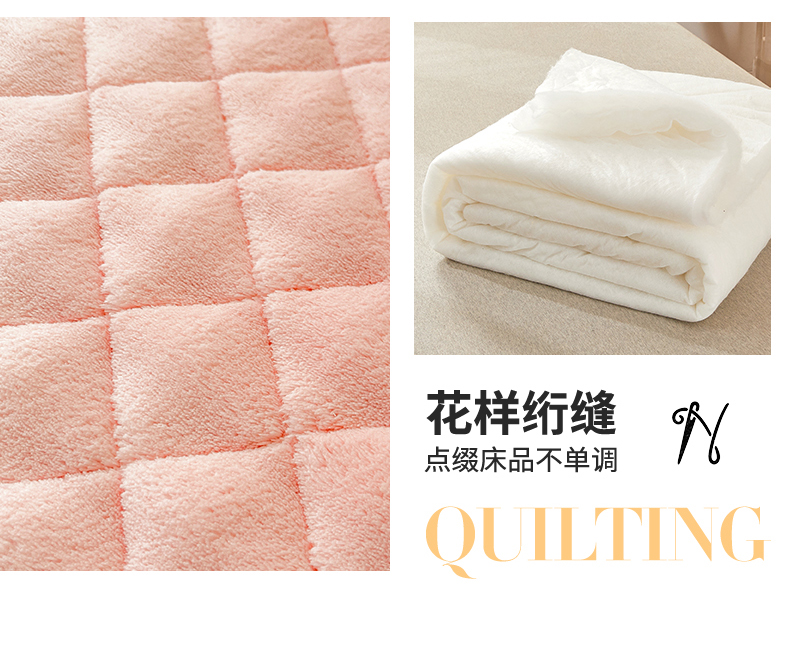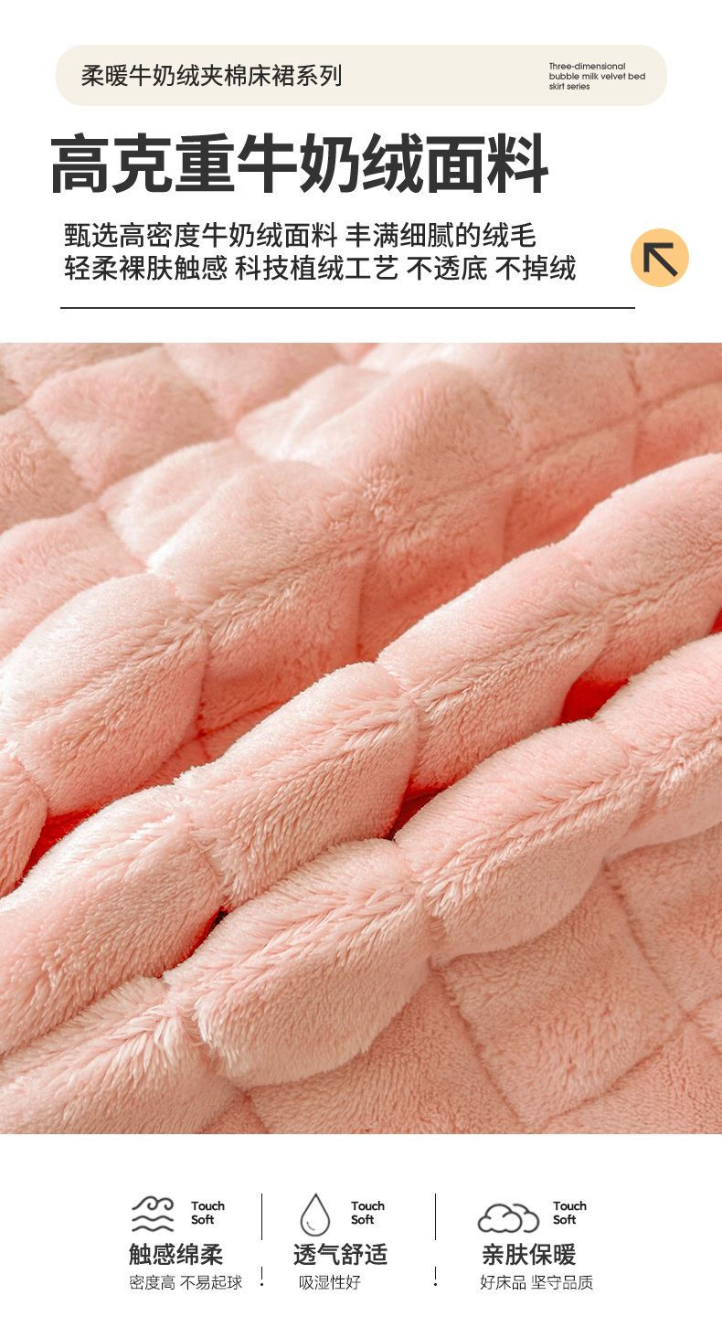 商品名称:情恒家纺 2025新款立体泡泡牛奶绒夹棉床裙三件套系列-浅语光年 浅语光年-香粉