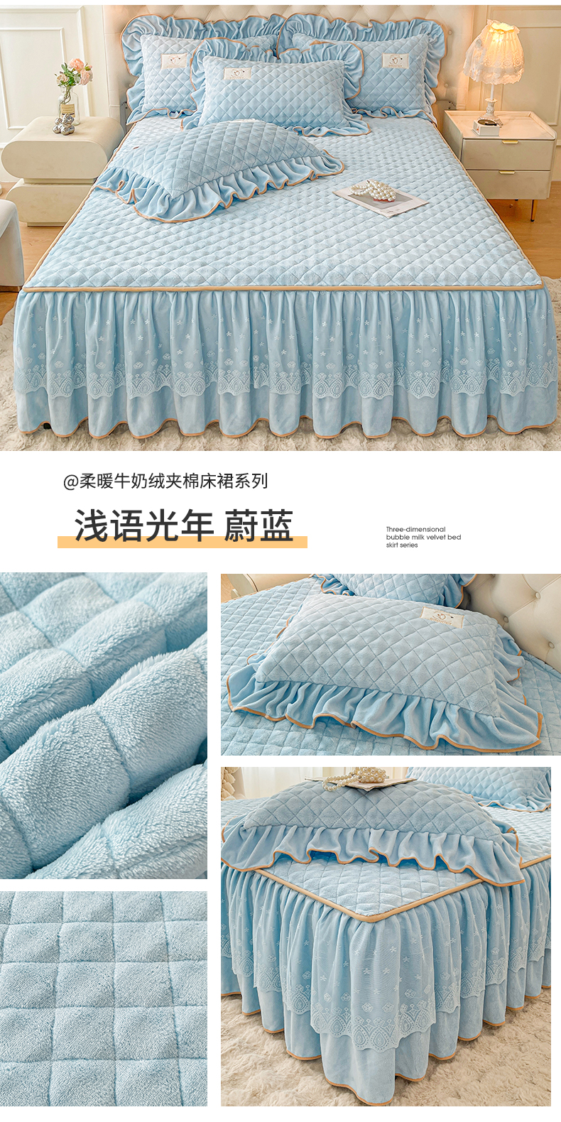 (总)情恒家纺 2025新款立体泡泡牛奶绒夹棉床裙三件套系列-浅语光年,浅语光年-豆沙,浅语光年-卡其,浅语光年-梦紫,浅语光年-水绿,浅语光年-蔚蓝,浅语光年-香粉,浅语光年-星灰