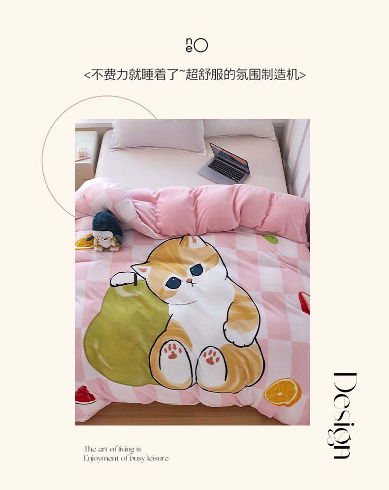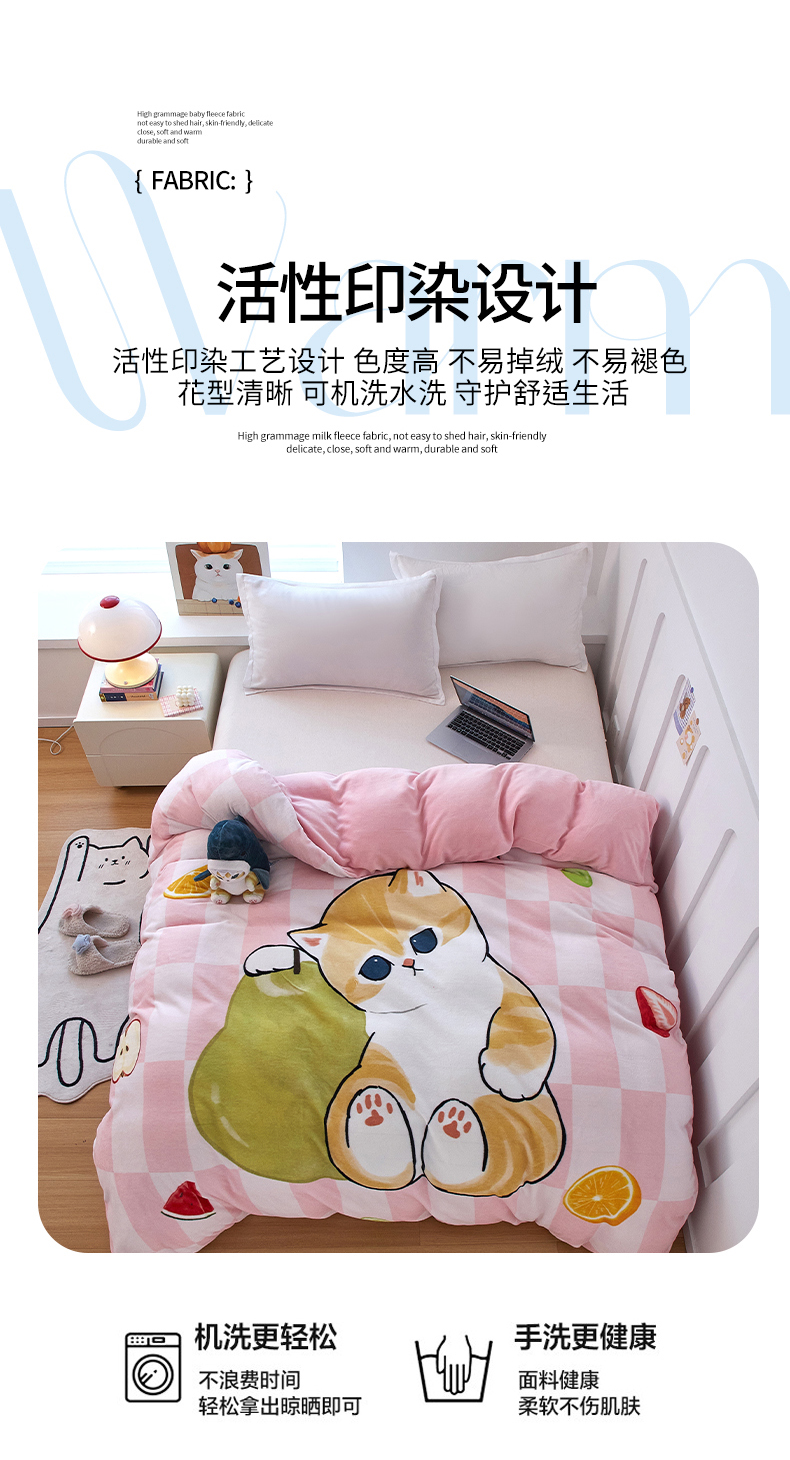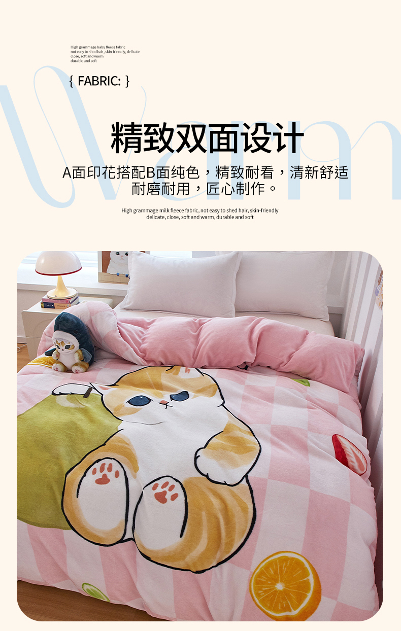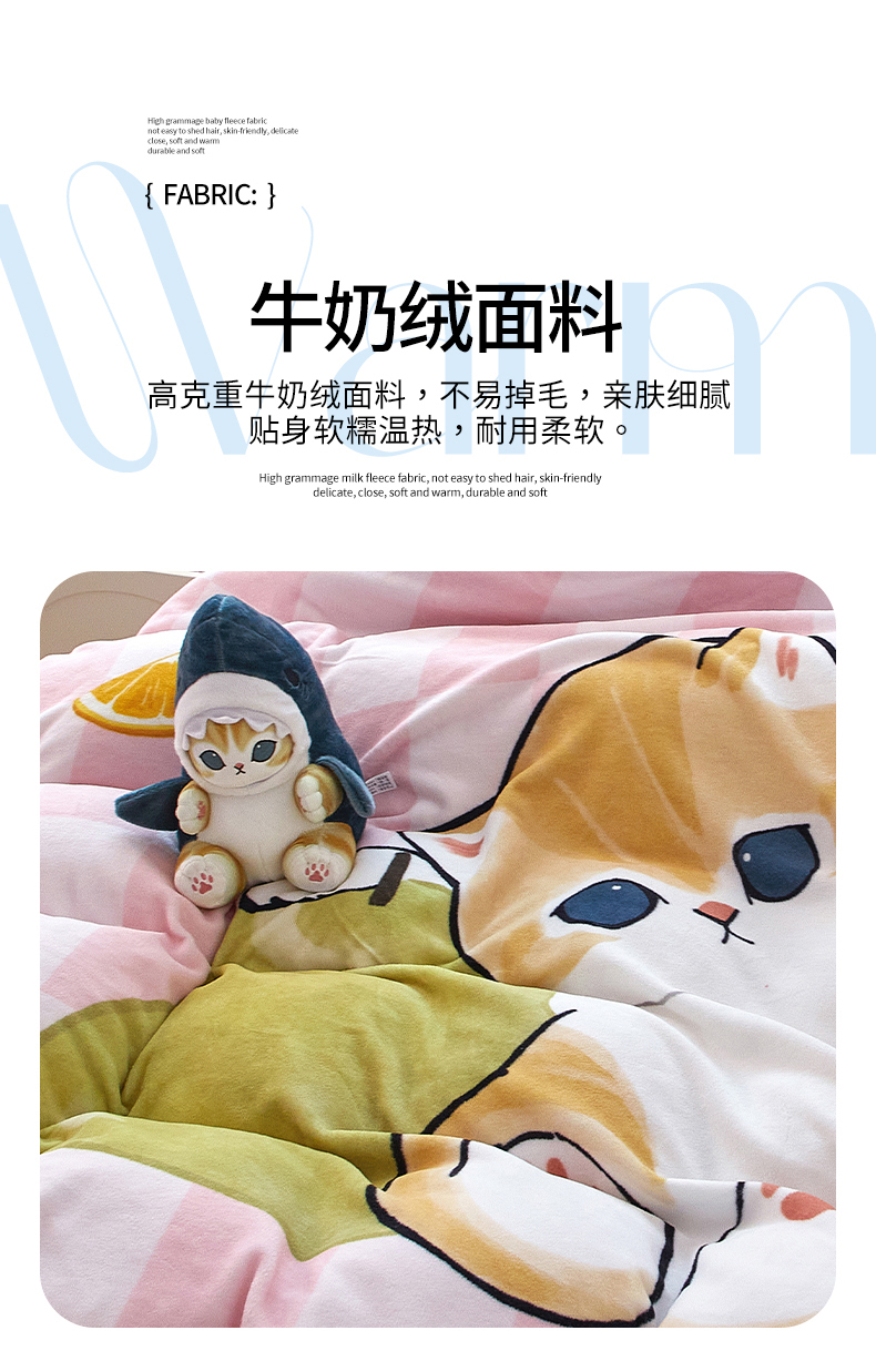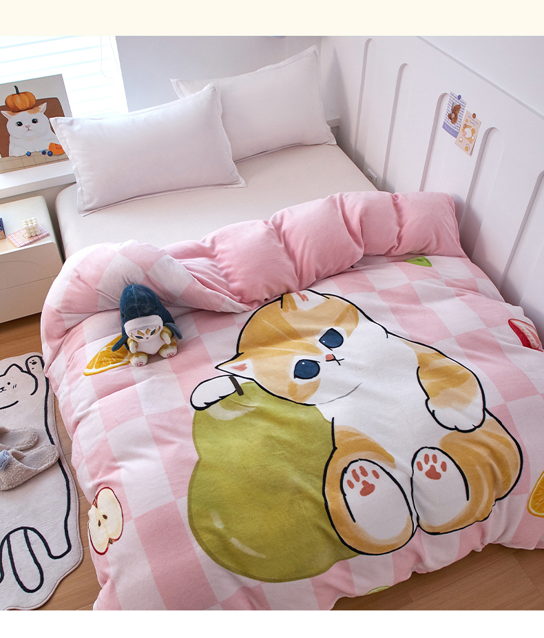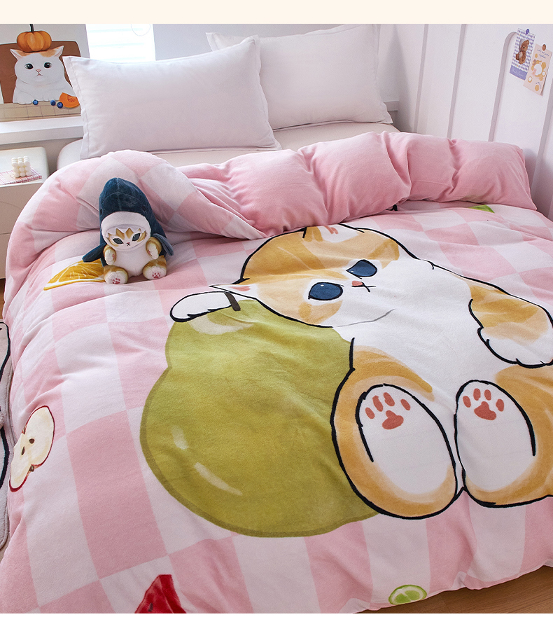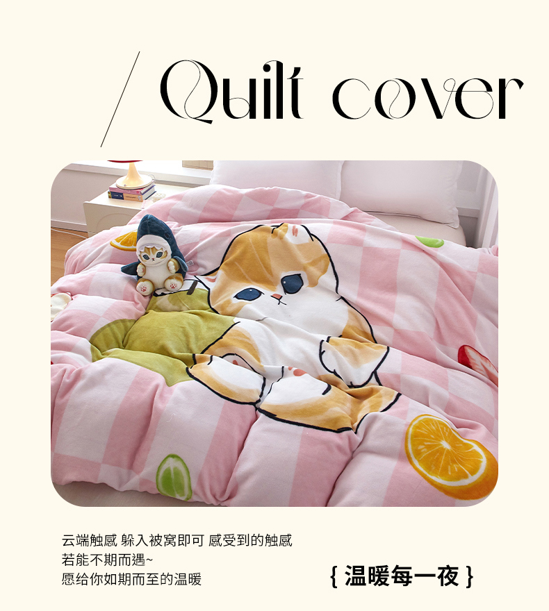 商品名称:蘭菲家纺 2025新款高克重牛奶绒正版鲨鱼猫系列单品被套 水果珊迪-猫福