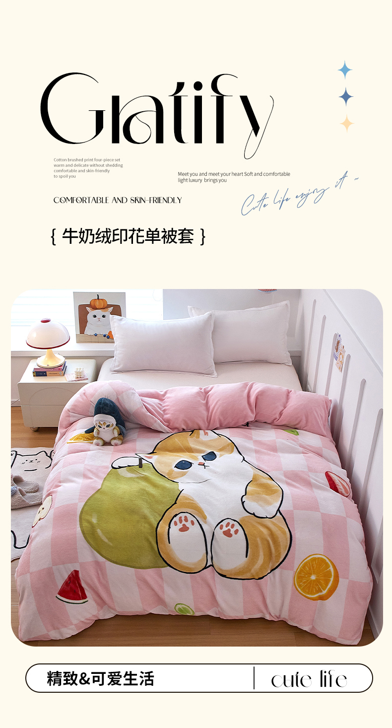 蘭菲家纺 2025新款高克重牛奶绒正版鲨鱼猫系列单品被套 水果珊迪-猫福