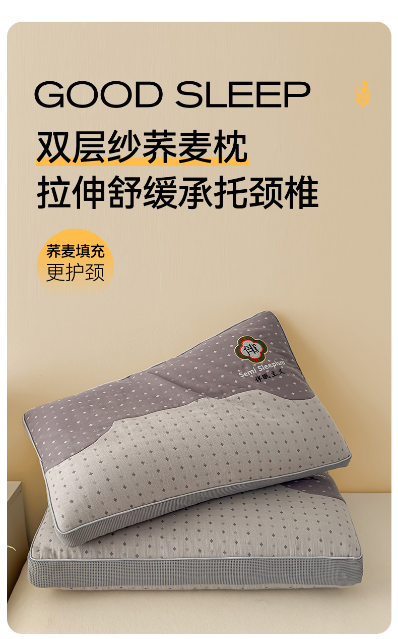 当前位置: 91家纺网 > 商品网购 > 枕头/枕芯/保健枕/颈椎枕 > 枕头枕芯 > 麦肯锡 2025新款伴眠主义双层纱纯荞麦枕 枕头枕芯 灰色
