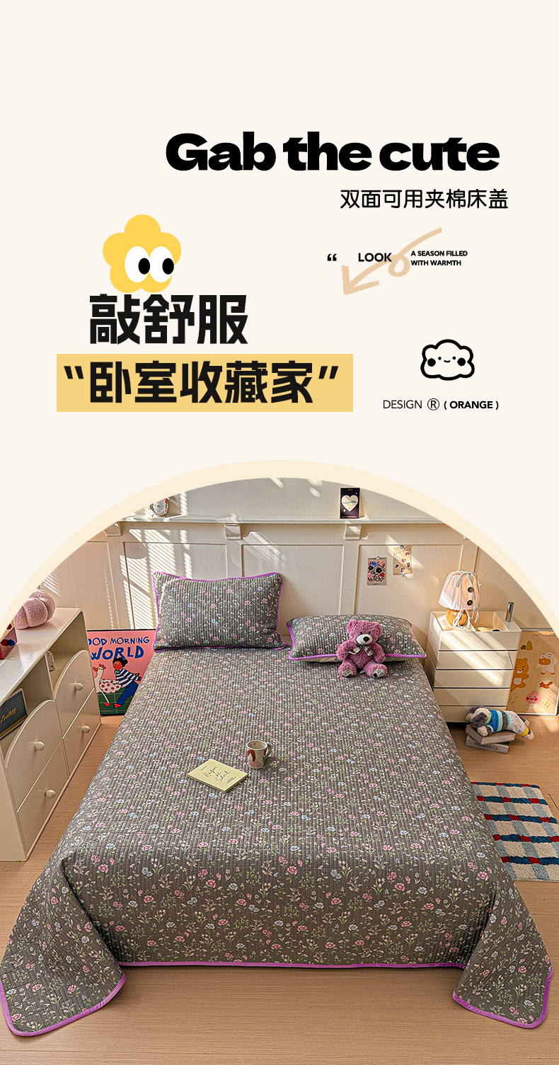 橙子家居 2025新款棉加绒床盖床盖单件床盖单品床盖三件套夹层水洗棉花跑量款现货 花间色