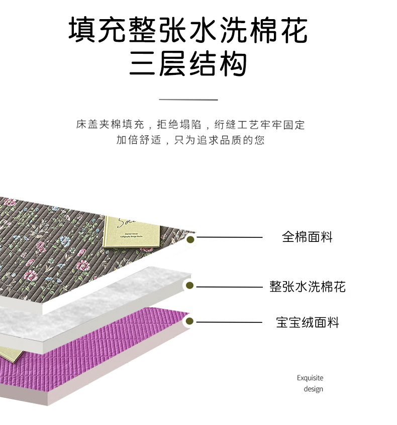商品名称:橙子家居 2025新款棉加绒床盖床盖单件床盖单品床盖三件套夹层水洗棉花跑量款现货 花间色