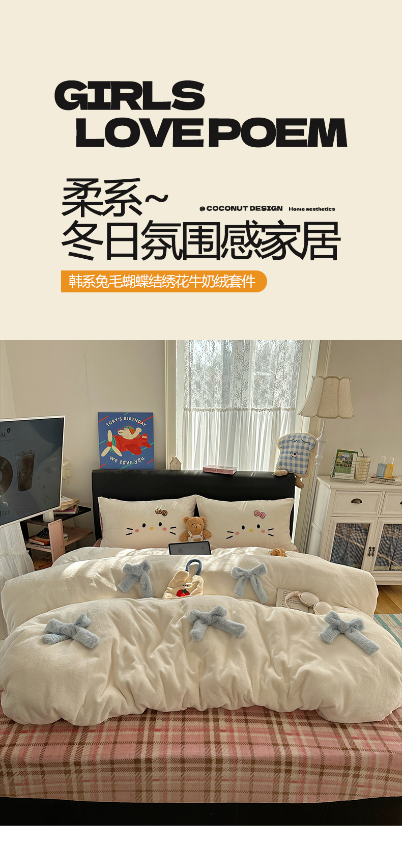 当前位置: 91家纺网 > 商品网购 > 床品套件 > 四件套 > 牛奶绒四件套 > 顾里家纺 2025新款兔毛蝴蝶结喵酱牛奶绒四件套 蝴蝶结猫咪咖