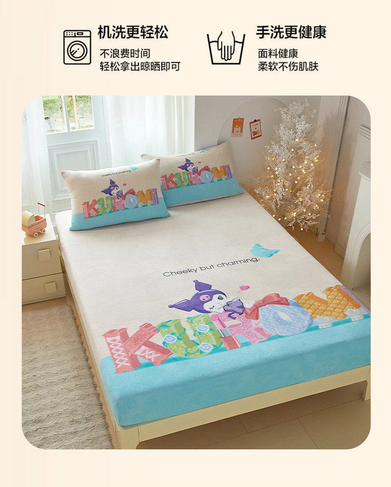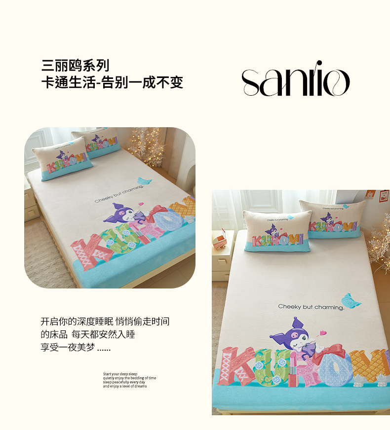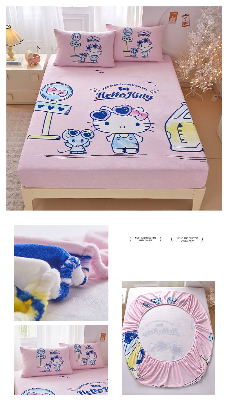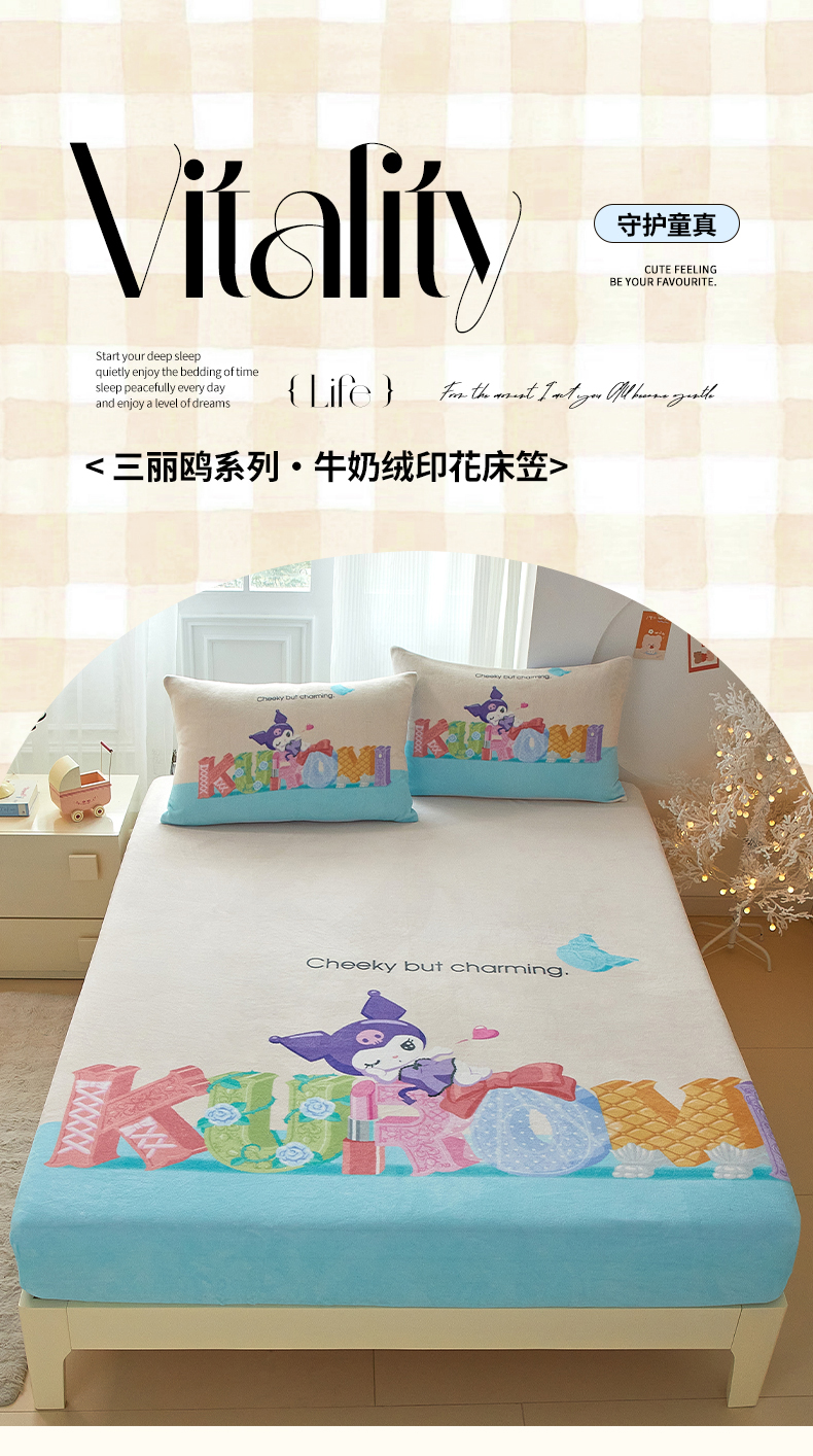 蘭菲家纺 2025新款三丽欧牛奶绒套件系列单品床笠 快乐小库