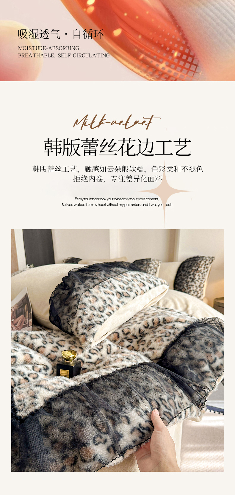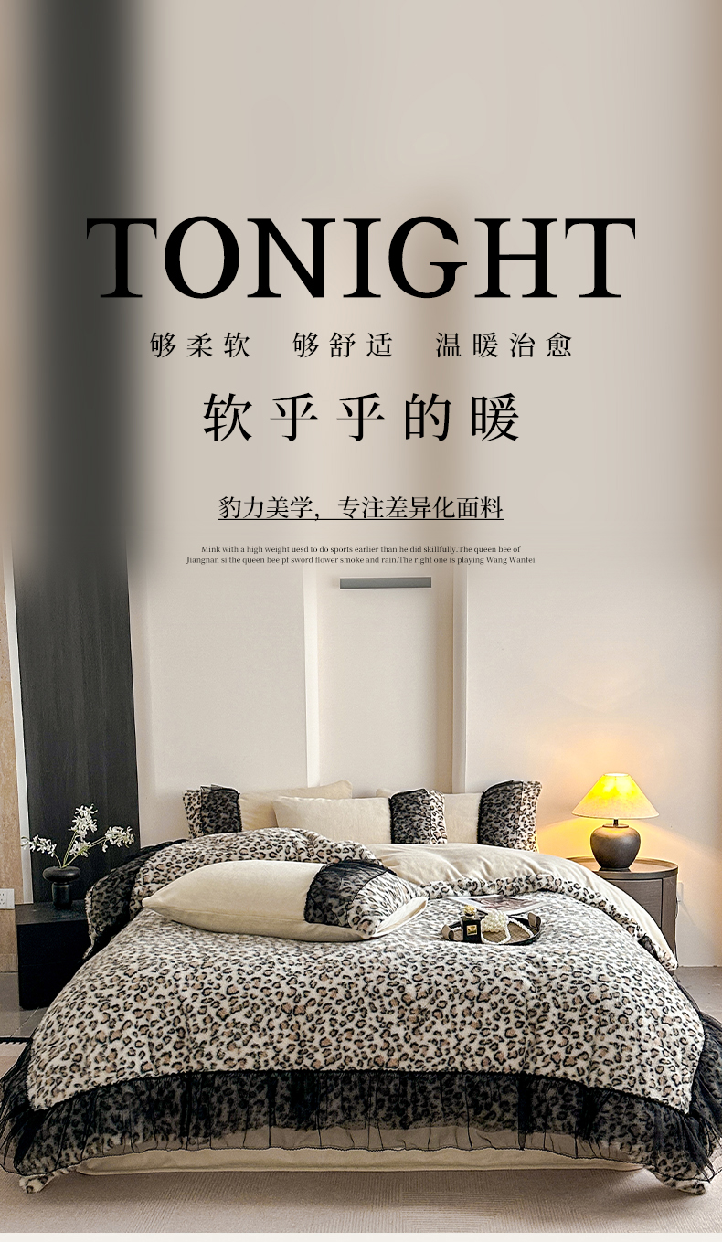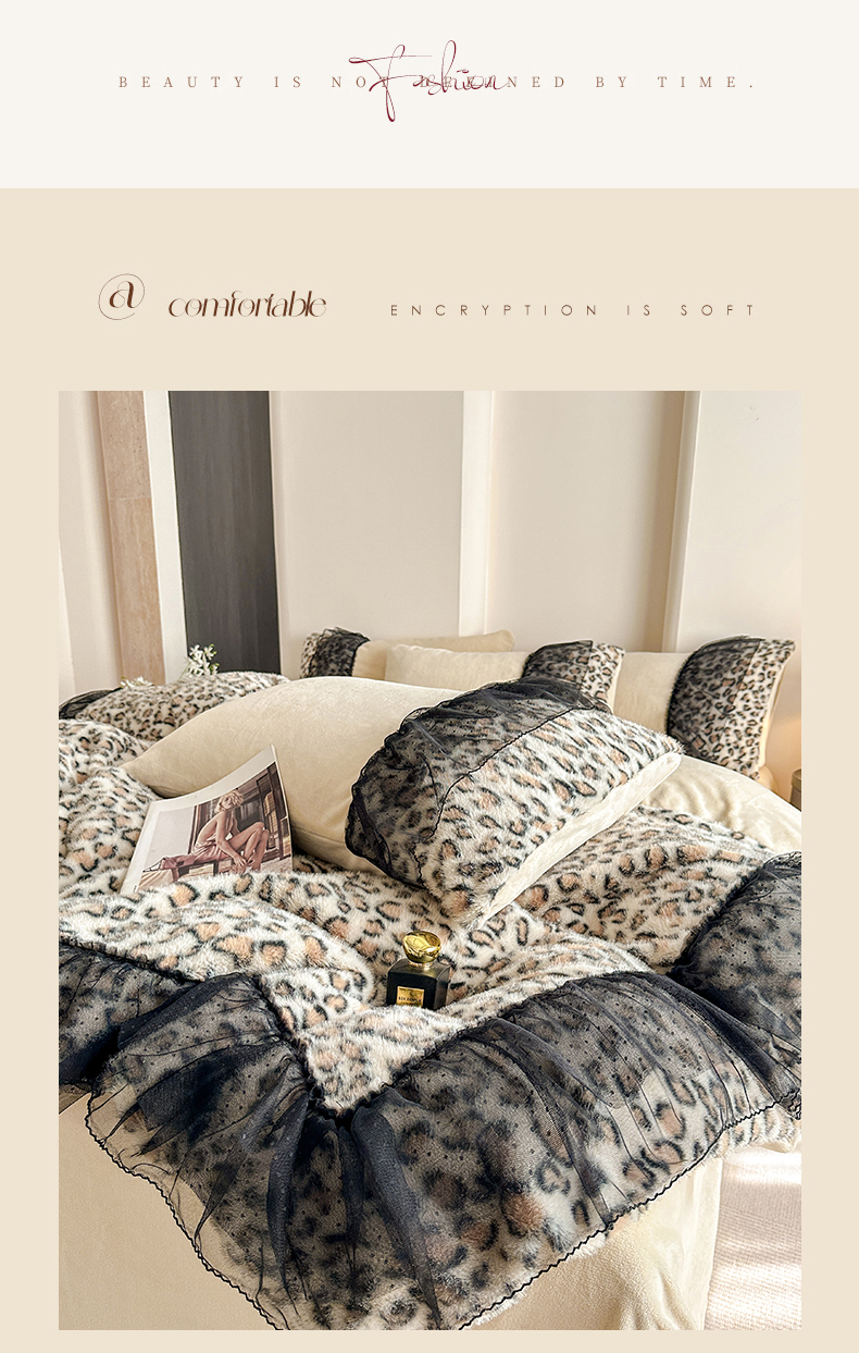 (总)大米家居 2025新款十斤重高低毛豹纹韩版蕾丝仿水貂绒四件套-豹纹系列,豹纹-卡其,豹纹-藕粉,豹纹-炫紫