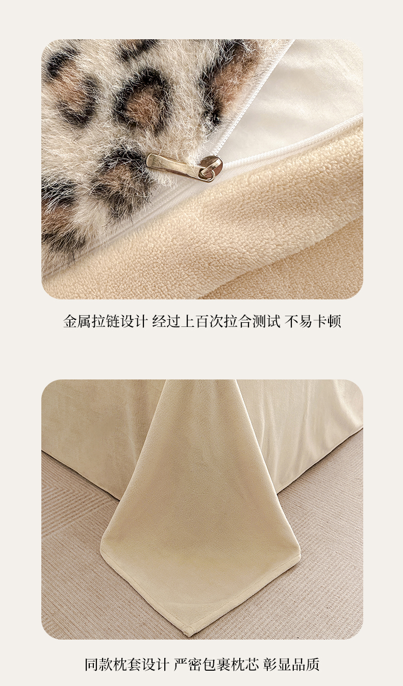 商品名称:大米家居 2025新款十斤重高低毛豹纹韩版蕾丝仿水貂绒四件套-豹纹系列 豹纹-藕粉
