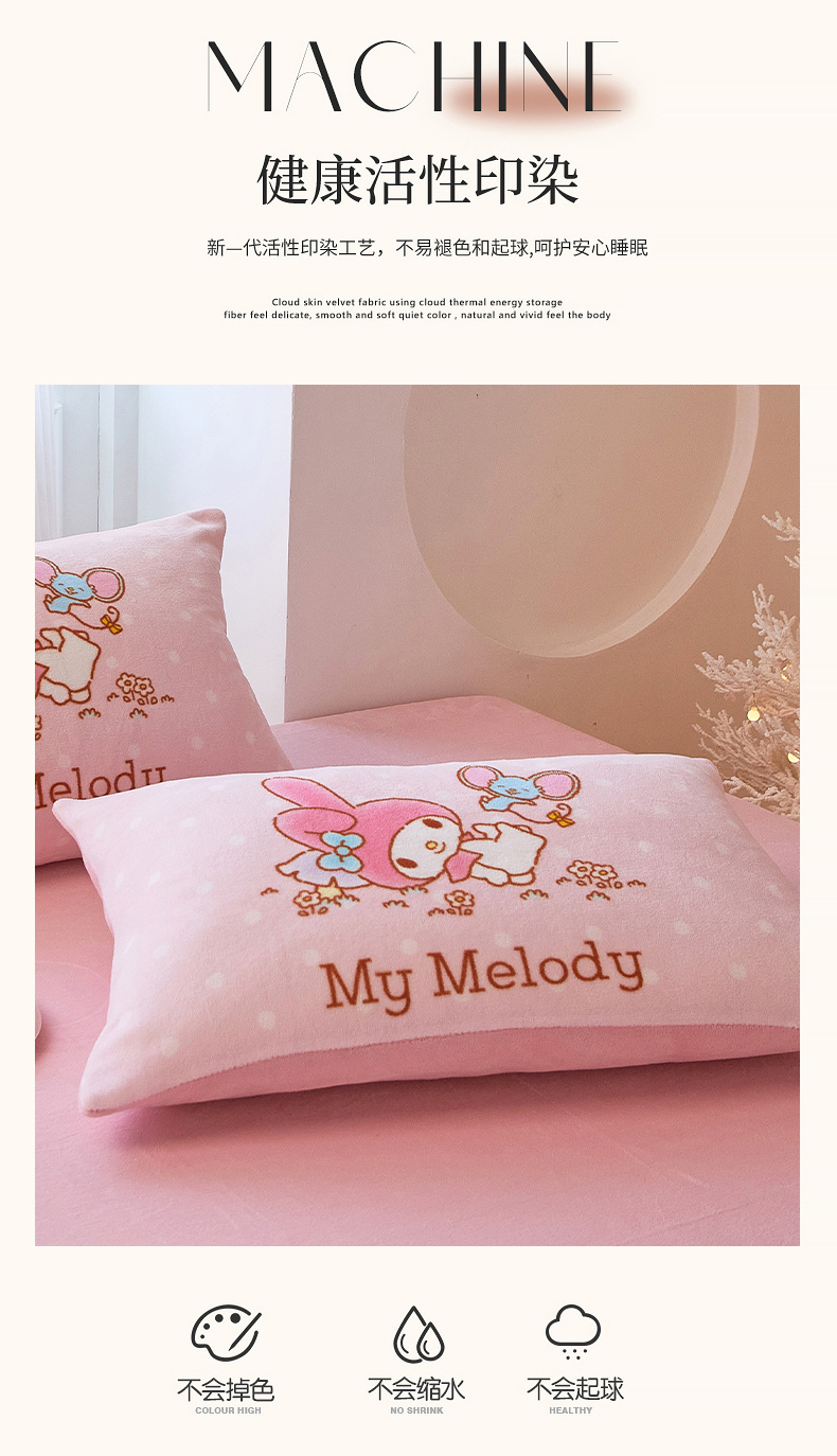 商品名称:蘭菲家纺 2025新款三丽欧牛奶绒套件系列单品枕套 轻松美乐蒂