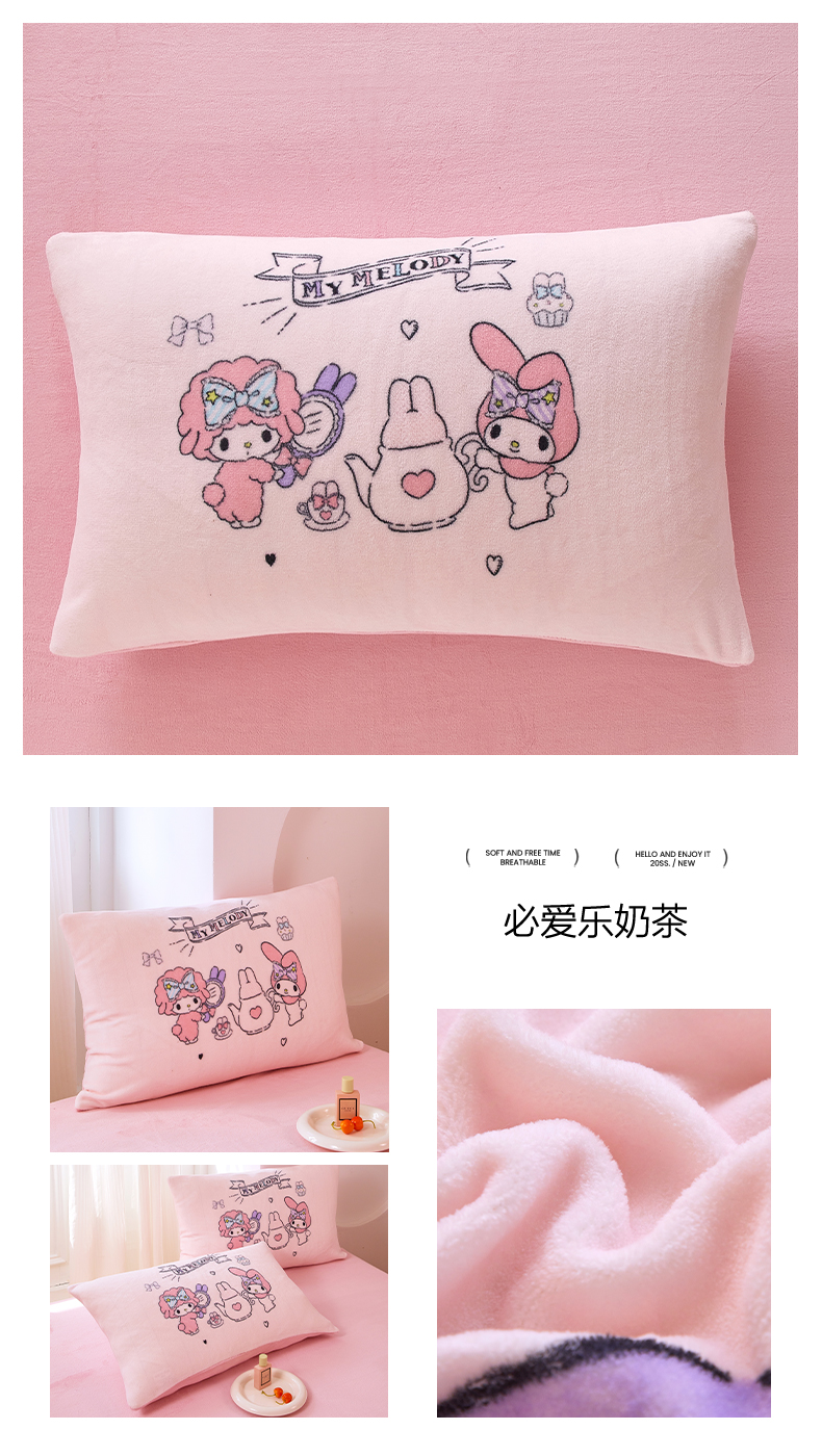 蘭菲家纺 2025新款三丽欧牛奶绒套件系列单品枕套 轻松美乐蒂