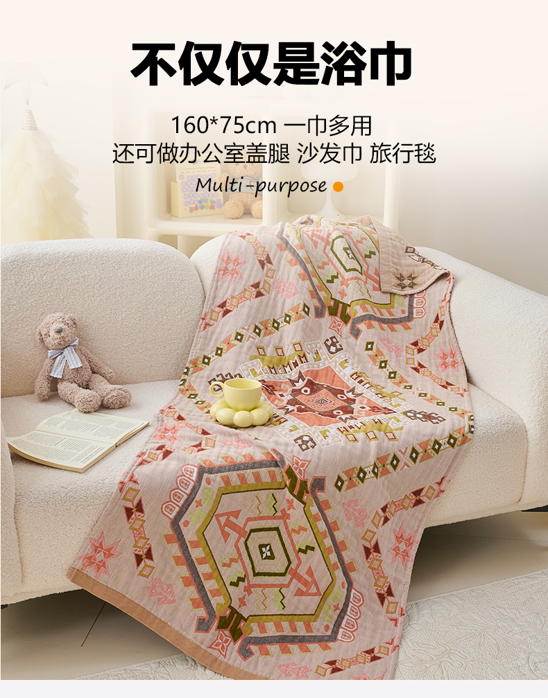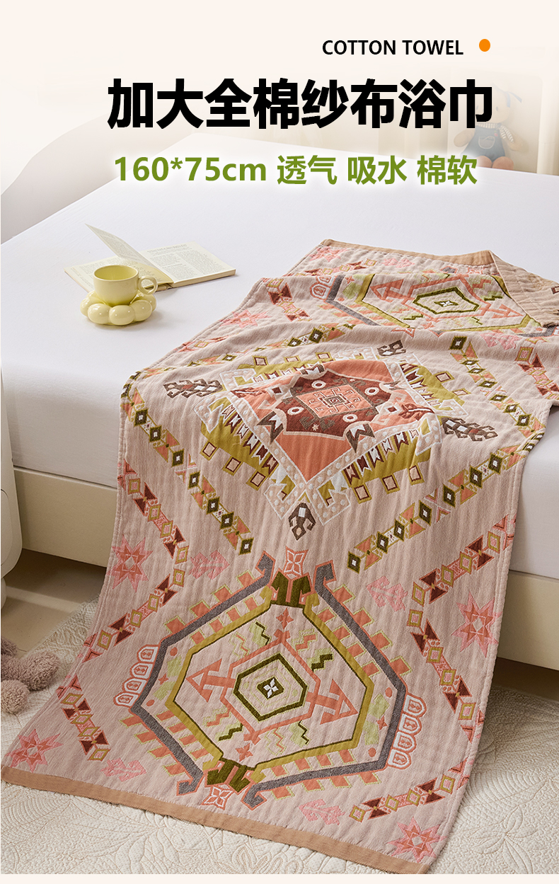当前位置: 91家纺网 > 商品网购 > 居家日用 > 毛巾/浴巾/浴袍 > 浴巾 > 棠薇家纺 2025新款全棉纱布浴巾纯棉浴巾时尚卡通色织提花四季加大浴巾擦身巾 和风 160*75cm