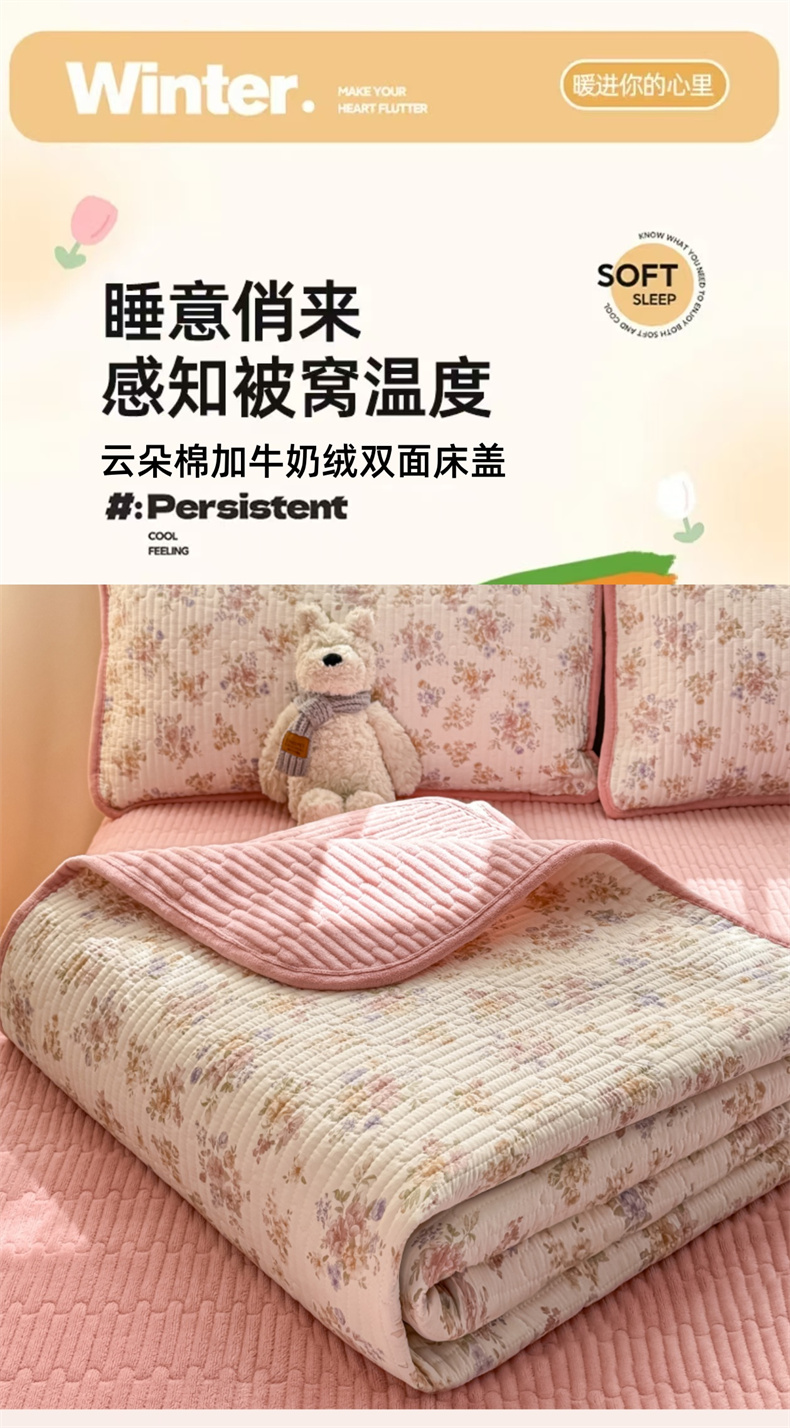 (总)梦舒羽 2025新款A类云朵棉加牛奶绒双面夹棉床盖床垫保护套床垫保护罩三件套