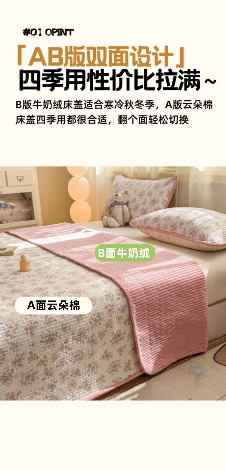 商品名称:(总)梦舒羽 2025新款A类云朵棉加牛奶绒双面夹棉床盖床垫保护套床垫保护罩三件套