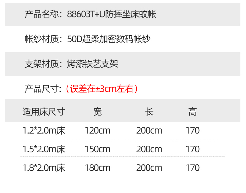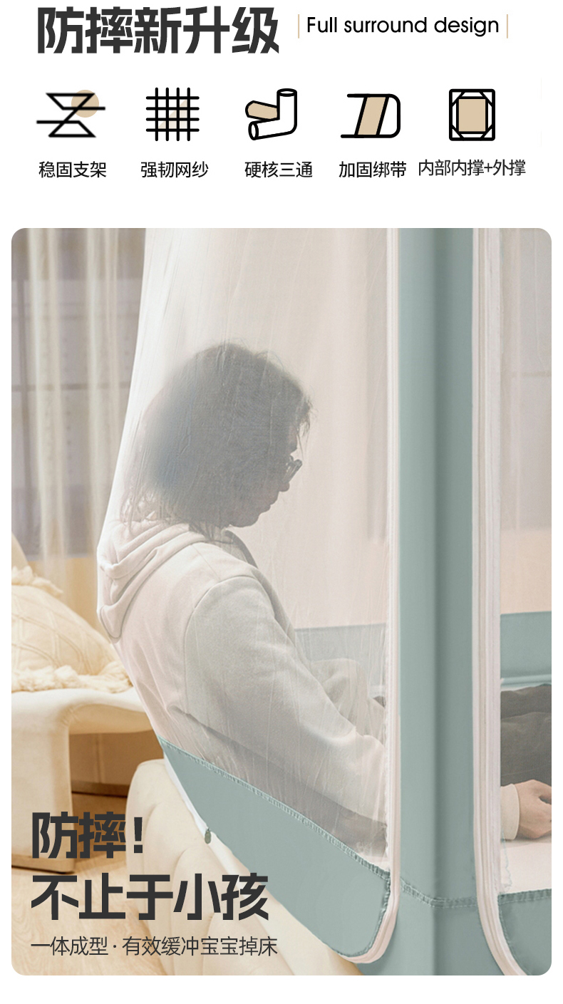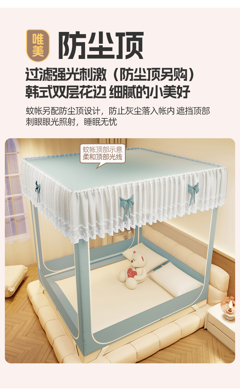 (总)夏彩 2025新款浪漫唯美T+U床笠式坐床外穿防摔蚊帐-88610,886610冰海蓝,886610极光白,886610浅粉玉,886610浅水蓝,886610蔷薇粉,886610杏仁黄,886610雅士灰