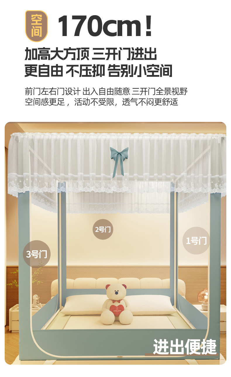 (总)夏彩 2025新款五面保暖亲肤面料坐床拉链四季款蚊帐-88632,星愿熊,拉贝贝,羽飞舞,支架,保暖顶-灰色,保暖顶-粉色,保暖顶-绿色