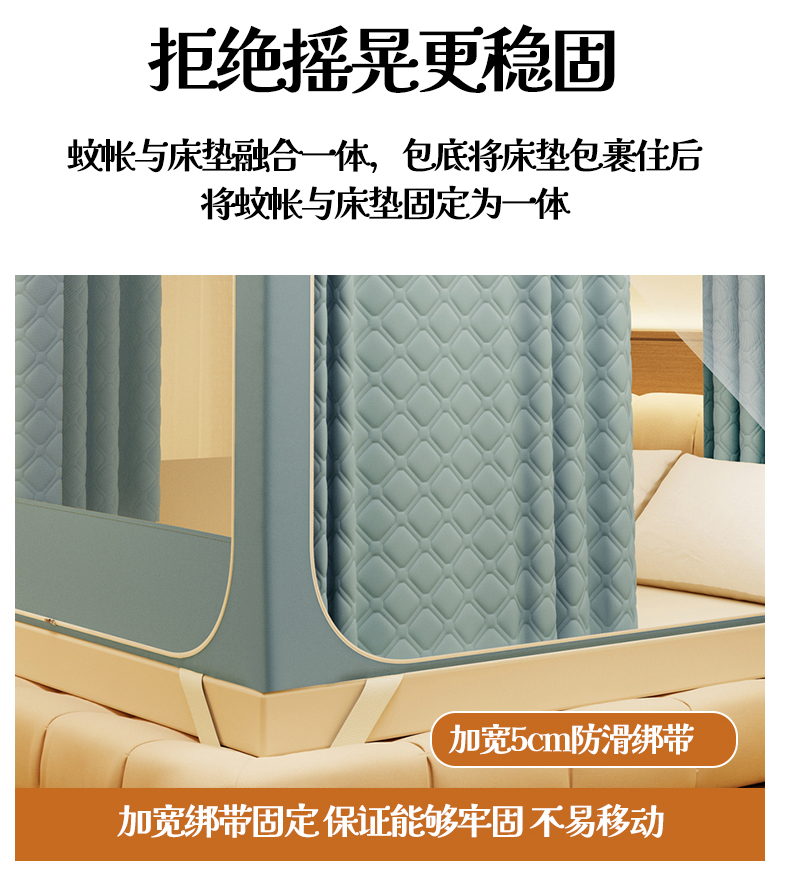 (总)夏彩 2025新款浪漫唯美T+U床笠式坐床外穿防摔蚊帐-88610,886610冰海蓝,886610极光白,886610浅粉玉,886610浅水蓝,886610蔷薇粉,886610杏仁黄,886610雅士灰
